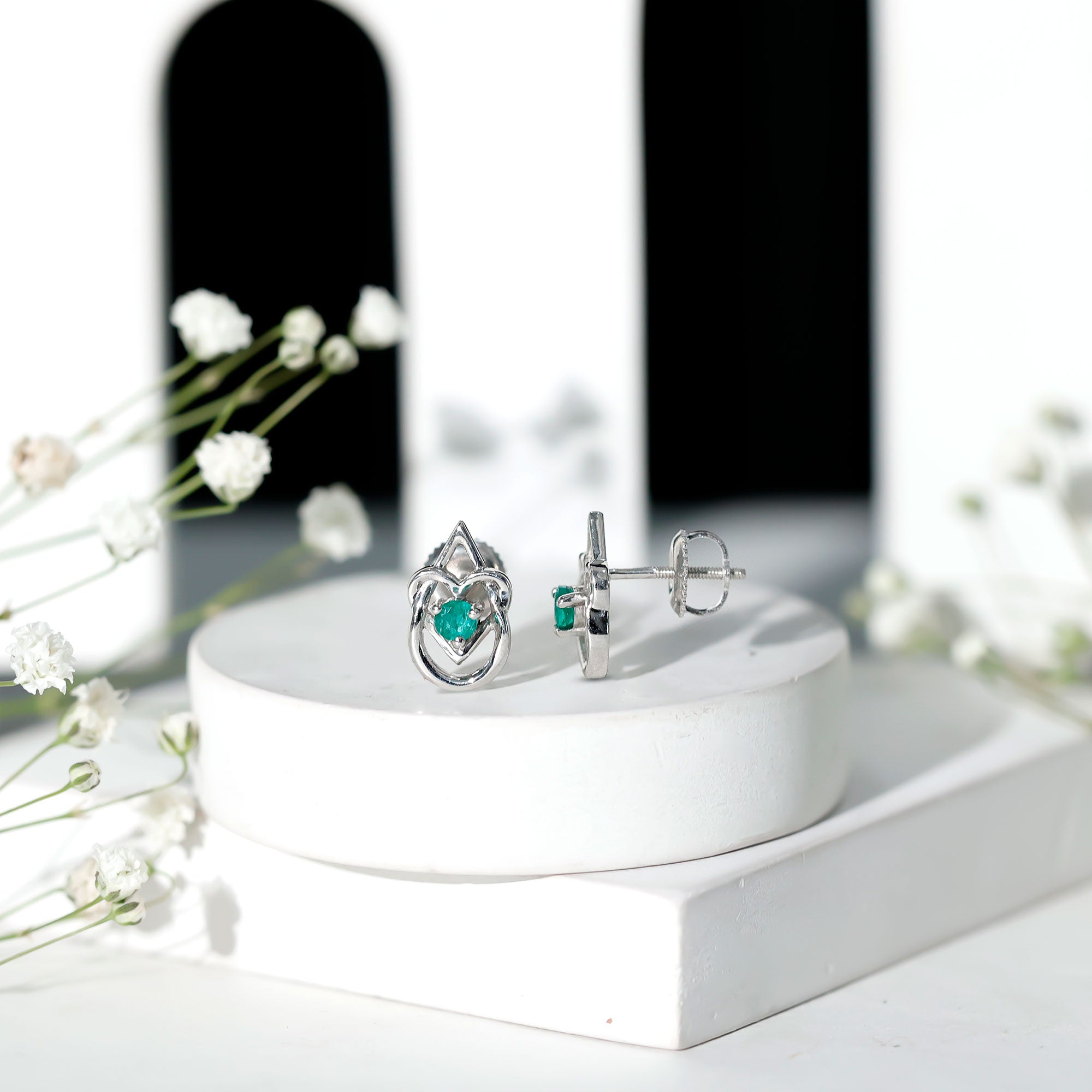 Go trendy with our Teardrop and Heart Stud Earrings for Women adorned in Gold consisting of Round Cut Emerald embellished in Prong Setting.