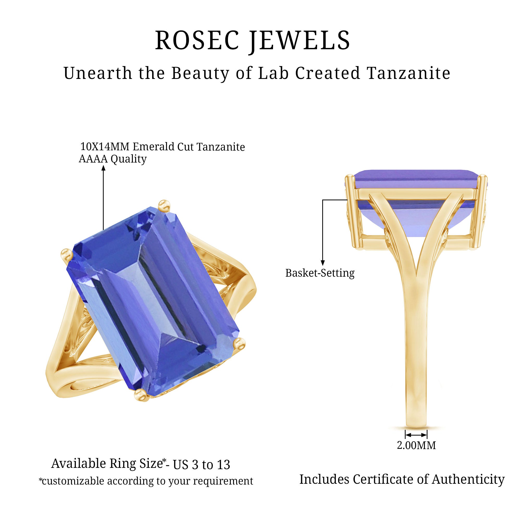 Emerald Cut 10X14 MM Lab Created Tanzanite Engagement Ring with Split Shank