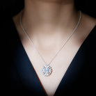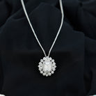 Make your D-Day look perfect with this Moissanite Pendant Necklace that is precisely crafted for your special day. This Statement Pendant features a 7X9 MM Emerald Cut Moissanite of D-VS1 as a center stone and surrounded by a double halo of Round, Pear, and Round Shape Smaller Gemstones that amplify the beauty of the pendant. This Halo Pendant Necklace can be styled as a single statement necklace or can be worn as a stack with minimal necklaces for a layered look. The unique design and breathtaking allure of this Emerald Cut Necklace make it just perfect for the bridal set. Also, you can present it to the bride-to-be to depict your affection towards her.