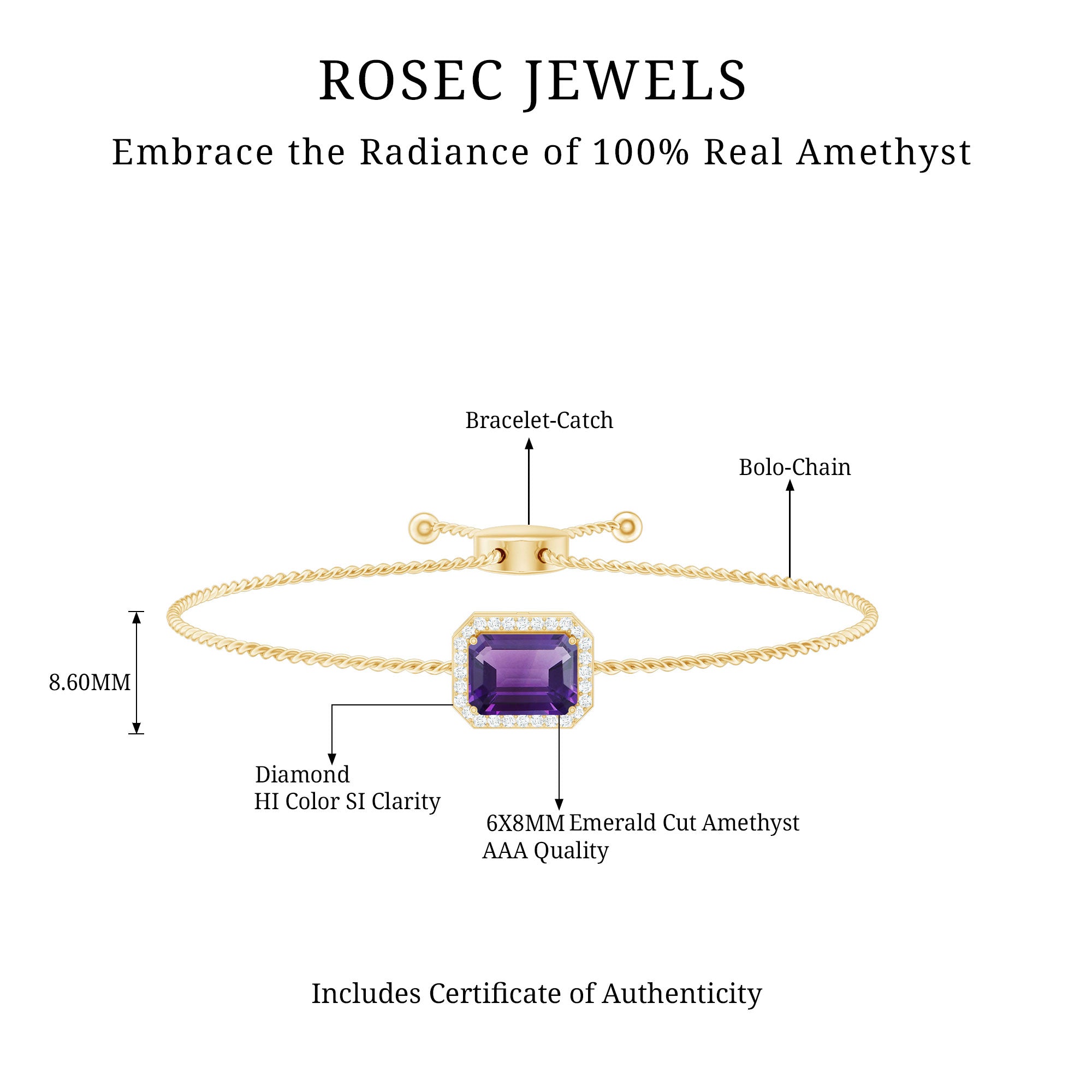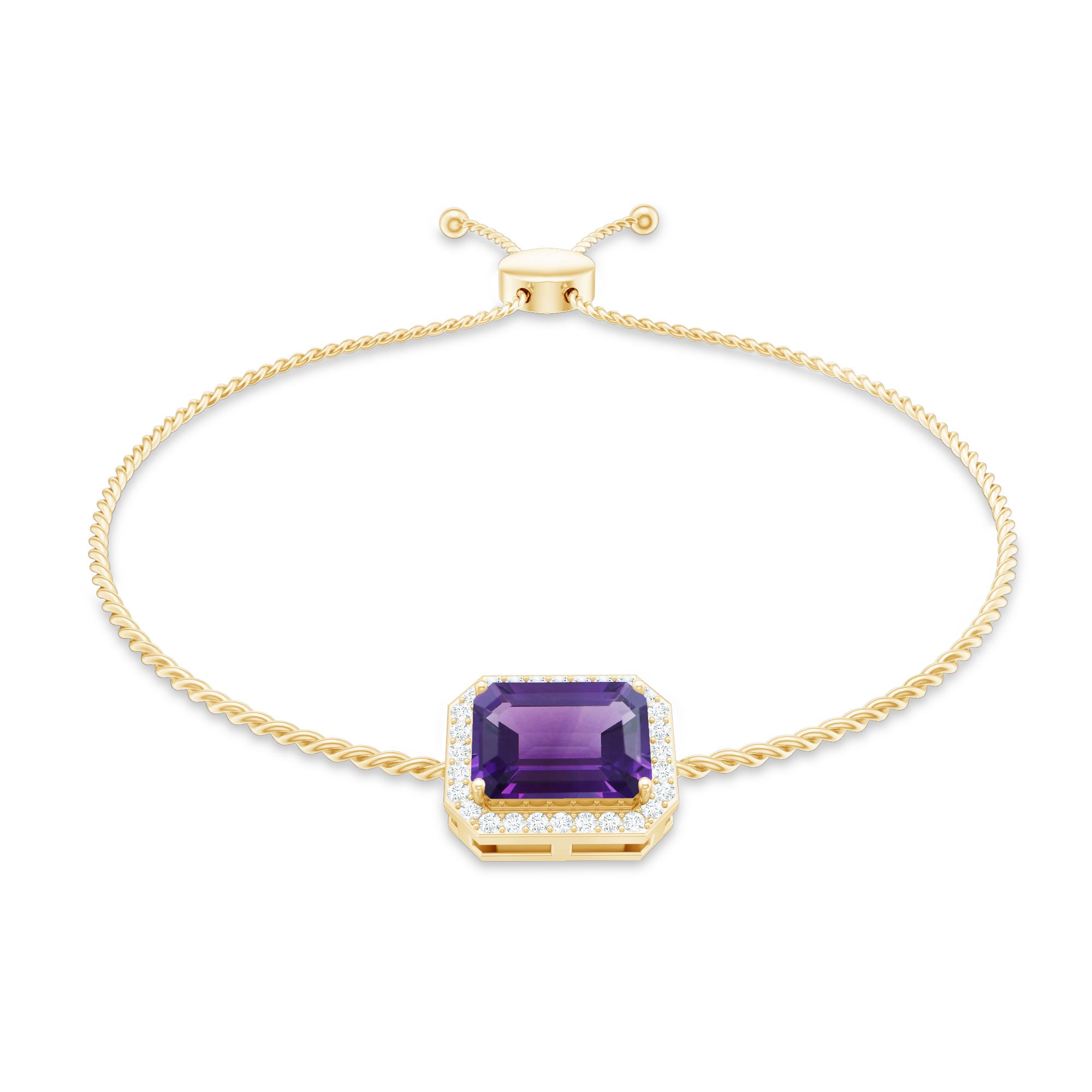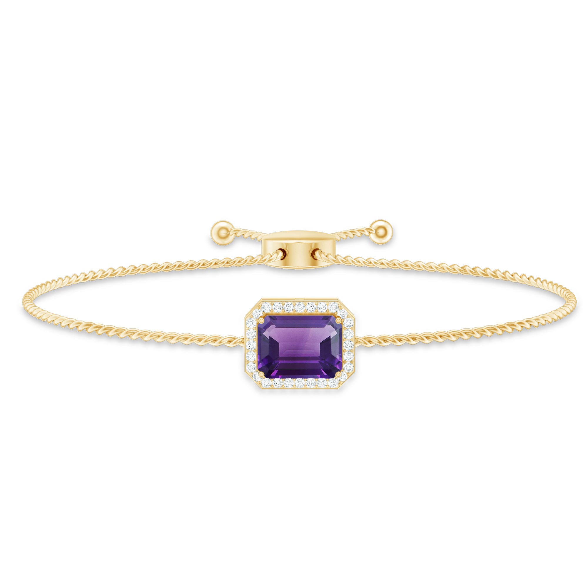 Emerald Cut Amethyst Bolo Chain Bracelet with Diamond