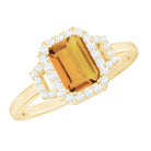 Emerald Cut Citrine and Diamond Statement Engagement Ring