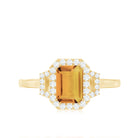 Make a bold statement with this magnificent engagement ring, featuring a stunning Emerald Cut-cut Citrine centerpiece, encircled by a sparkling halo of round Diamond stones. Crafted with high-quality gold, this Citrine ring is designed to last a lifetime. The striking yellow of the Citrine is beautifully complemented by the brilliance of the Diamond stones. With its unique and eye-catching design, this ring is the perfect symbol of your love and commitment to your significant other. Its a truly exceptional piece that will leave your loved one speechless.