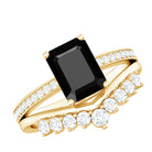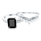 Emerald Cut Created Black Diamond and Diamond Engagement Ring Set