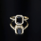 Emerald Cut Created Black Diamond Classic Halo Engagement Ring with Diamond