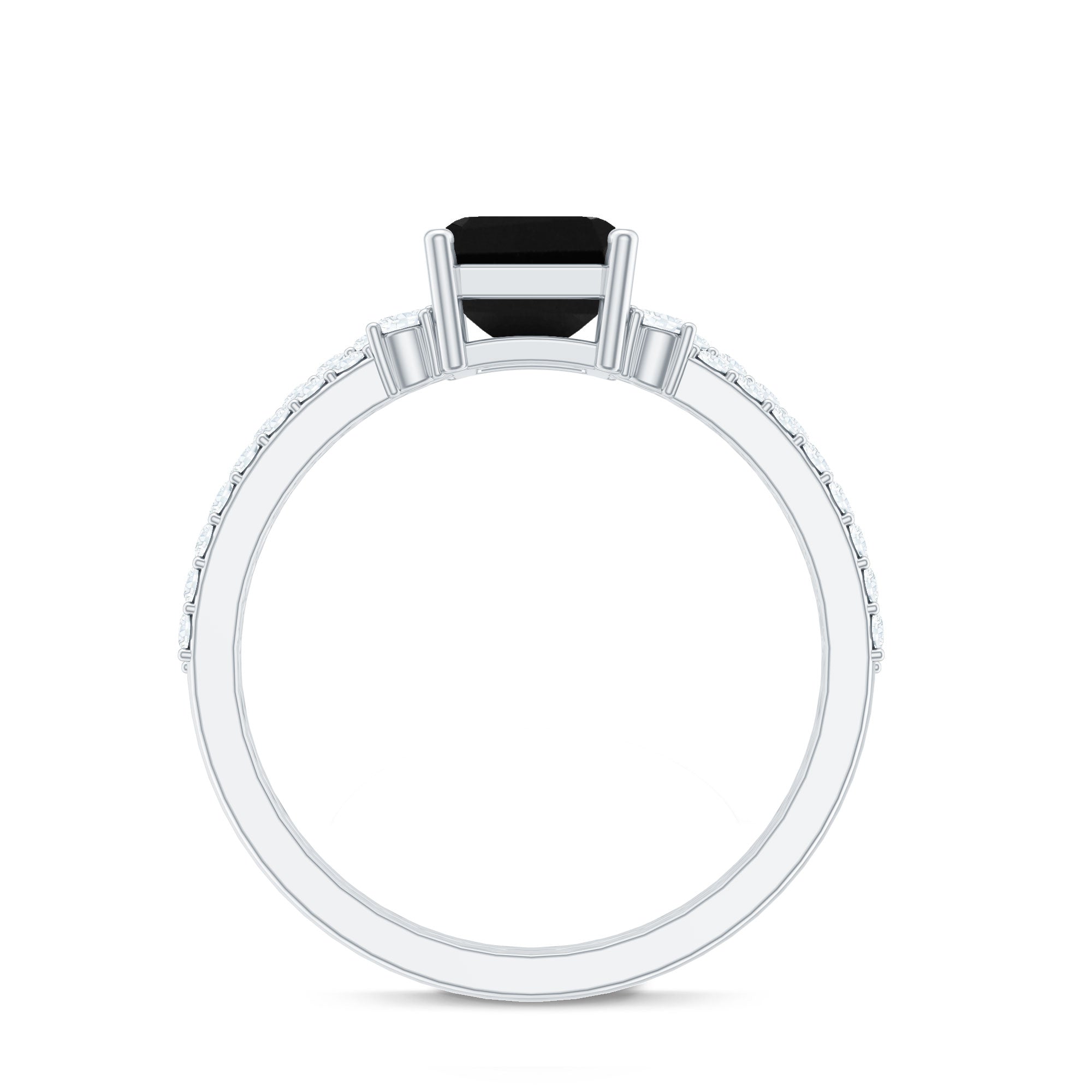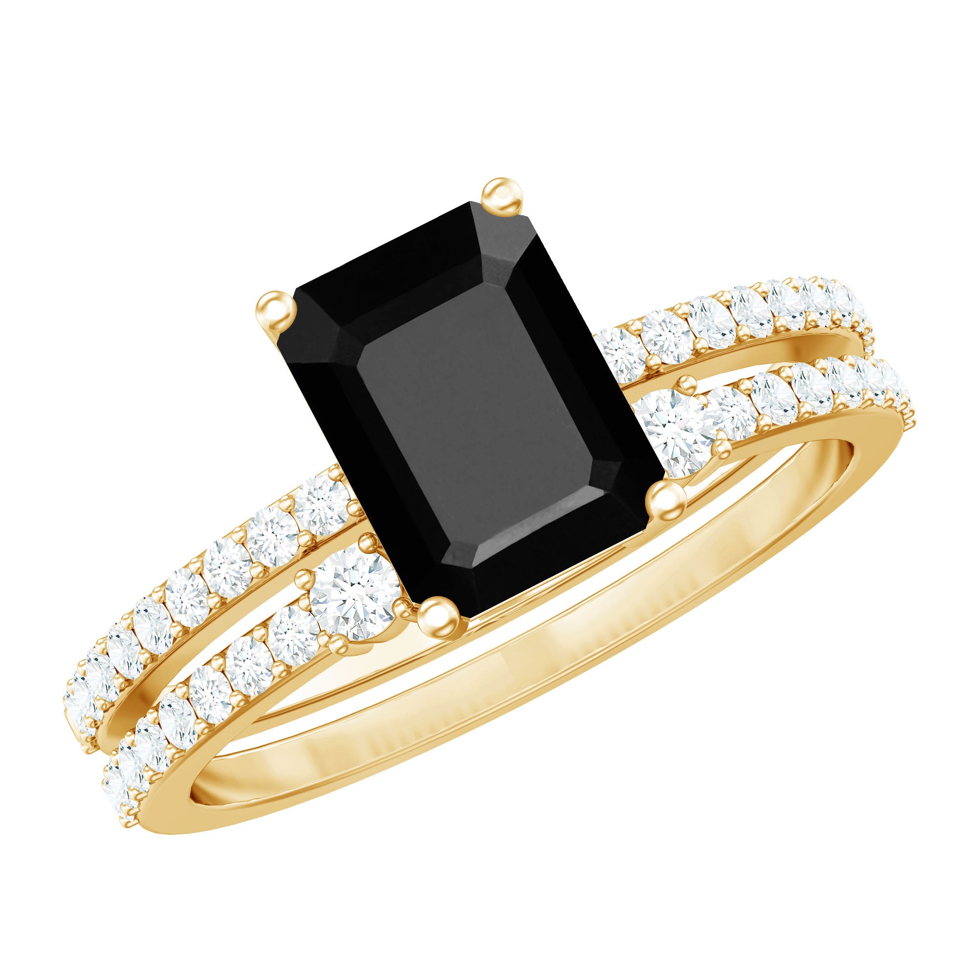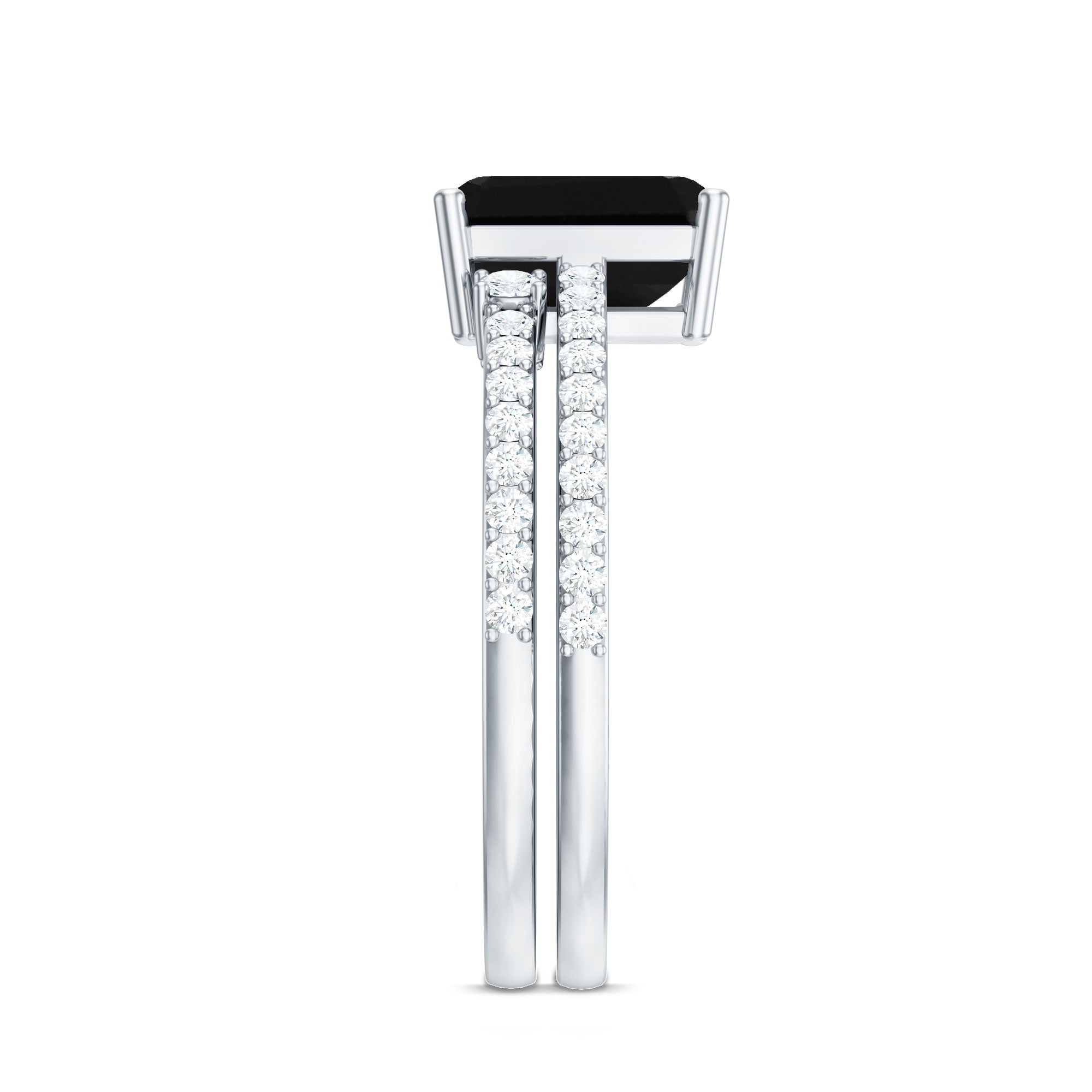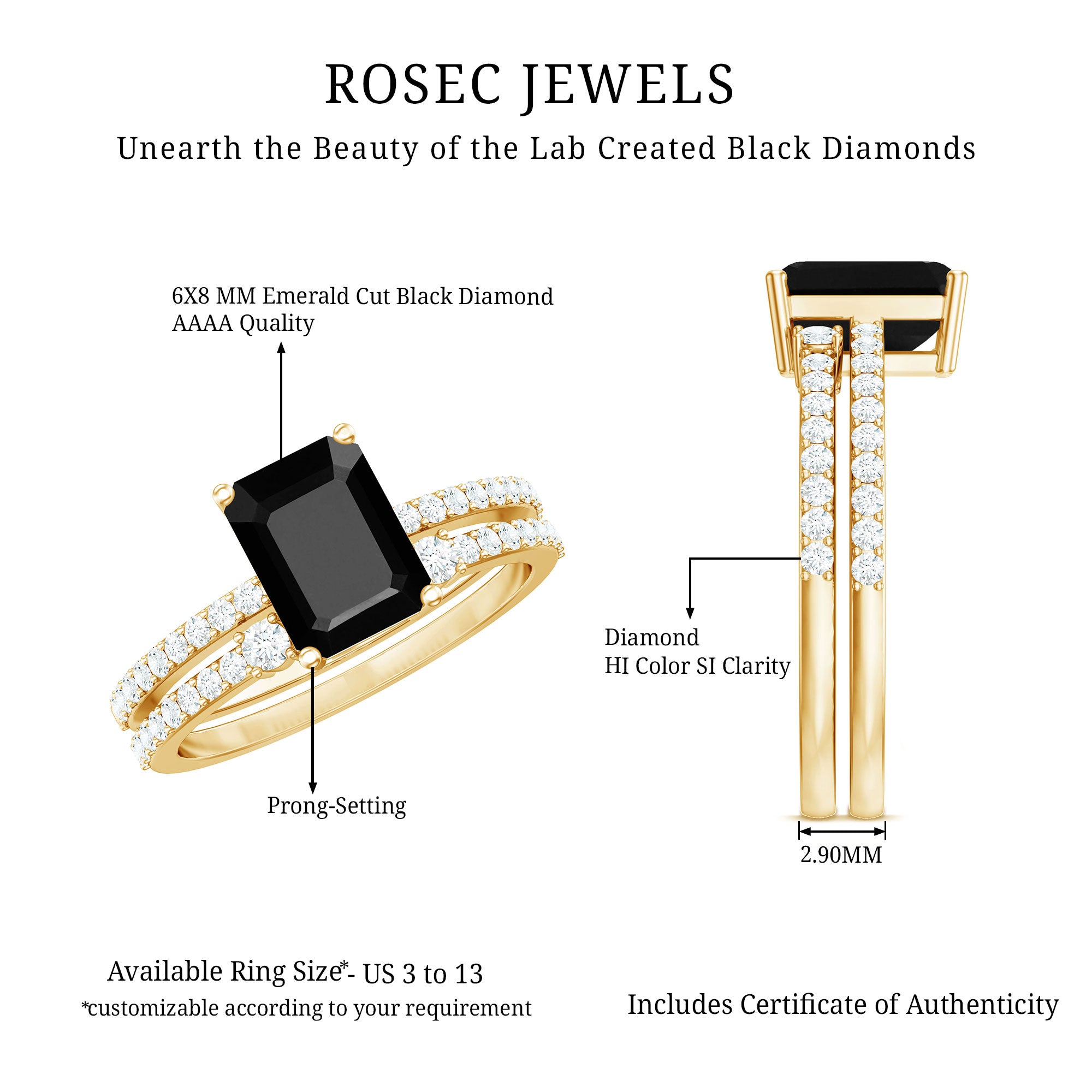 Emerald Cut Created Black Diamond Engagement Ring Set with Diamond