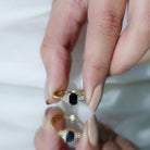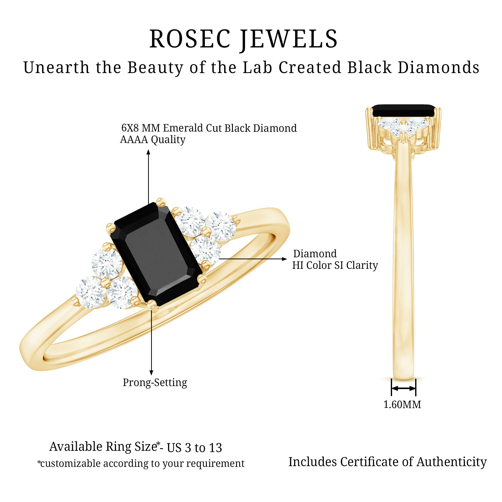 Emerald Cut Created Black Diamond Solitaire Ring with Diamond Trio