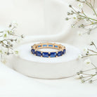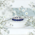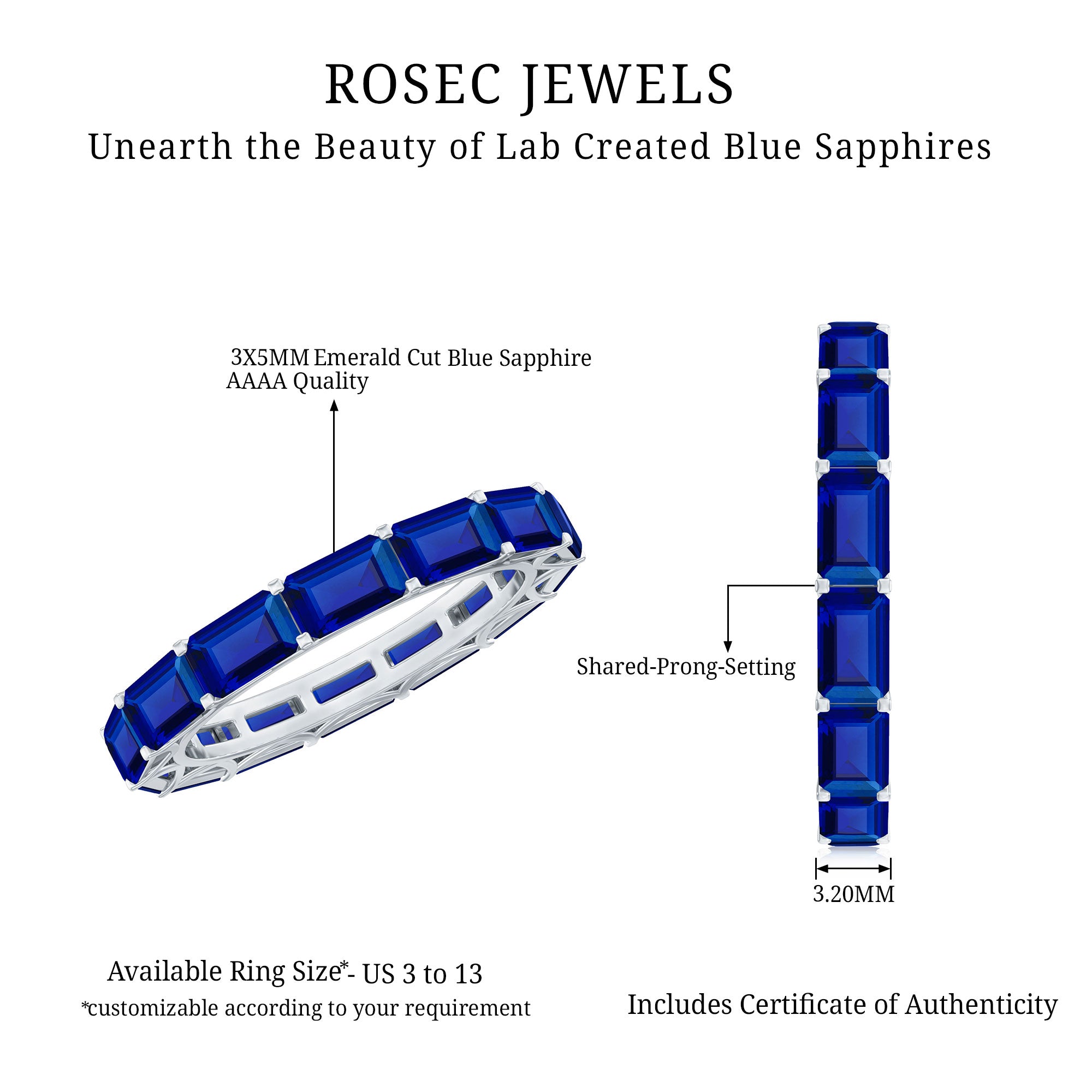 Emerald Cut Created Blue Sapphire East West Eternity Band Ring