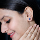 Infuse a vibrant pop of color into your look with these stunning Solitaire Stud Earrings adorned with a Octagon Cut Created Blue Sapphire Gemstone, creating a truly unique and eye-catching aesthetic.