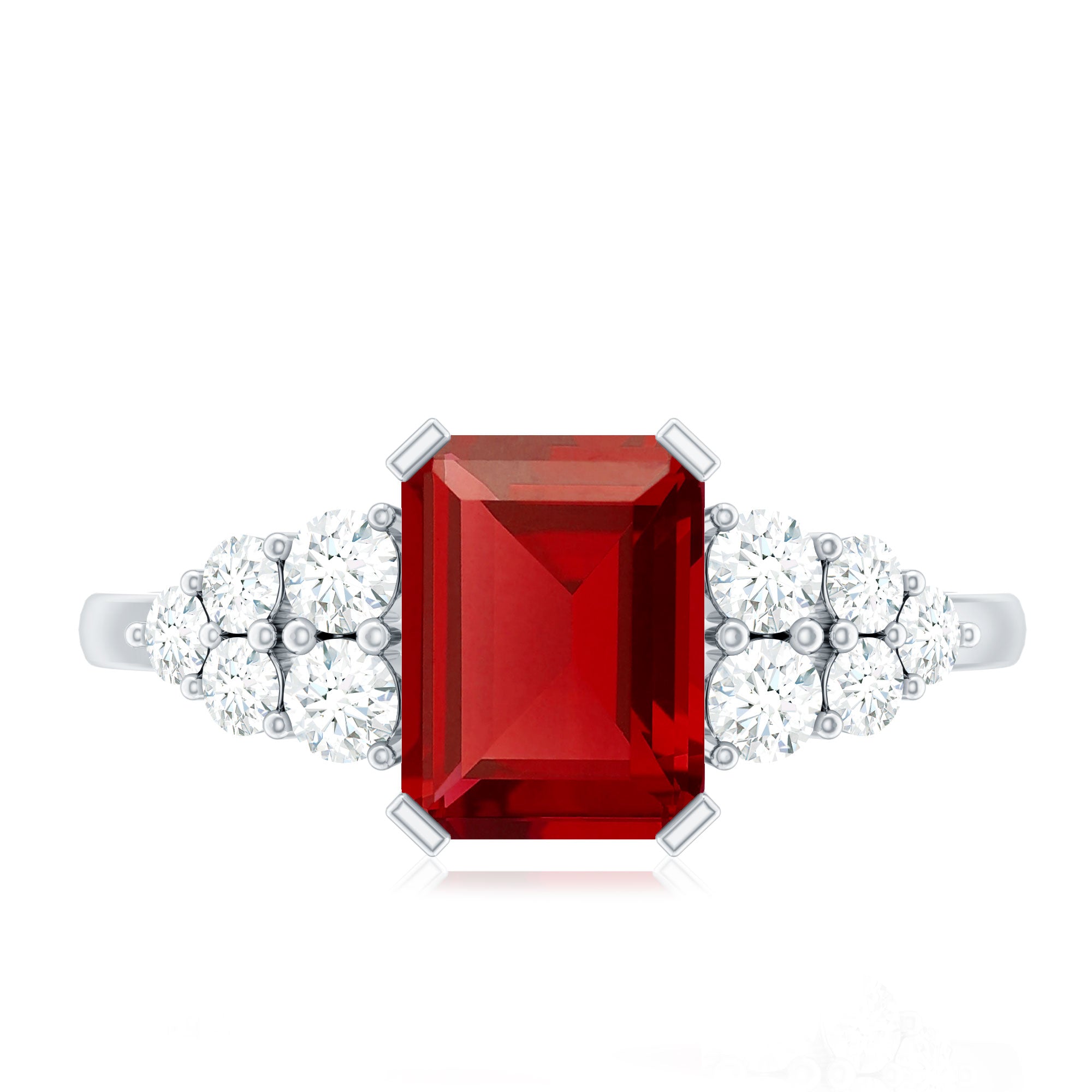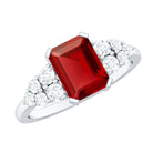 Emerald Cut Created Ruby and Diamond Designer Engagement Ring