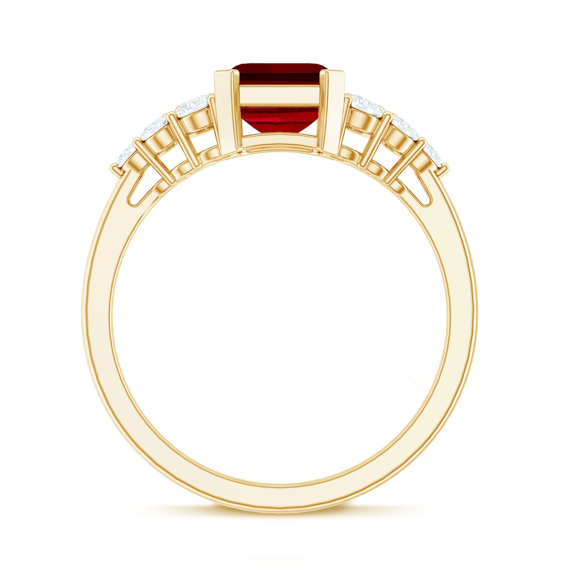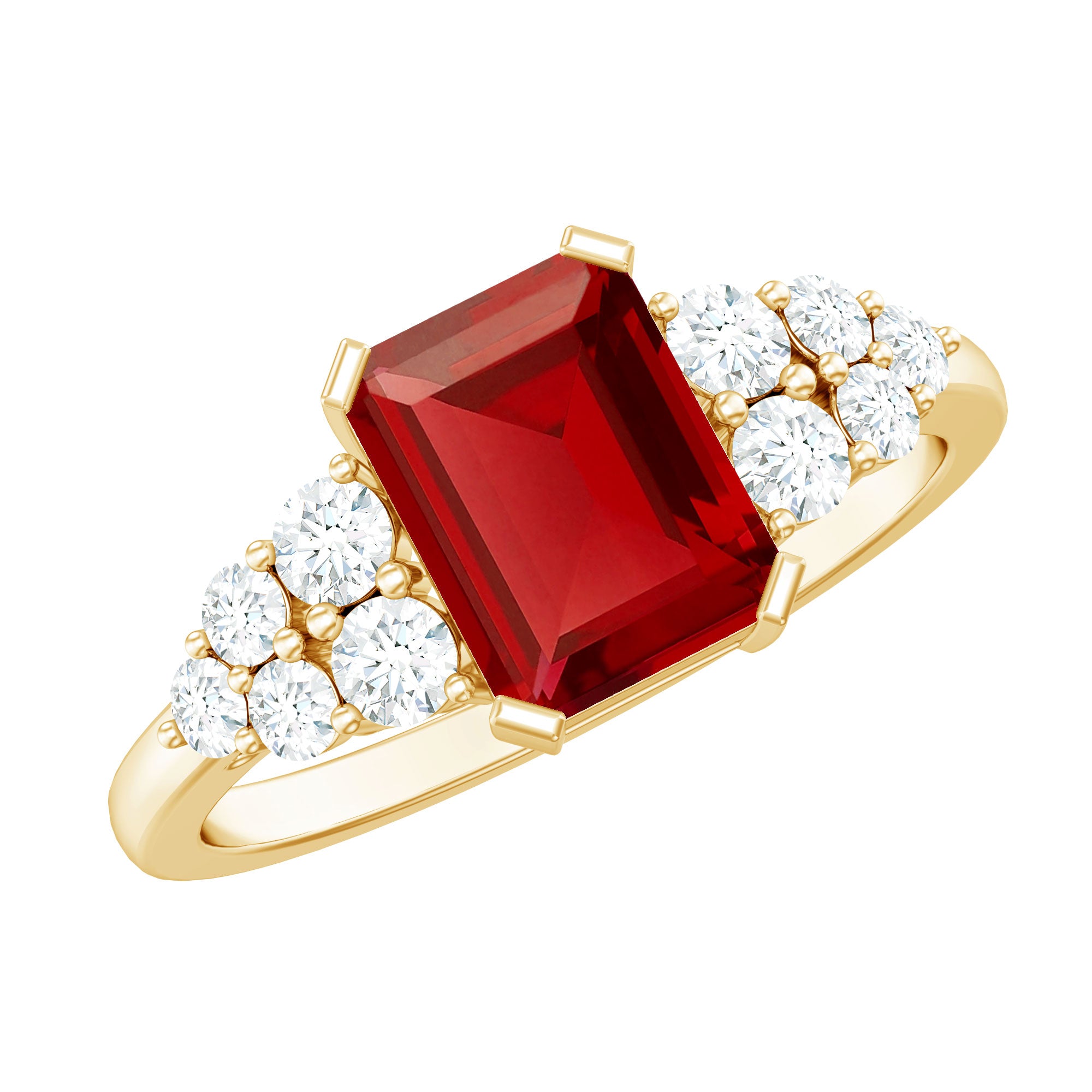 Surprise your significant other with this stunning solitaire engagement ring. Featuring an octagon-shaped lab-created ruby set in a paddle-prong setting with round Diamond on either side, this designer ring is beautifully mounted in gold metal for a breathtaking piece of jewelry.