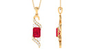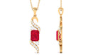 Emerald Cut Created Ruby Designer Dangle Pendant with Diamond