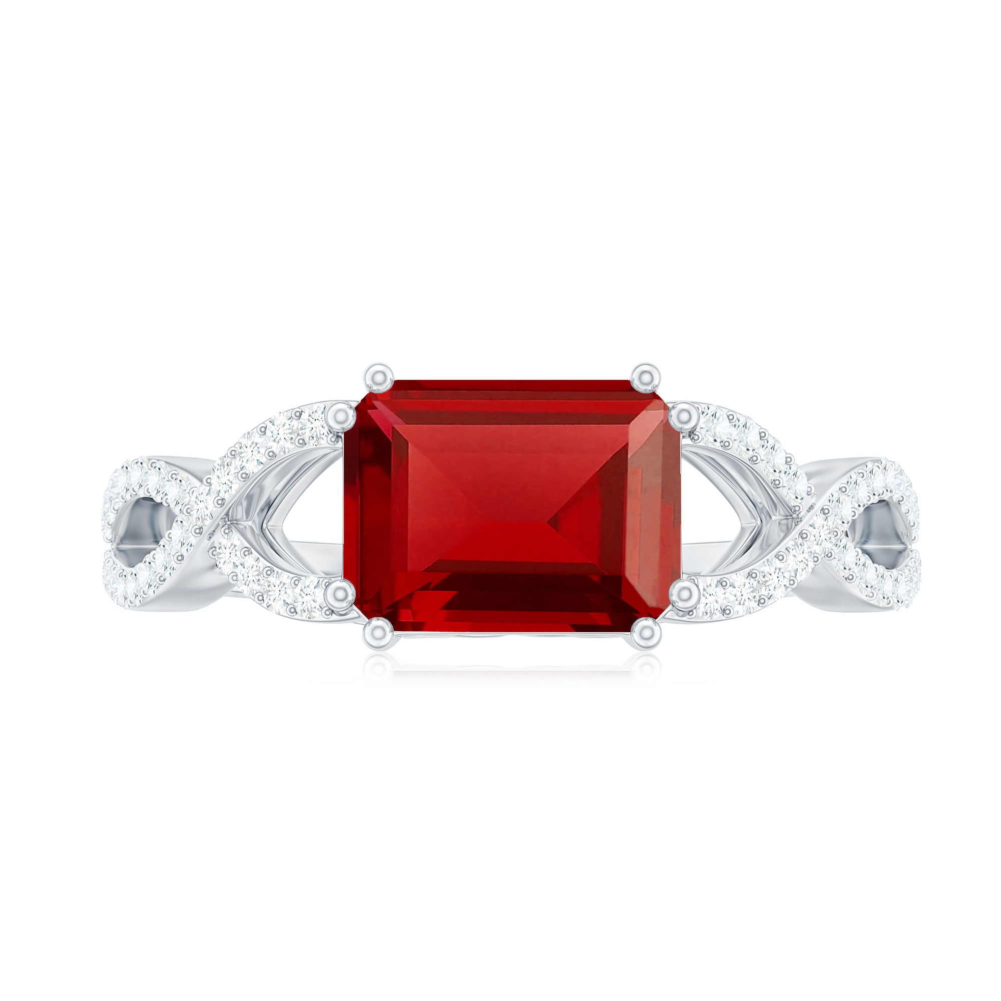 Emerald Cut Created Ruby East-West Crossover Ring with Diamond