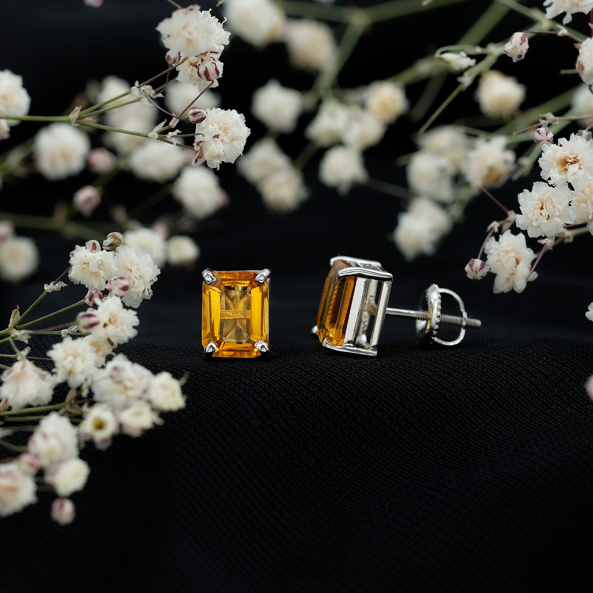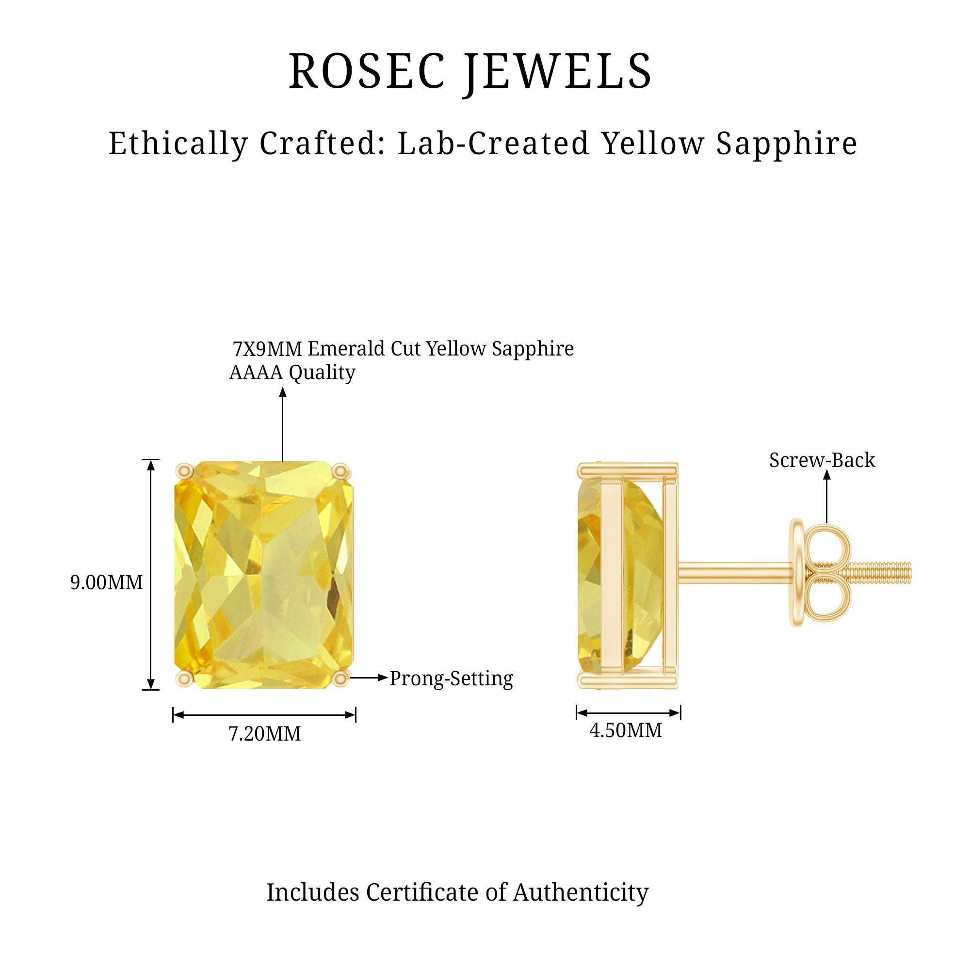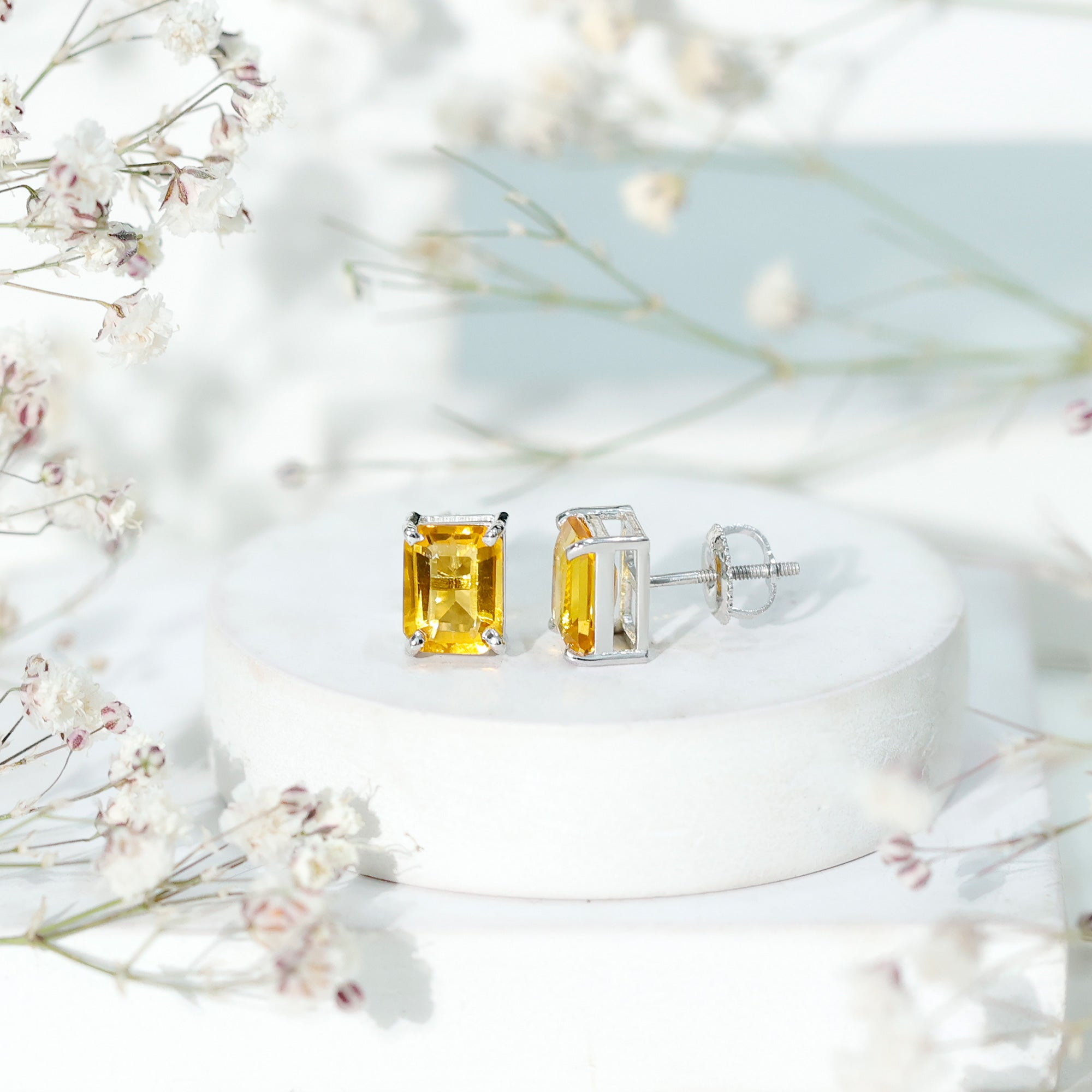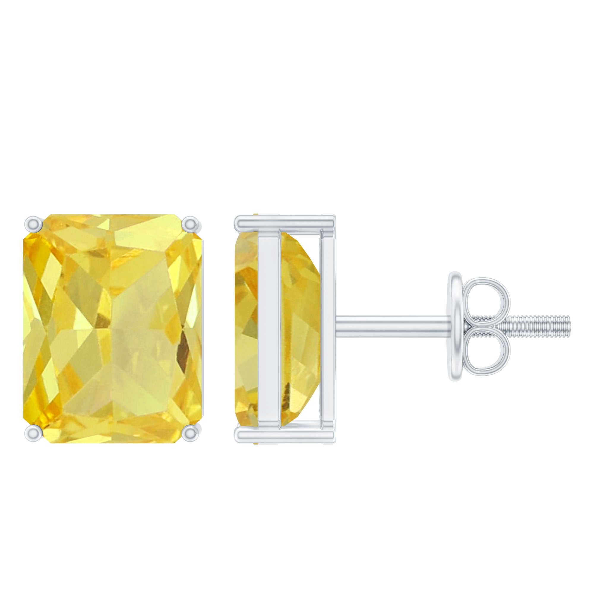 Emerald Cut Created Yellow Sapphire Solitaire Stud Earrings