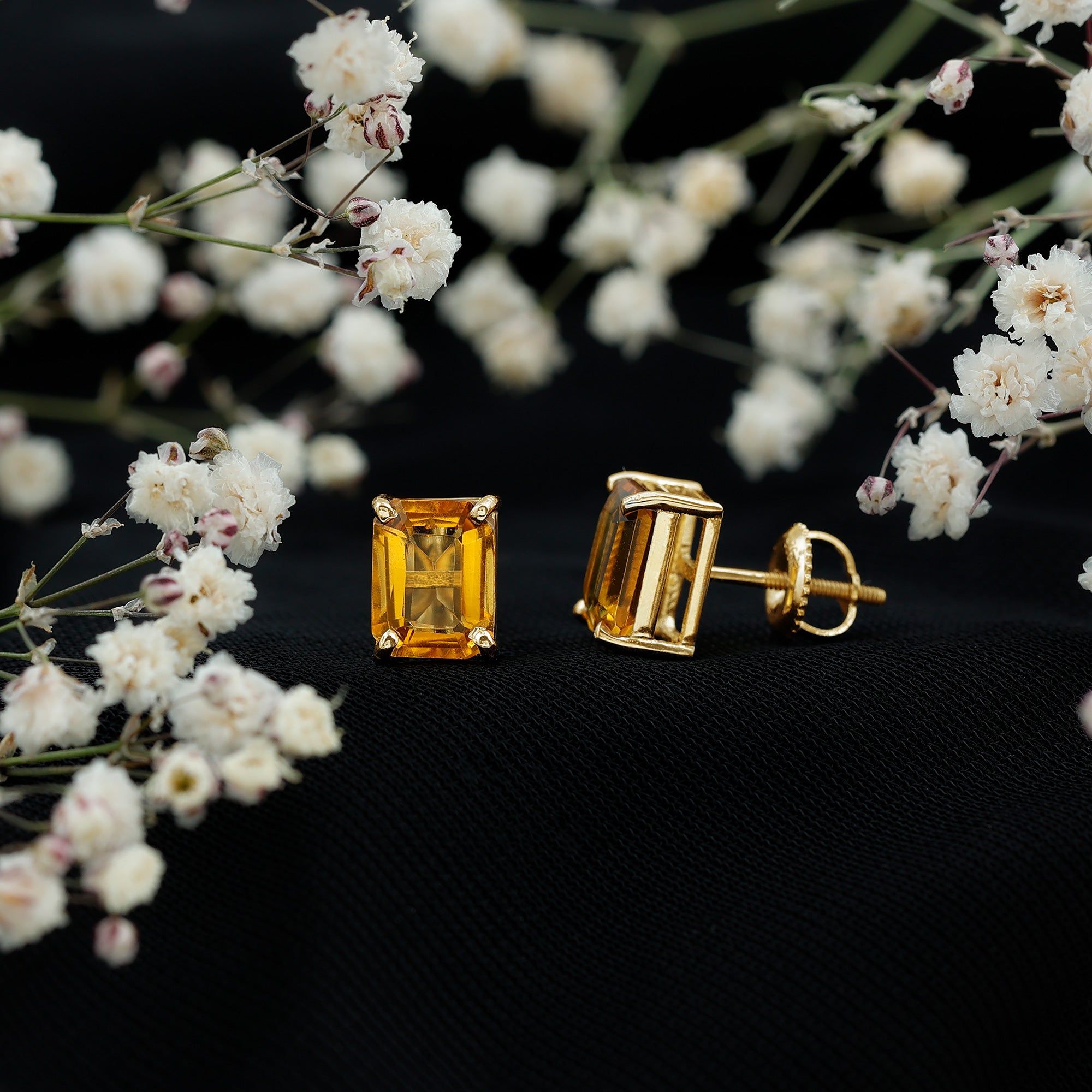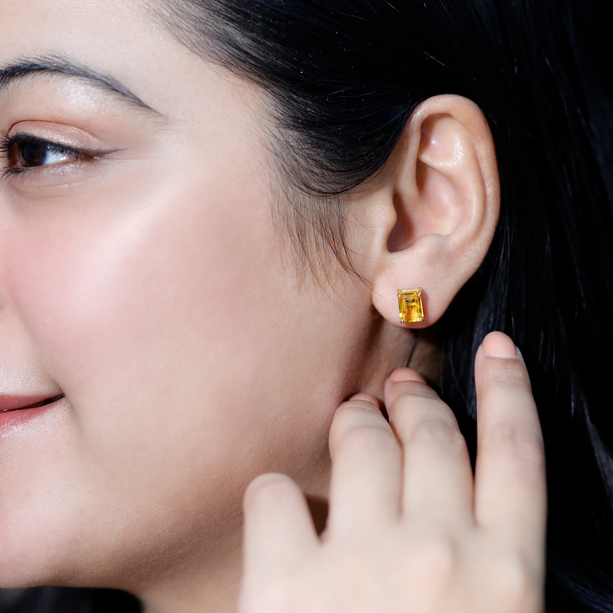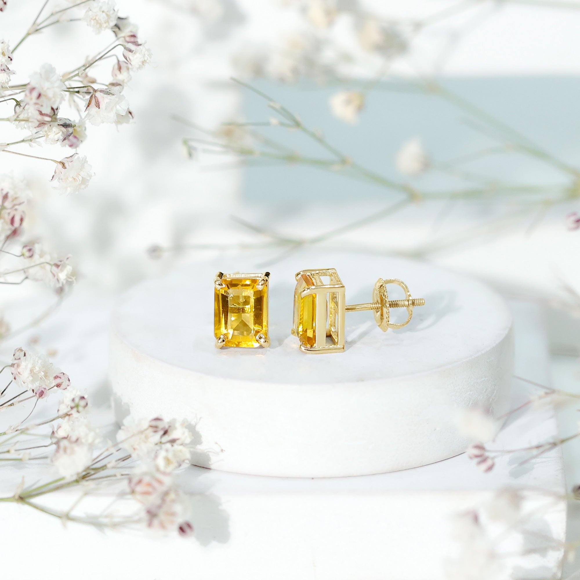Enhance your style with a burst of vibrant color through these stunning Solitaire Stud Earrings featuring an Octagon Cut Created Yellow Sapphire Gemstone. With its rare and captivating allure, this exquisite piece effortlessly revitalizes your look, creating an eye-catching and distinctive aesthetic that is sure to turn heads.