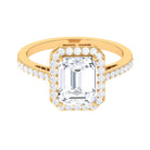 This stunning Statement Engagement Ring features an Emerald-Cut Cubic Zirconia secured by 4 Prong Setting, while dainty Round Cubic Zirconia embellished on the shank of the ring. You can style this Cubic Zirconia Ring with your everyday or party attire, to stand out from the crowd.