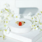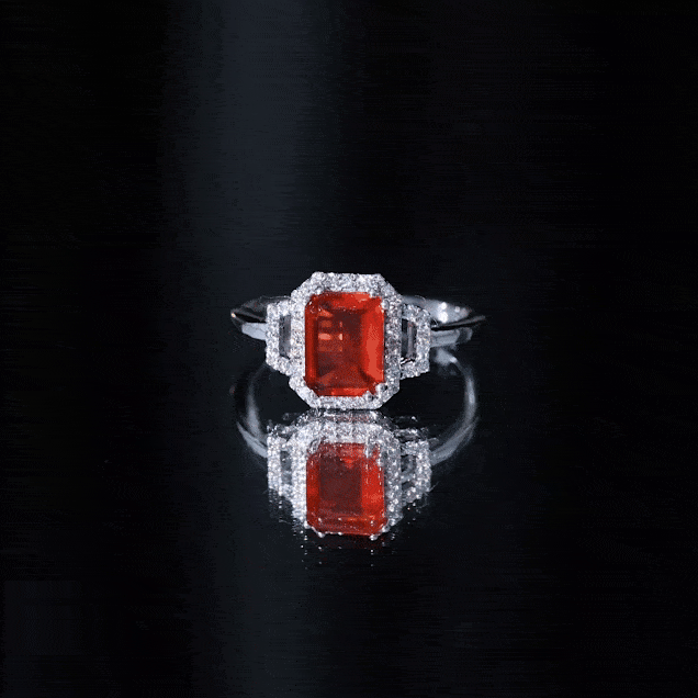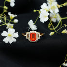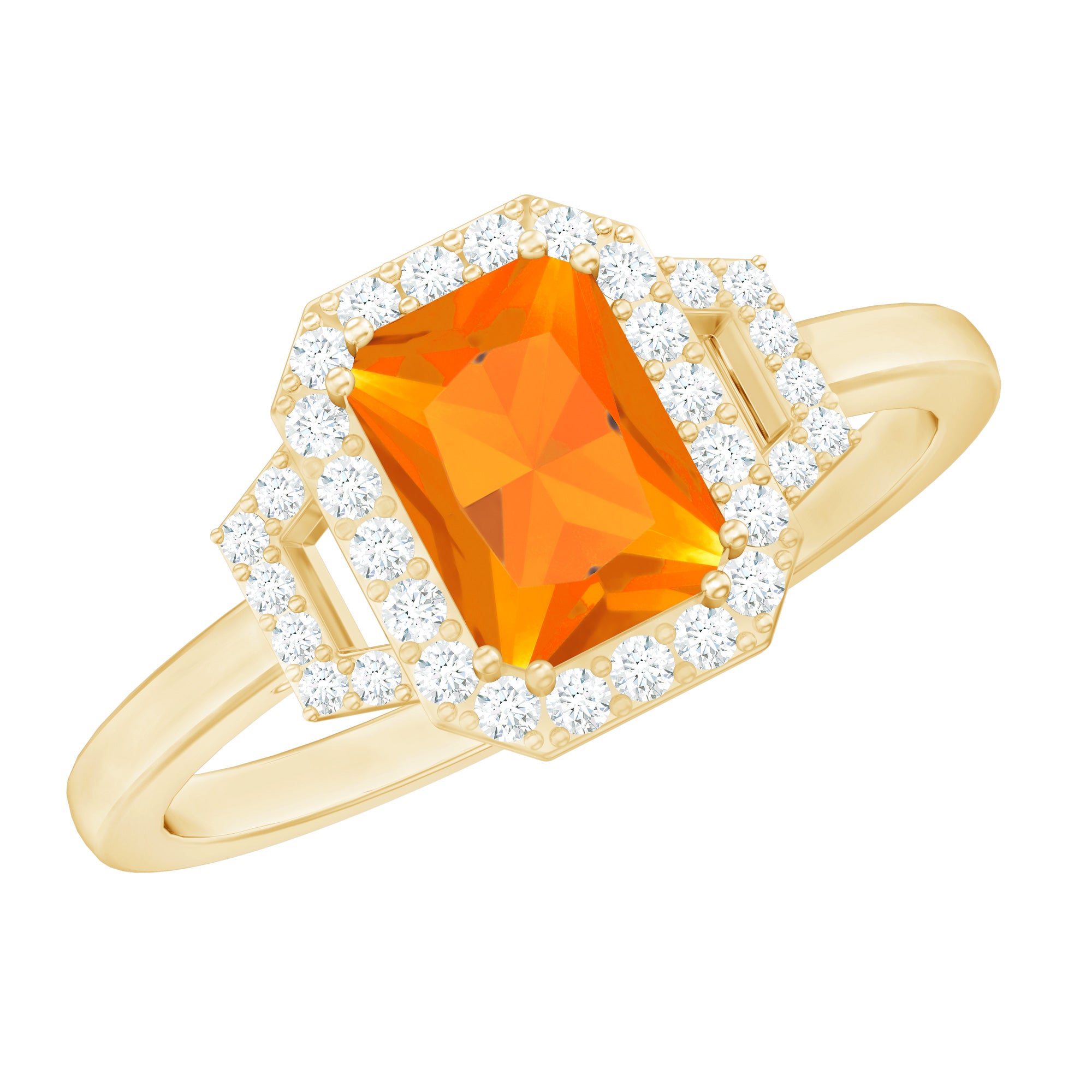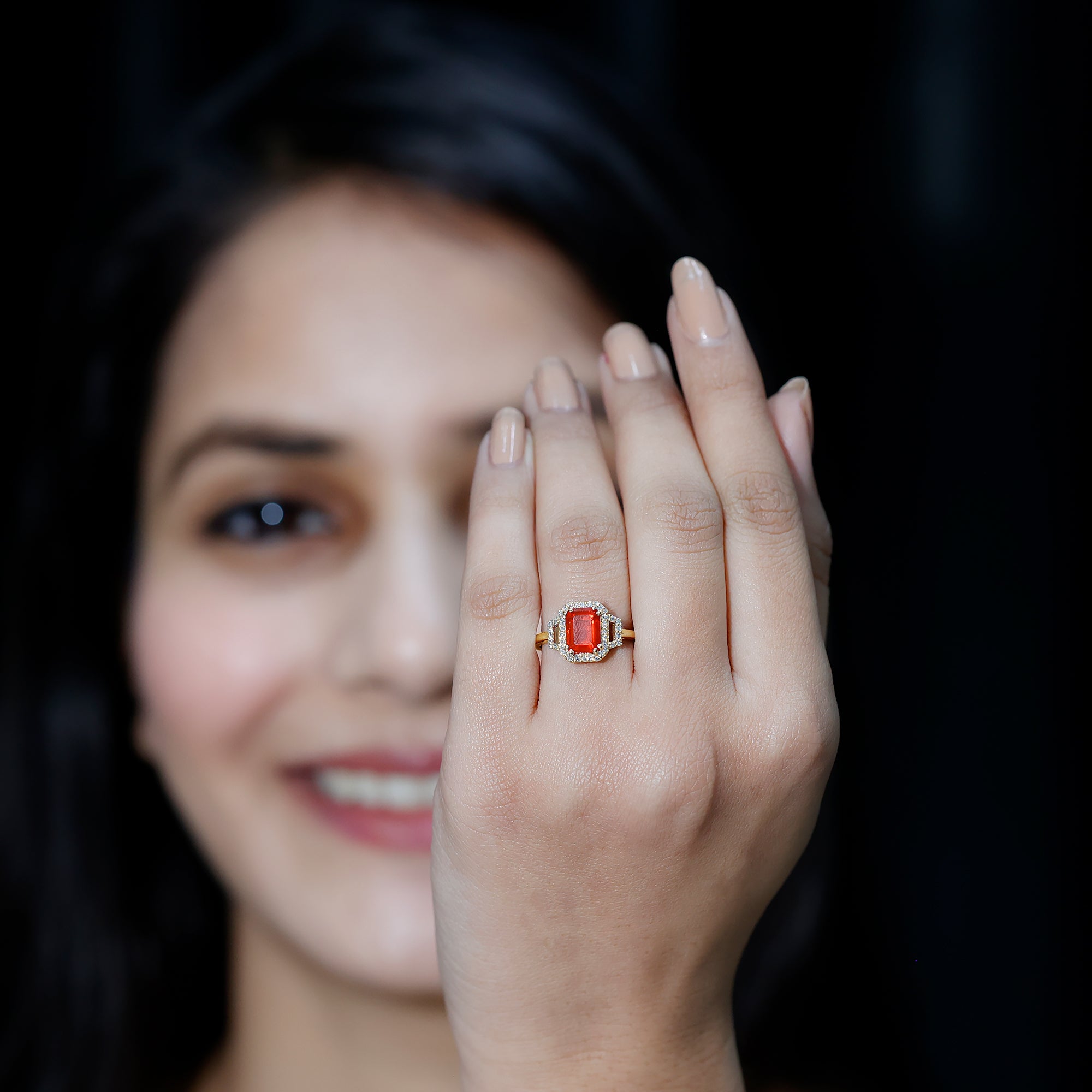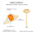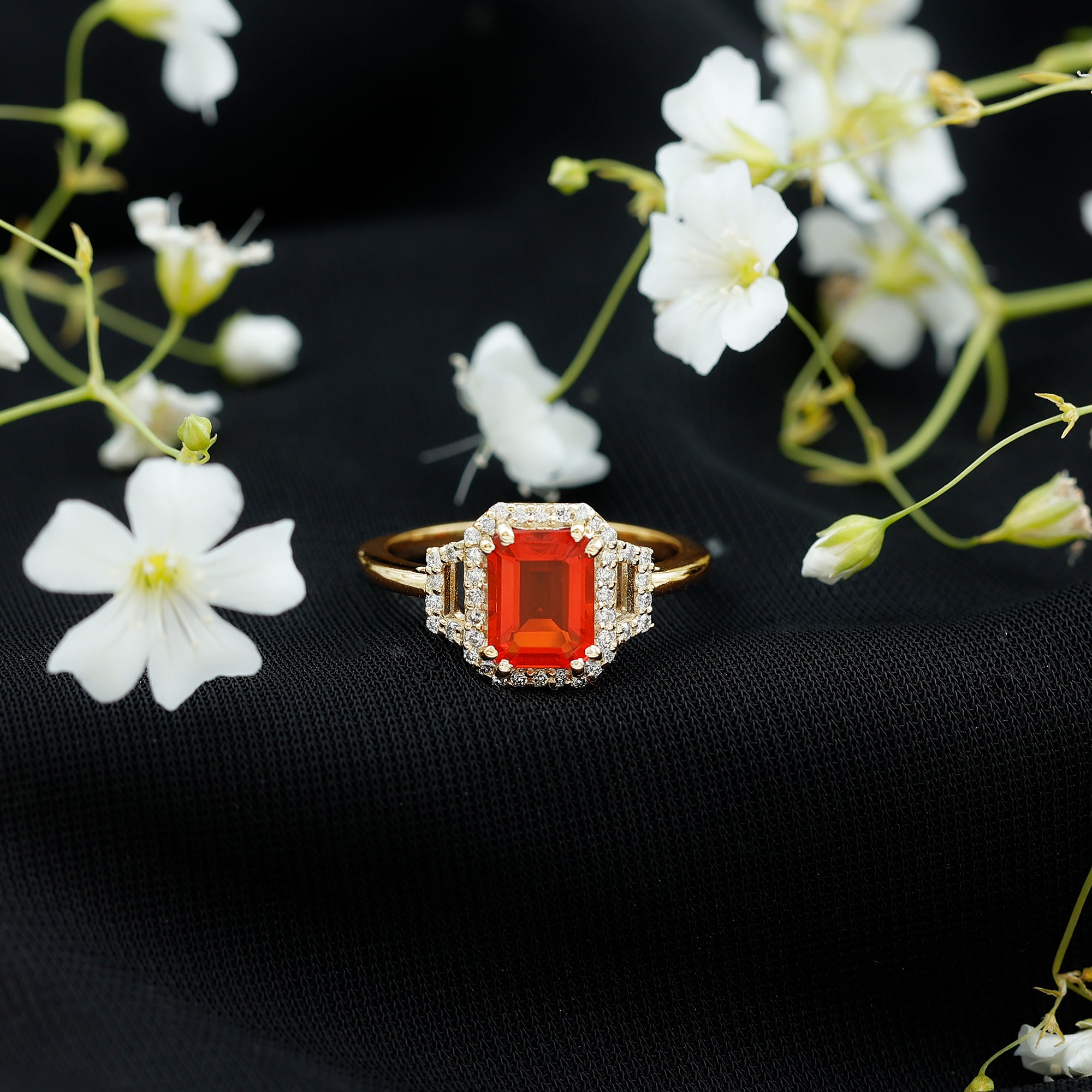 Emerald Cut Fire Opal Statement Engagement Ring with Diamond