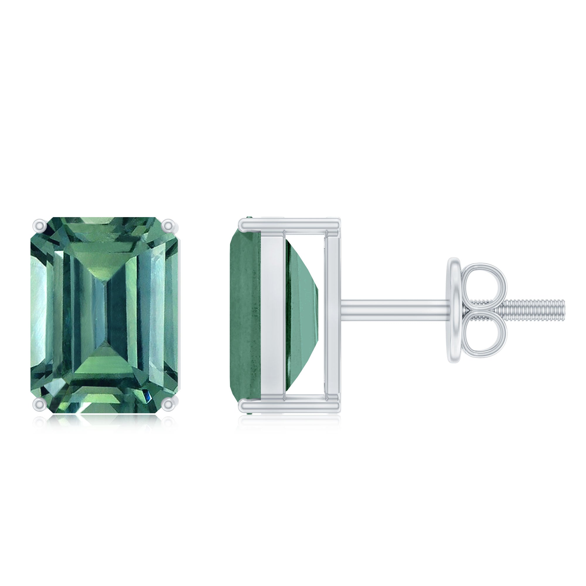 Graceful and full of color, these Lab Created Green Sapphire Earrings are a beautiful blend of simplicity and elegance. Designed with a 6X8 MM emerald cut lab created green sapphire, carefully set in secure 4-prong setting. The rectangular shape of the sapphire highlights its rich green hue and creating a look that feels both timeless and modern. The vibrant sparkle of the AAAA quality lab created green sapphire brings a touch of luxury to any outfit, whether you are dressing up for a special occasion or adding a pop of color to your everyday style. The craftsmanship ensures each stone reflects light beautifully, giving the Solitaire Earrings a radiant and eye-catching glow. Designed for comfort and ease, these Emerald Cut Stud Earrings come with screw back closures that keep them securely in place all day. Ethically made and full of charm, these Lab Grown Green Sapphire Stud Earrings make a thoughtful gift for someone special or a lovely treat for yourself. With their timeless beauty and graceful design, they are sure to become a favorite addition to any jewelry collection, bringing elegance and sparkle to every moment.