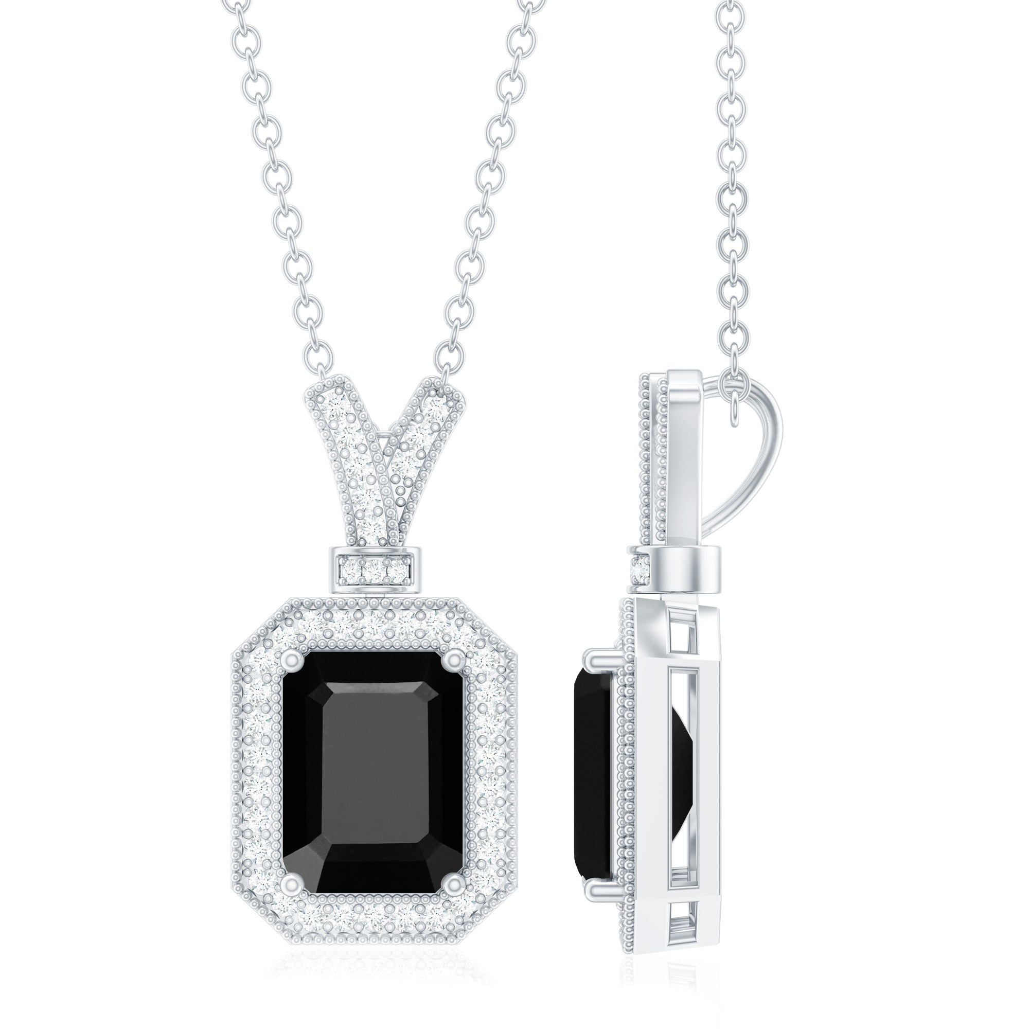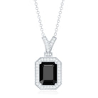 Emerald Cut Lab Grown Black Diamond Halo Pendant Necklace