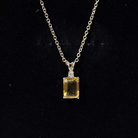 Emerald Cut Lab Yellow Sapphire Solitaire Necklace with Silver Chain