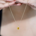 Radiating the warmth and brilliance of a golden sunrise, this stunning Solitaire Pendant Necklace centers around a captivating 6X8 MM emerald cut lab created yellow sapphire. Above the yellow sapphire sits a delicate round lab grown diamond, dainty yet full of sparkle, providing a soft accent that complements the boldness of the center stone without overshadowing it. This thoughtful pairing of stones brings harmony to the design - bright, radiant, and effortlessly chic. The Lab Grown Yellow Sapphire Necklace is suspended from a rabbit ear bail, which not only adds a graceful, flowing silhouette to the piece but also offers a secure and stylish connection to the chain. Crafted in 14K yellow gold plated silver, the warm metal beautifully complements the golden tones of the sapphire while offering lasting durability and a polished, luxurious finish. The piece is gracefully hung from a matching cable chain that provides just the right balance of delicacy and strength, ensuring the Emerald Cut Pendant remains the centerpiece. Handcrafted with care and artistry, this Sapphire and Diamond Necklace is a modern expression of sophistication and warmth, perfect for marking special occasions or brightening everyday style with a touch of sunlit elegance.