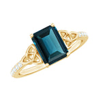 Emerald Cut London Blue Topaz Celtic Engagement Ring with Diamond