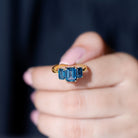 Emerald Cut London Blue Topaz Three Stone Engagement Ring