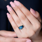 Profess her that she is your eternal companion - encompassing the past, present, and future - with this exquisite Three Stone Engagement Ring. Striking and elegant, this London Blue Topaz Engagement Ring is designed to make a statement. It showcases three captivating emerald cut London Blue Topaz stones, are meticulously set in a secure prong setting. The central stone measures 6X8 MM, while the two adjacent stones are 4X6 MM, providing an ideal balance and sophistication to the overall design. What truly distinguishes this Past Present and Future Ring is its significance. The three stones symbolize your shared journey, reflecting where you have been, where you currently are, and all that lies ahead. It is a ring that conveys profound meaning without uttering a single word, making it an exceptional gift for a proposal, Valentine’s Day, anniversary, or simply a heartfelt surprise. The royal blue topaz exudes a sleek, contemporary aura while maintaining a timeless and elegant appeal. It deviates from the conventional engagement ring, which adds to its uniqueness, much like your love story. Crafted with exceptional quality and featuring certified Natural London Blue Topaz stones, this December Birthstone Ring is a cherished memory in the making. Whether she appreciates bold statement pieces or prefers more unconventional designs, this Emerald Cut Blue Topaz Ring is guaranteed to capture her heart. Therefore, proceed to create an unforgettable moment with a ring that is as meaningful as it is stunning.