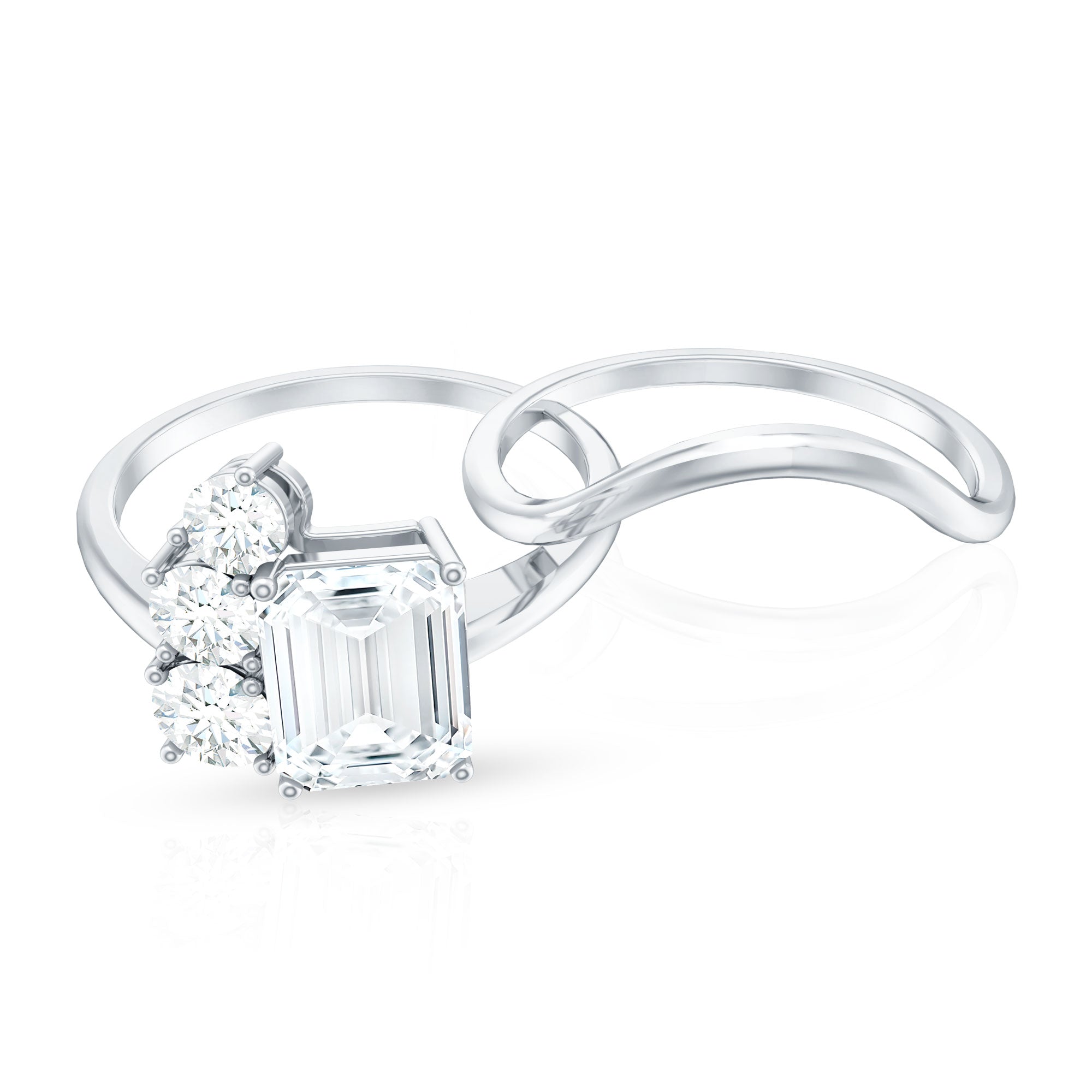 Emerald Cut Moissanite Engagement Ring with Enhancer