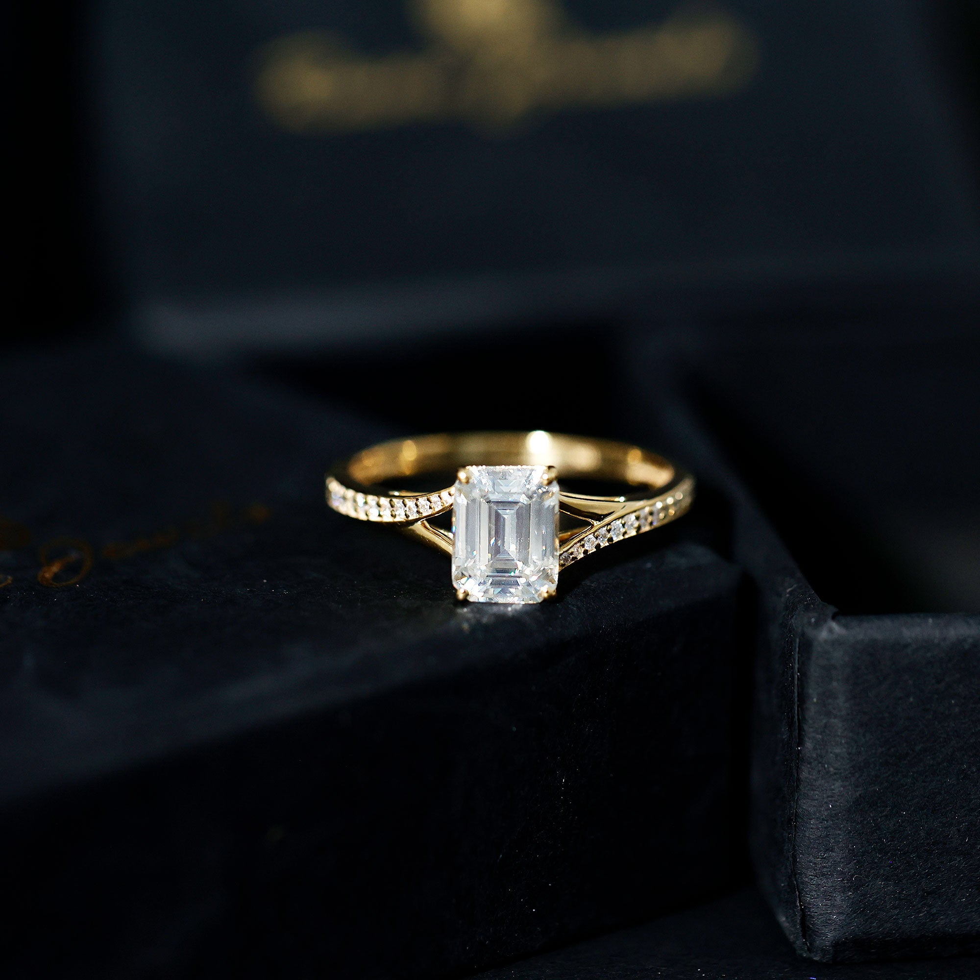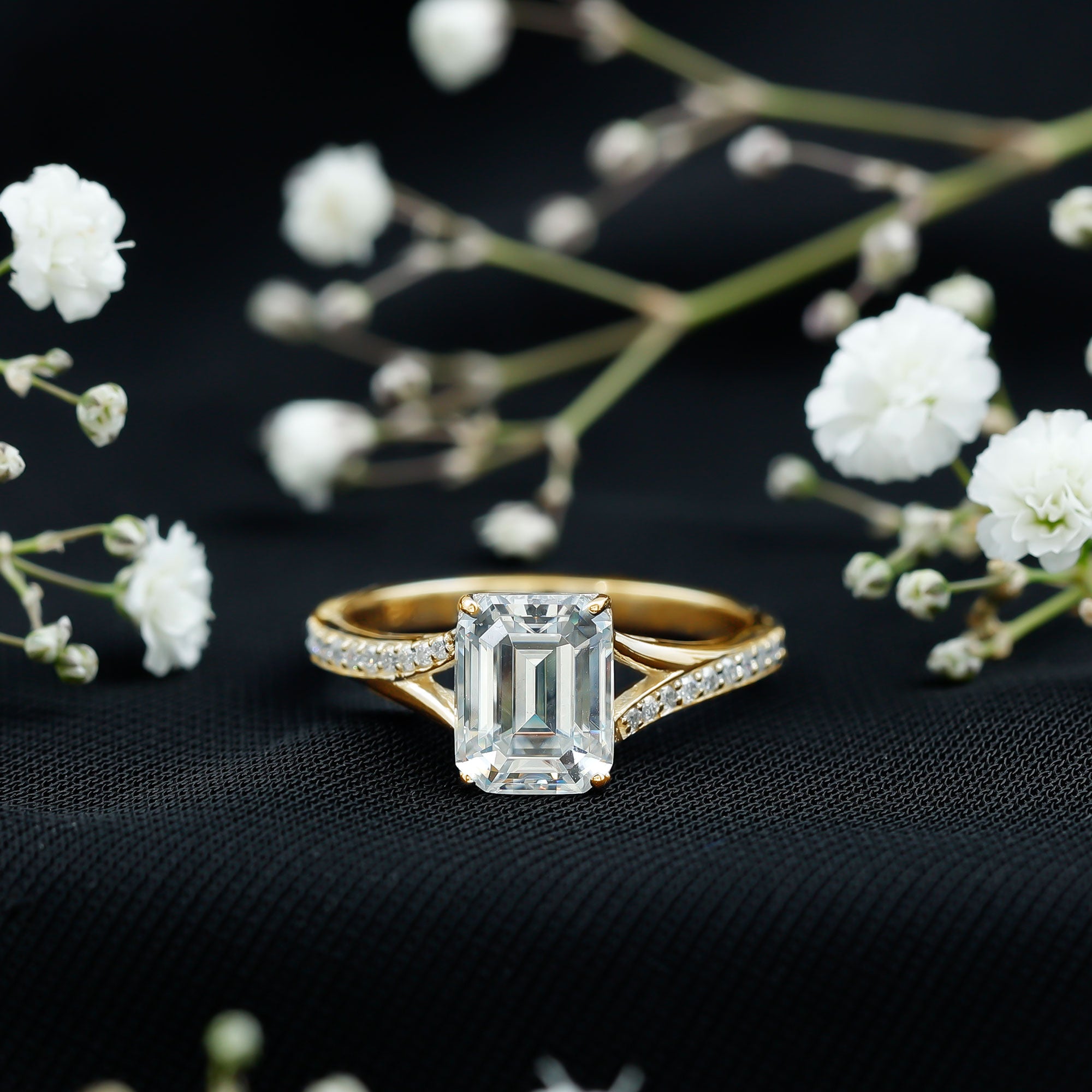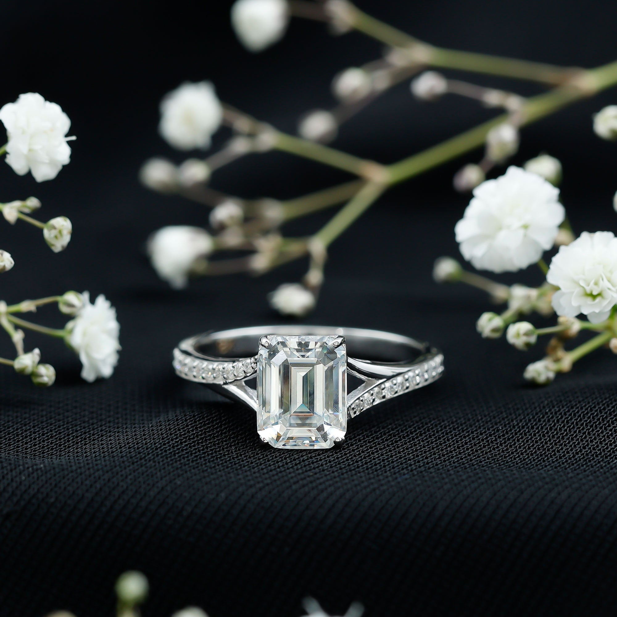 Emerald Cut Moissanite Solitaire Engagement Ring with Split Shank