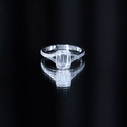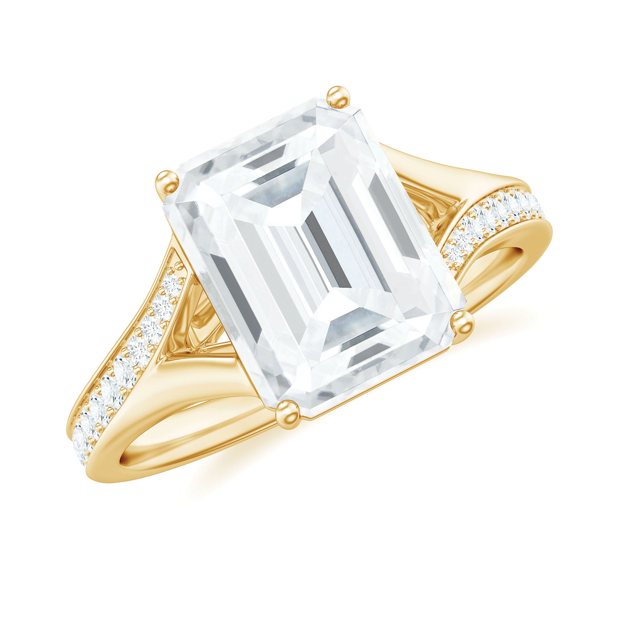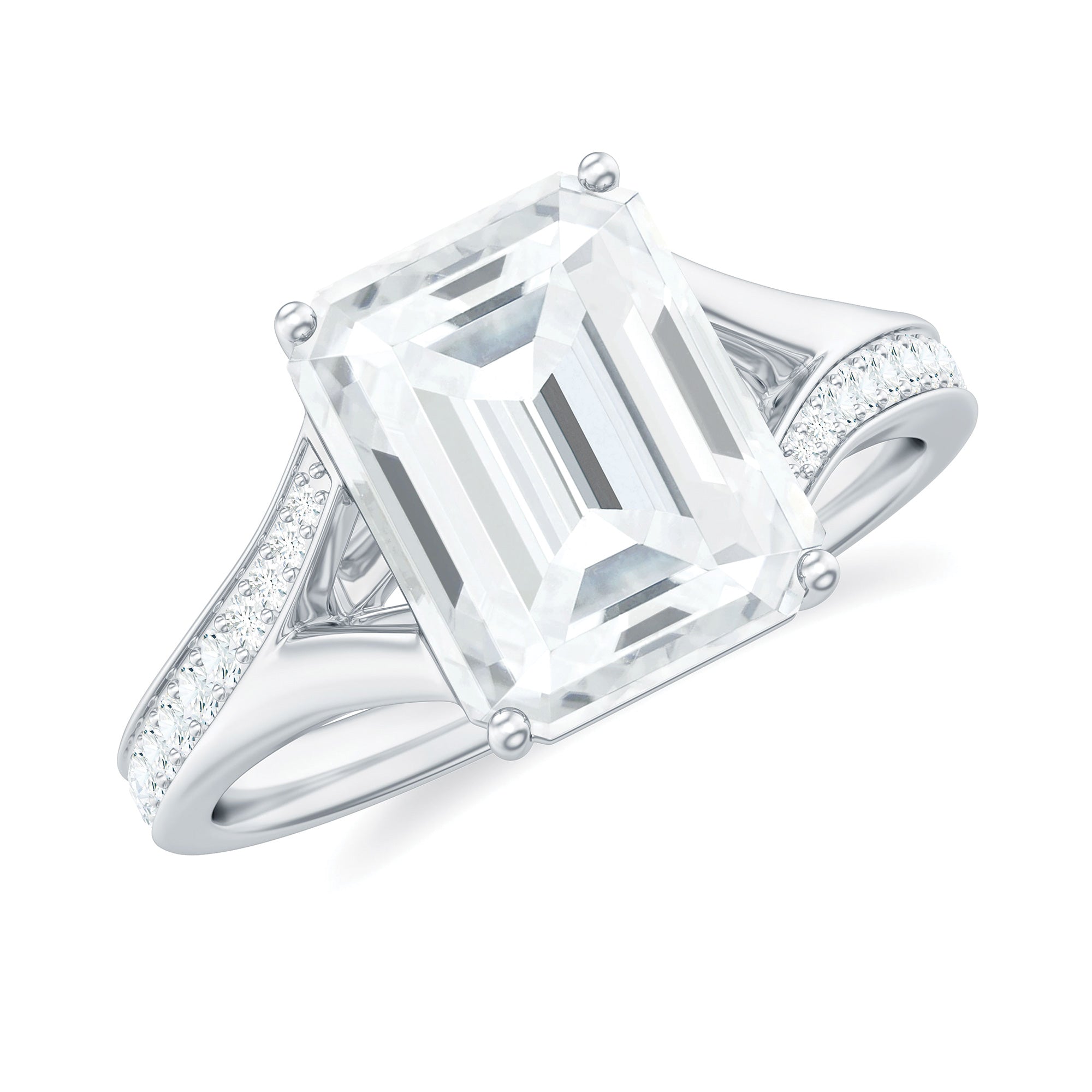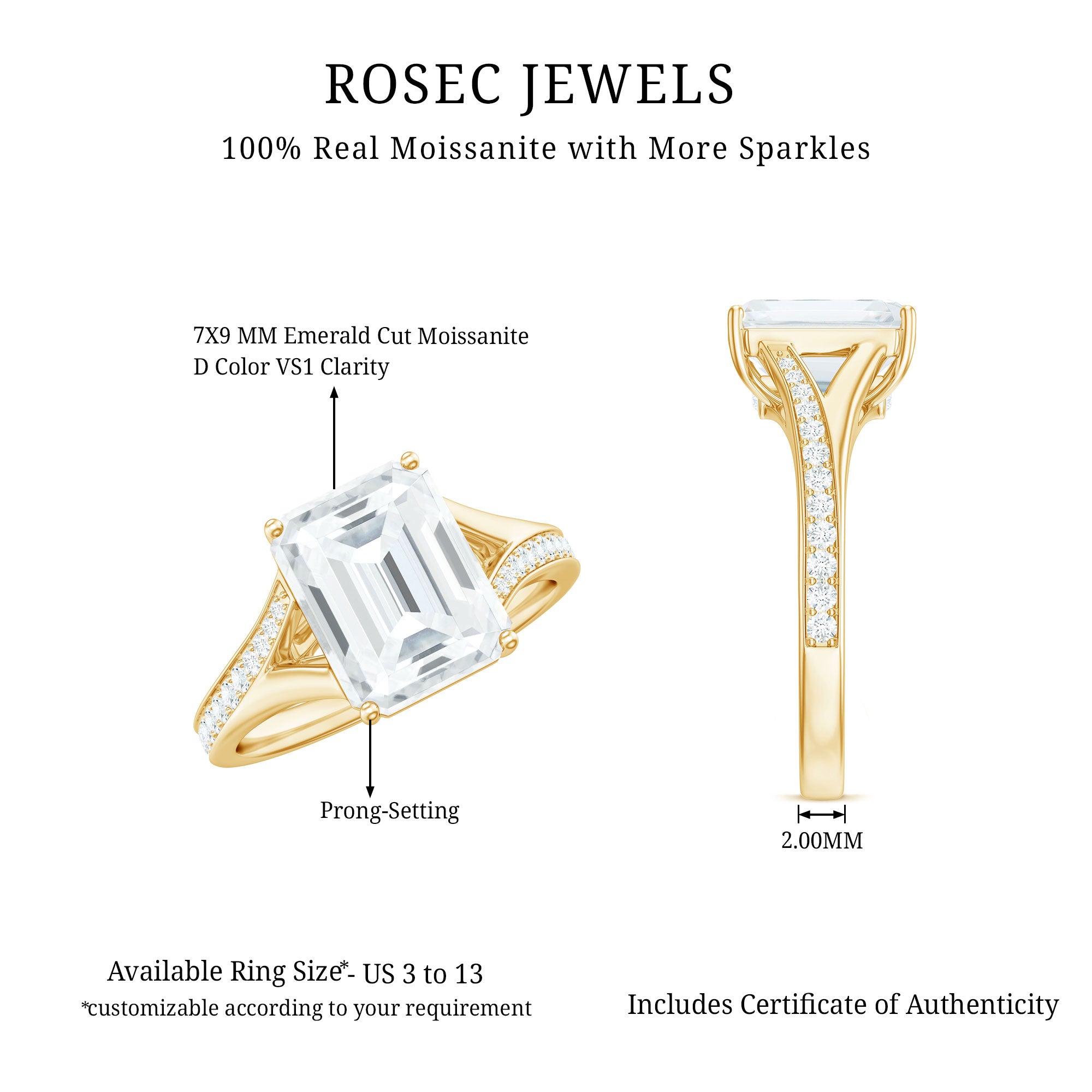 Emerald Cut Moissanite Solitaire Engagement Ring with Split Shank