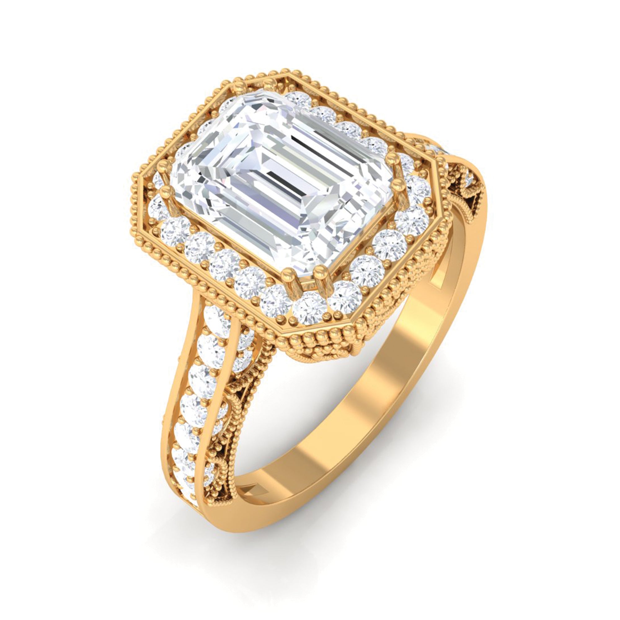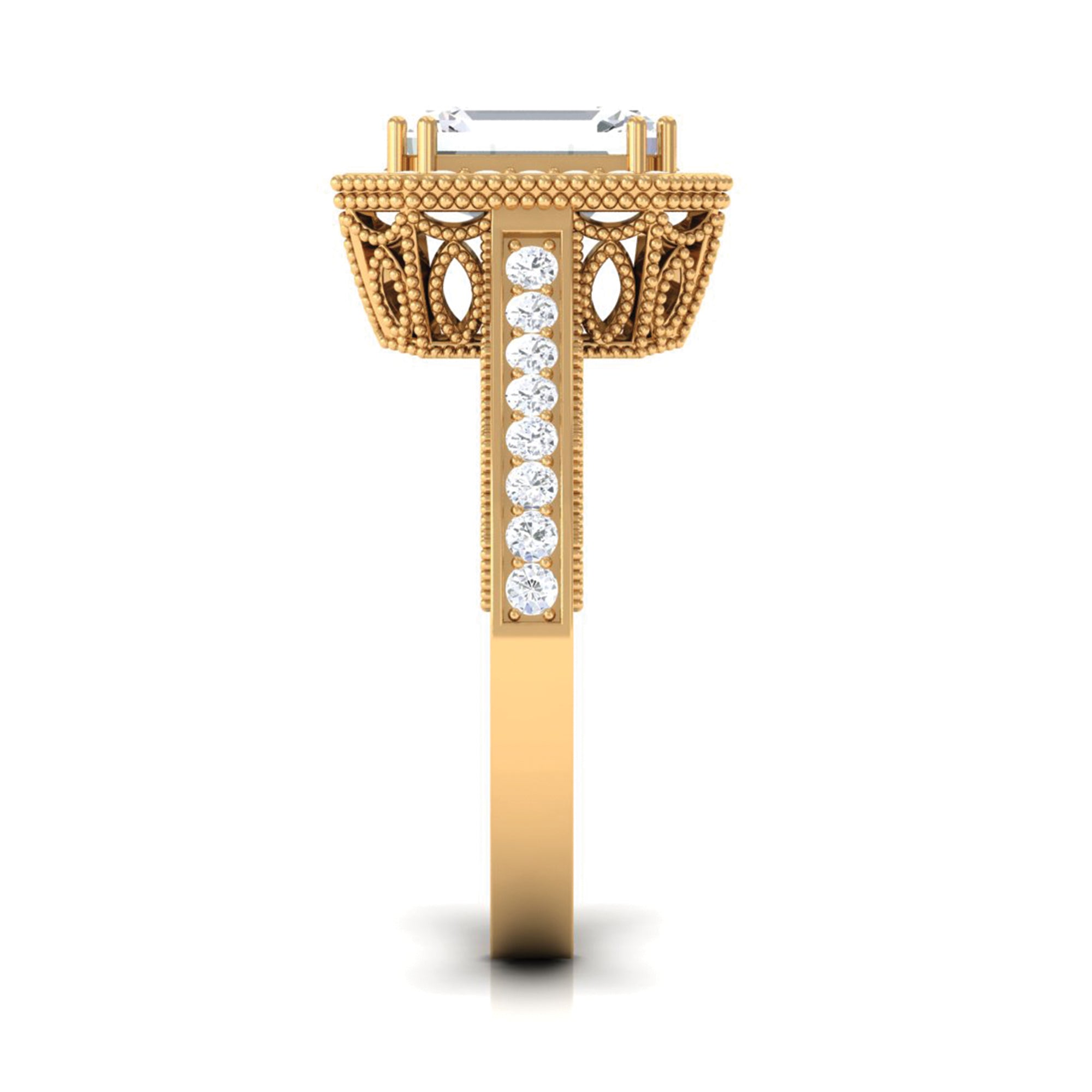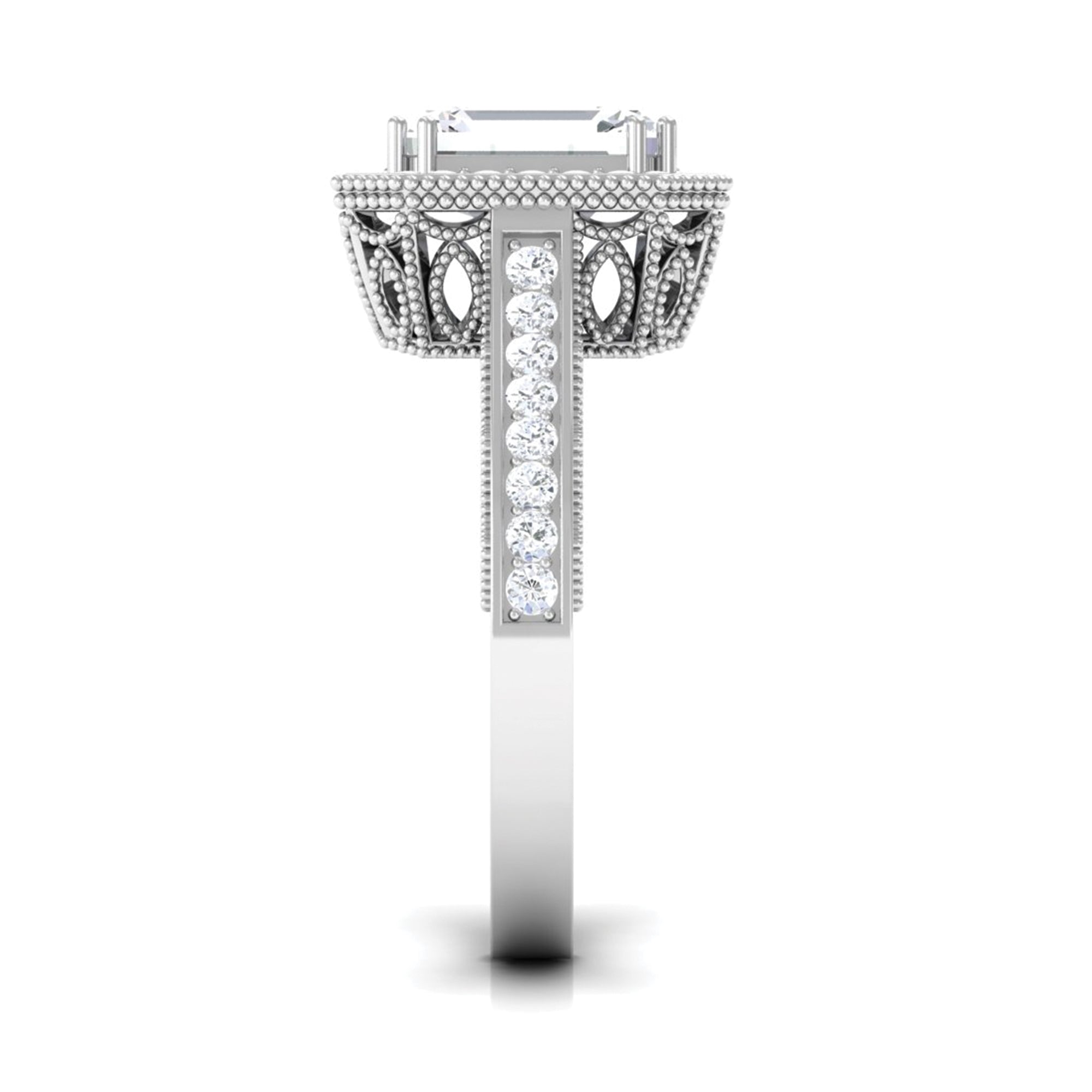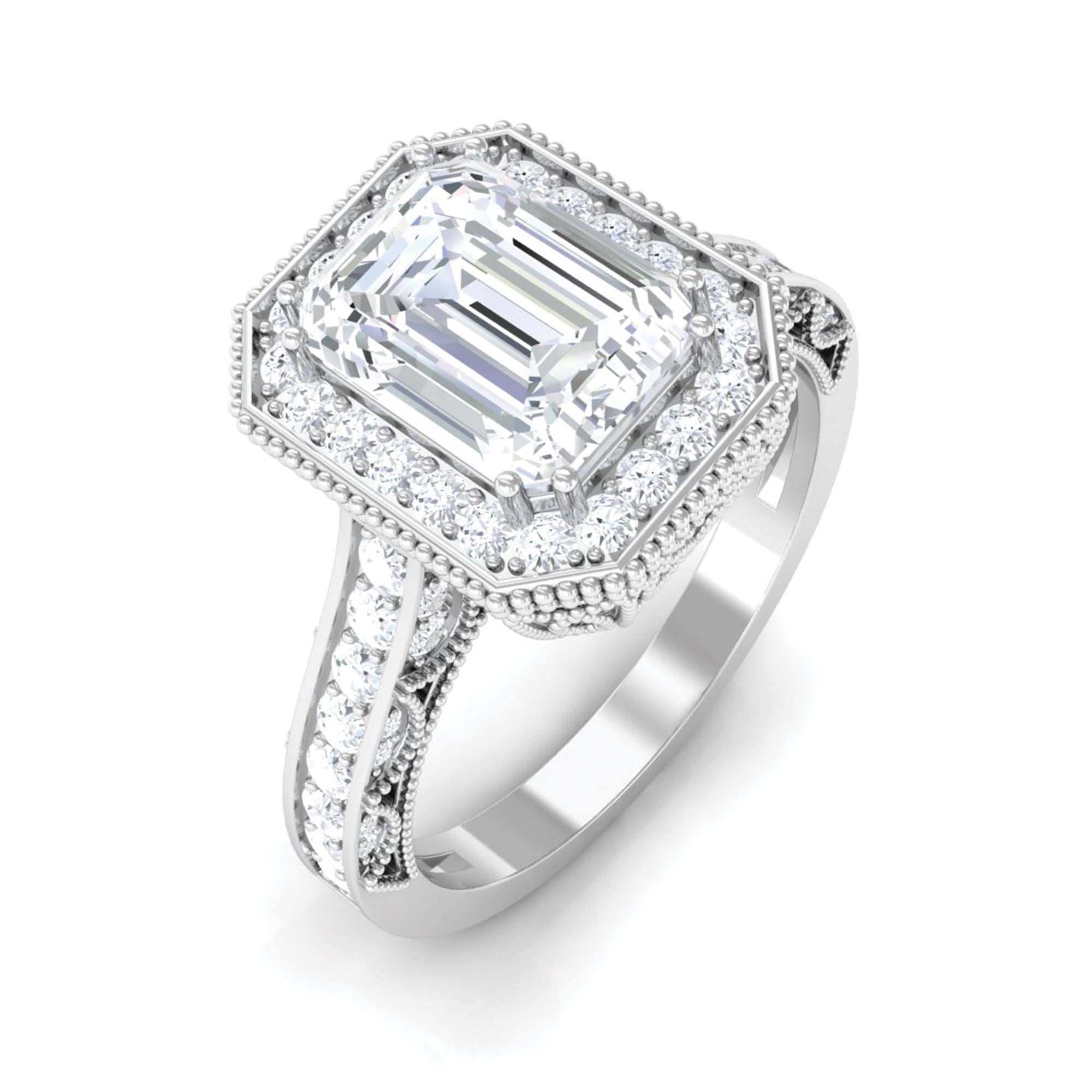 Celebrate your love with this stunning Moissanite Wedding Ring, featuring a gleaming octagonal shaped Moissanite at the center surrounded by small Round Shape Moissanite in a prong setting. This elegant ring, accented with additional Moissanite as side stones for a statement-making look. Its the perfect gift for the special woman in your life.