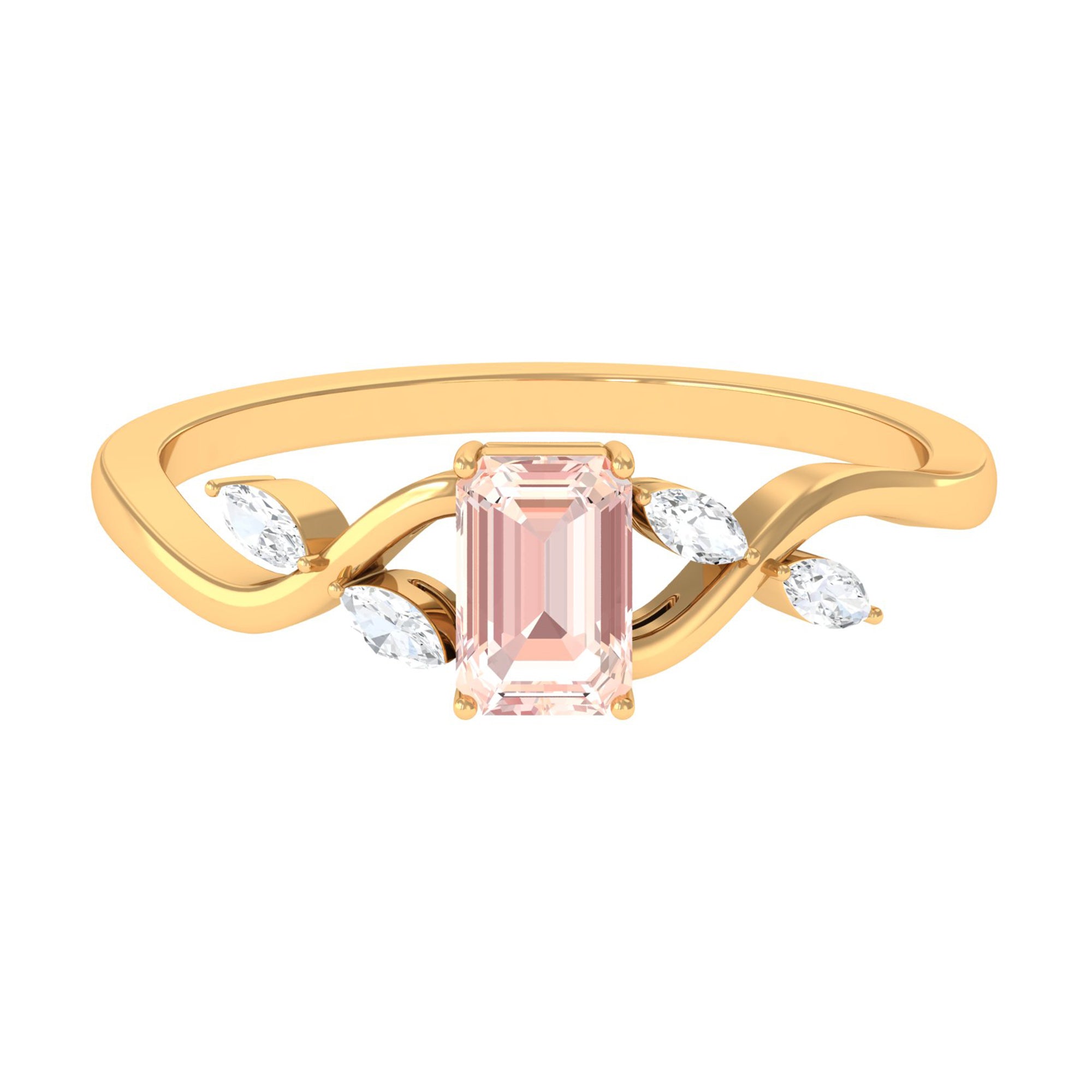 Emerald Cut Morganite and Diamond Solitaire Engagement Ring in Split Shank