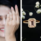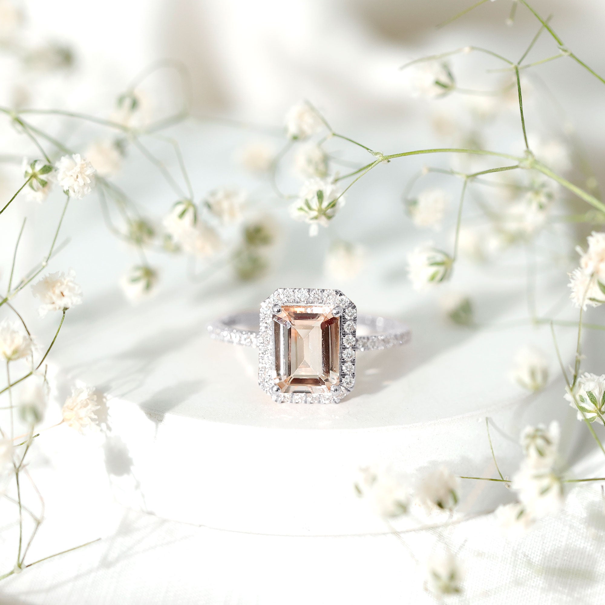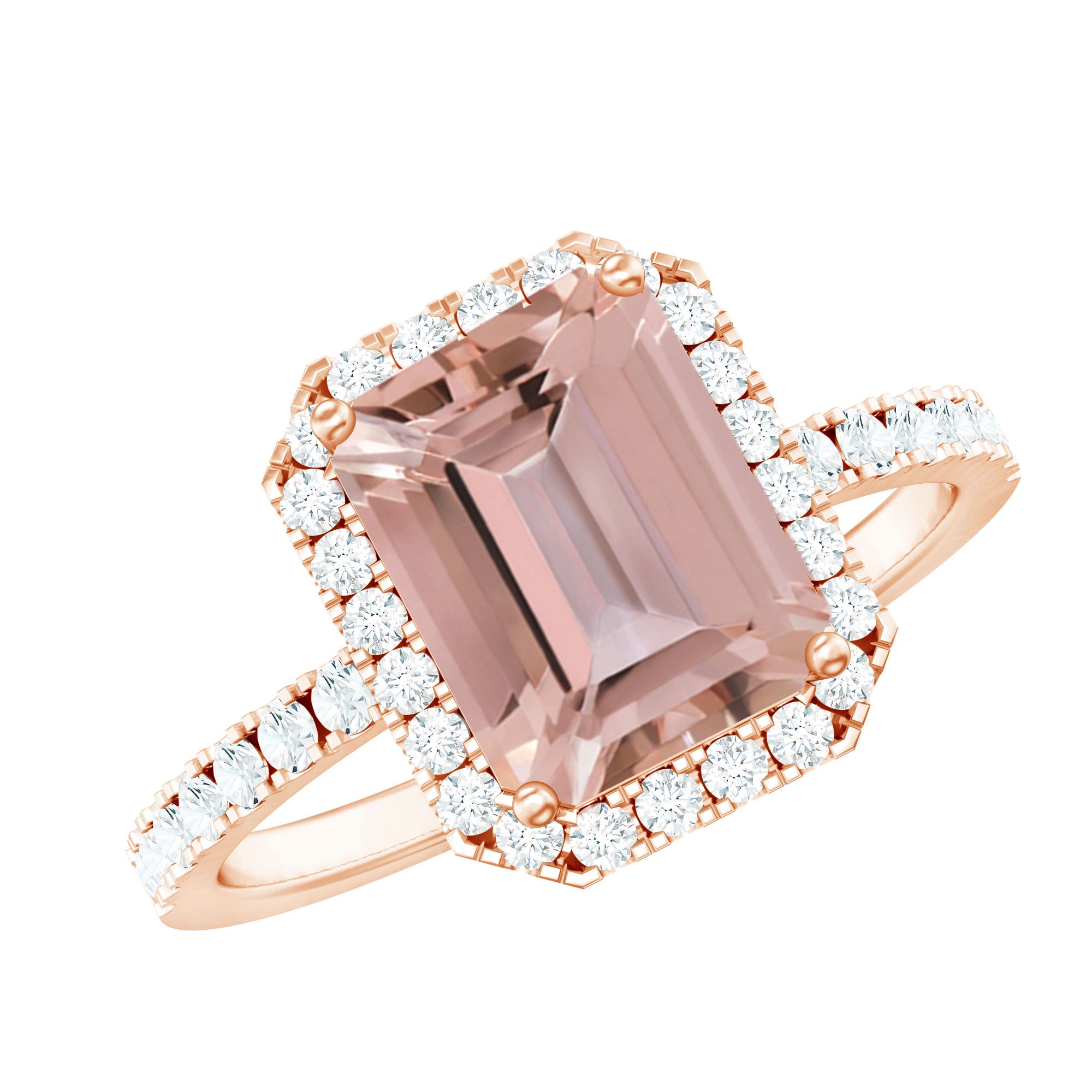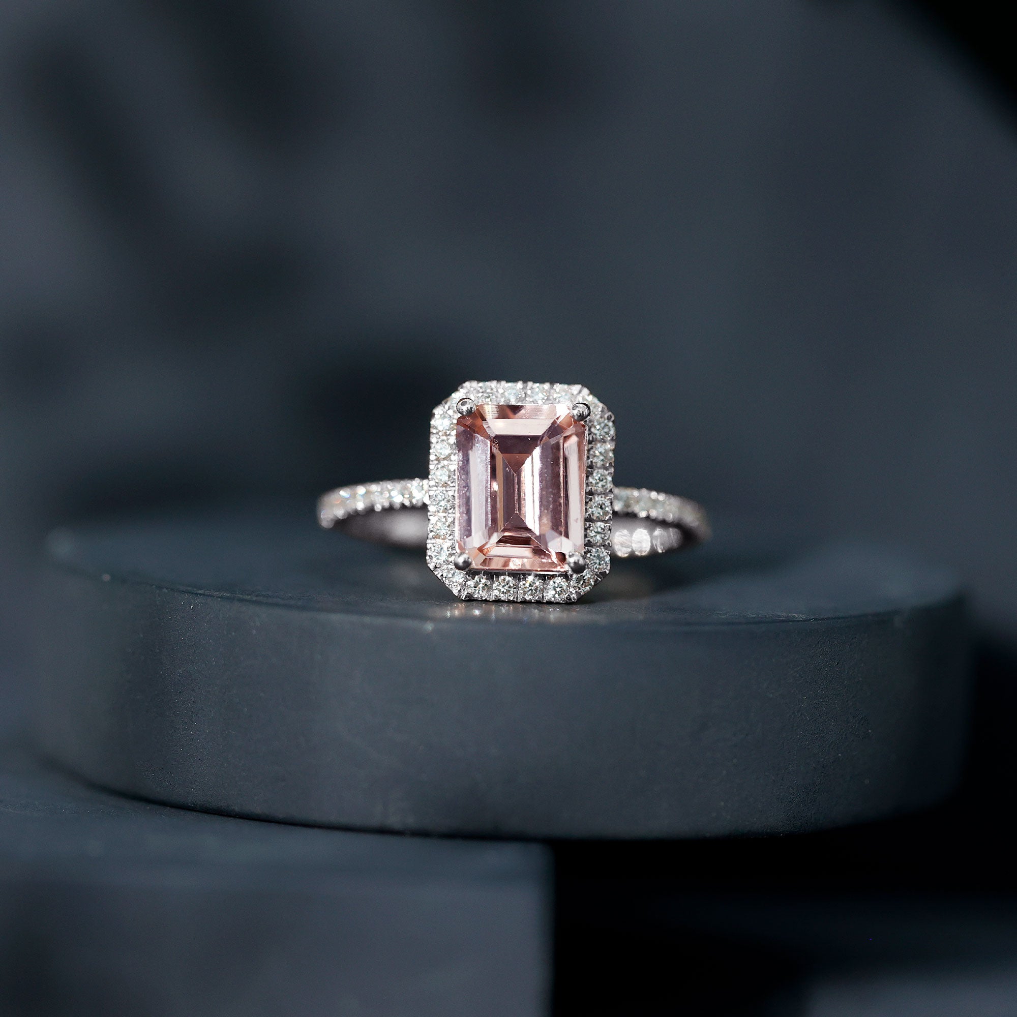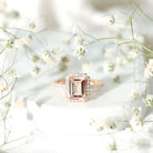 Emerald Cut Morganite Engagement Ring with Diamond Halo