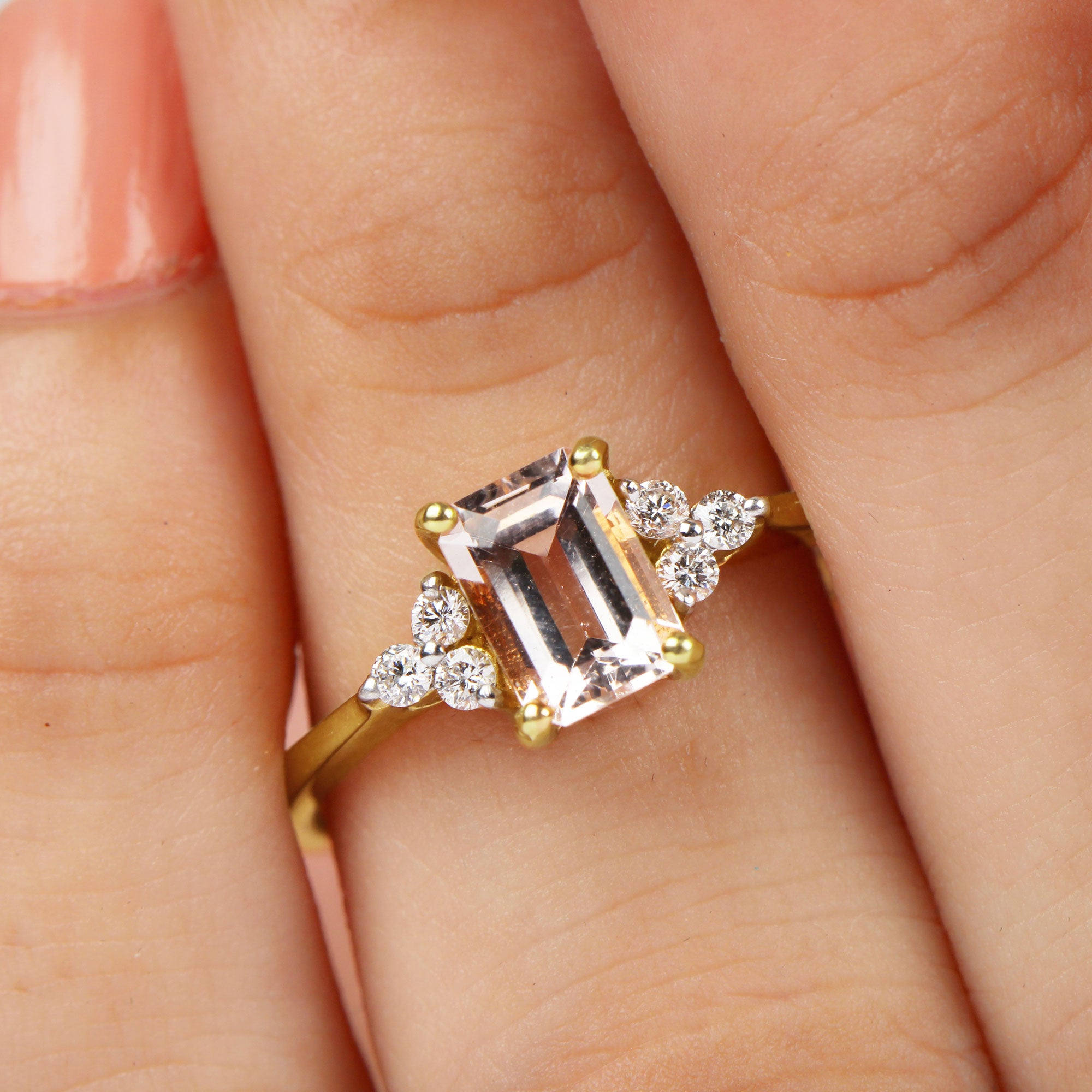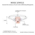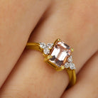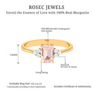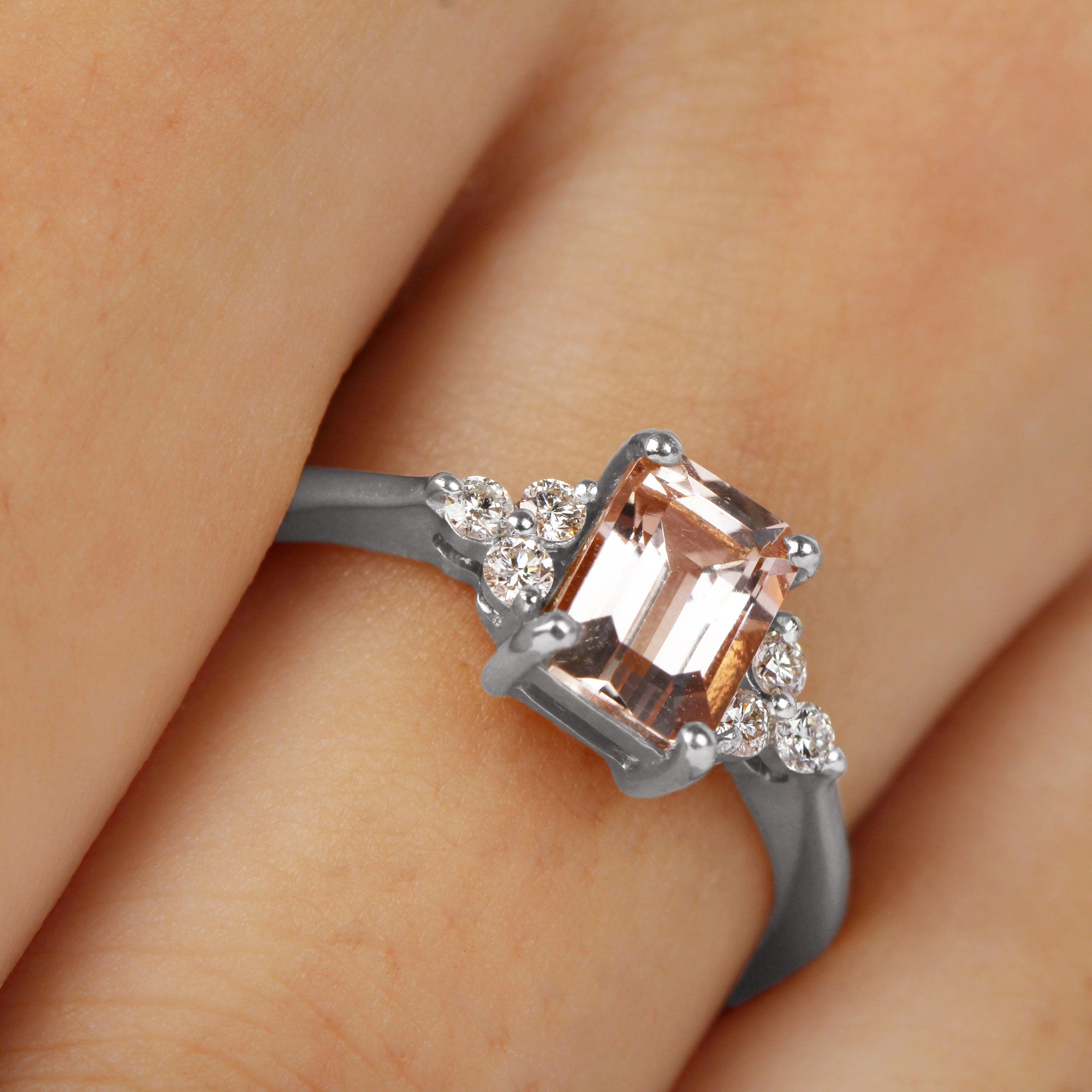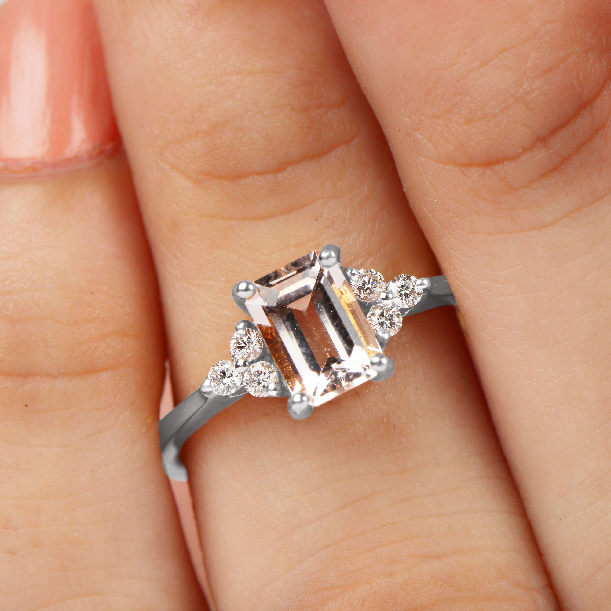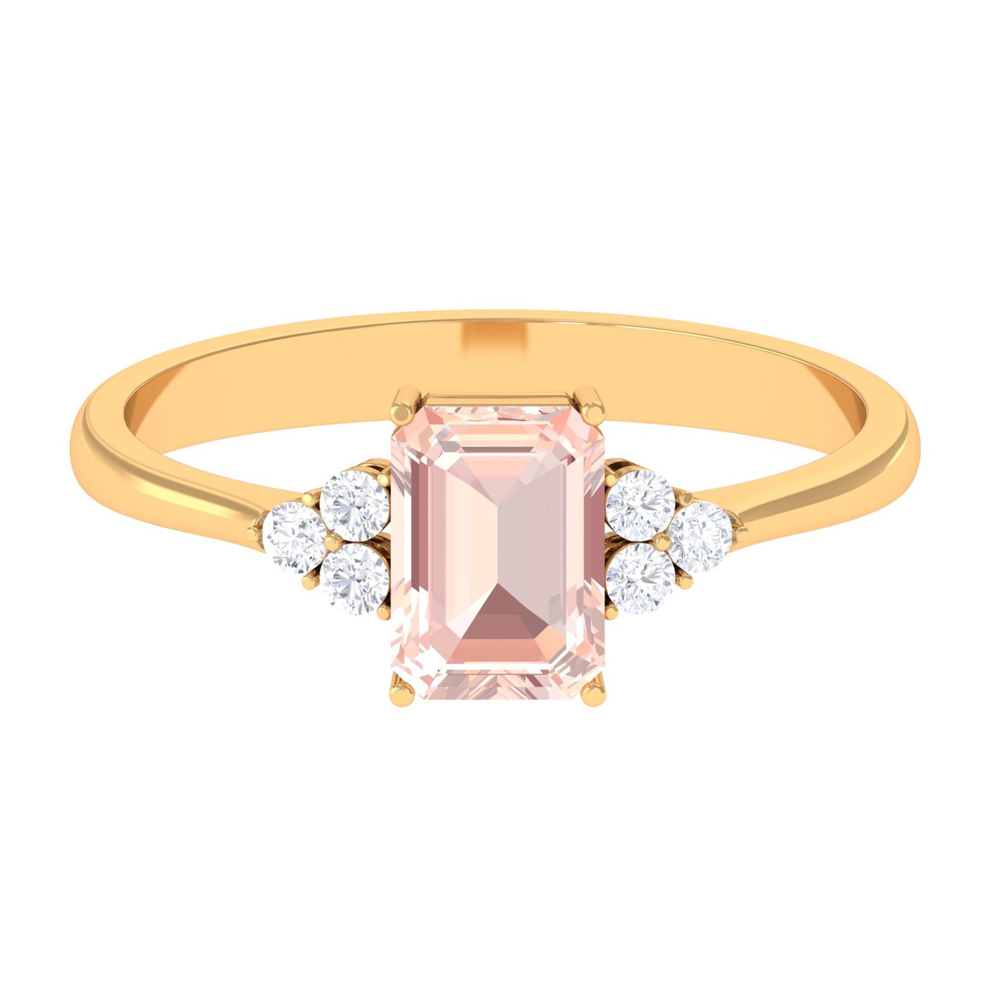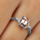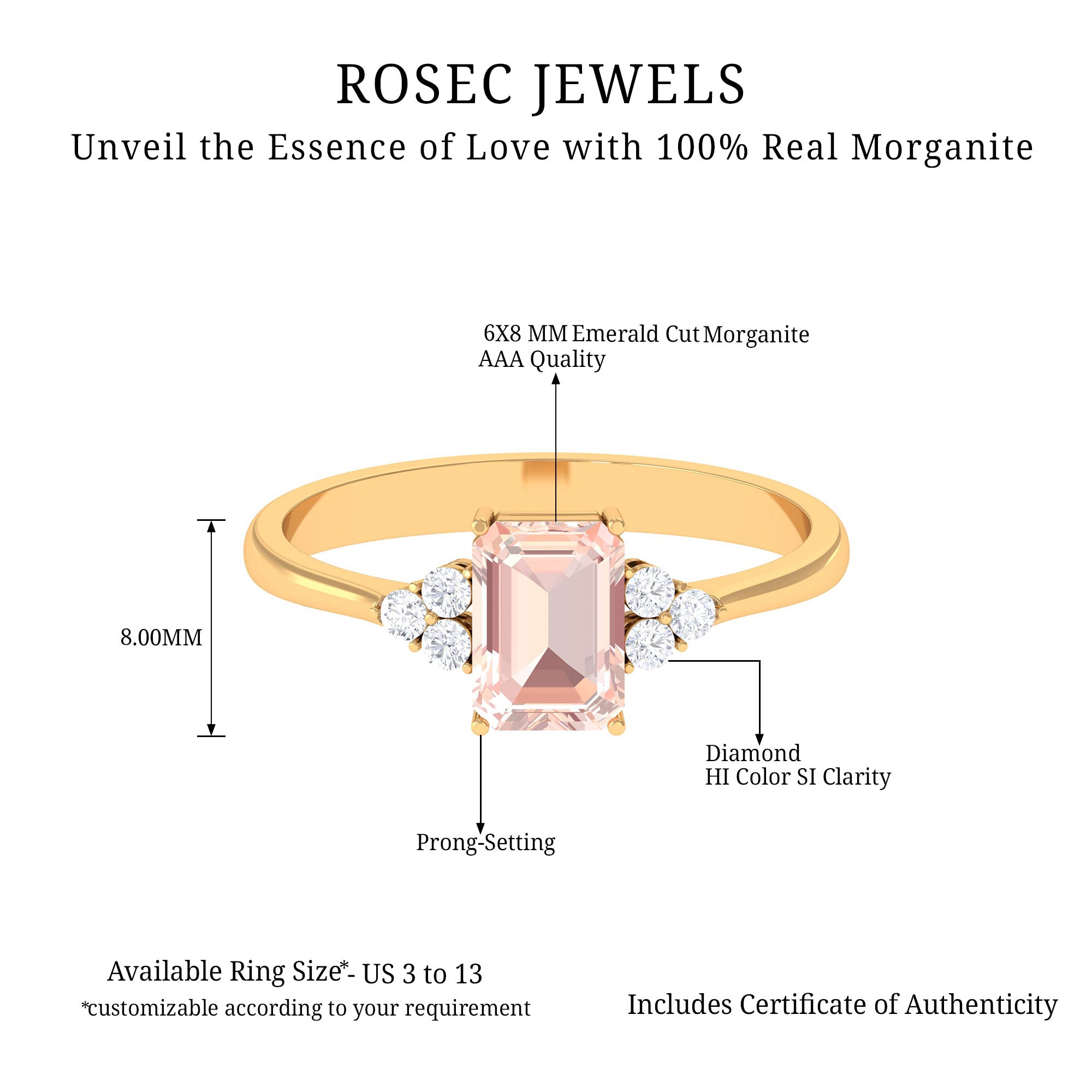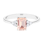 Emerald Cut Morganite Solitaire Engagement Ring with Diamond Trio