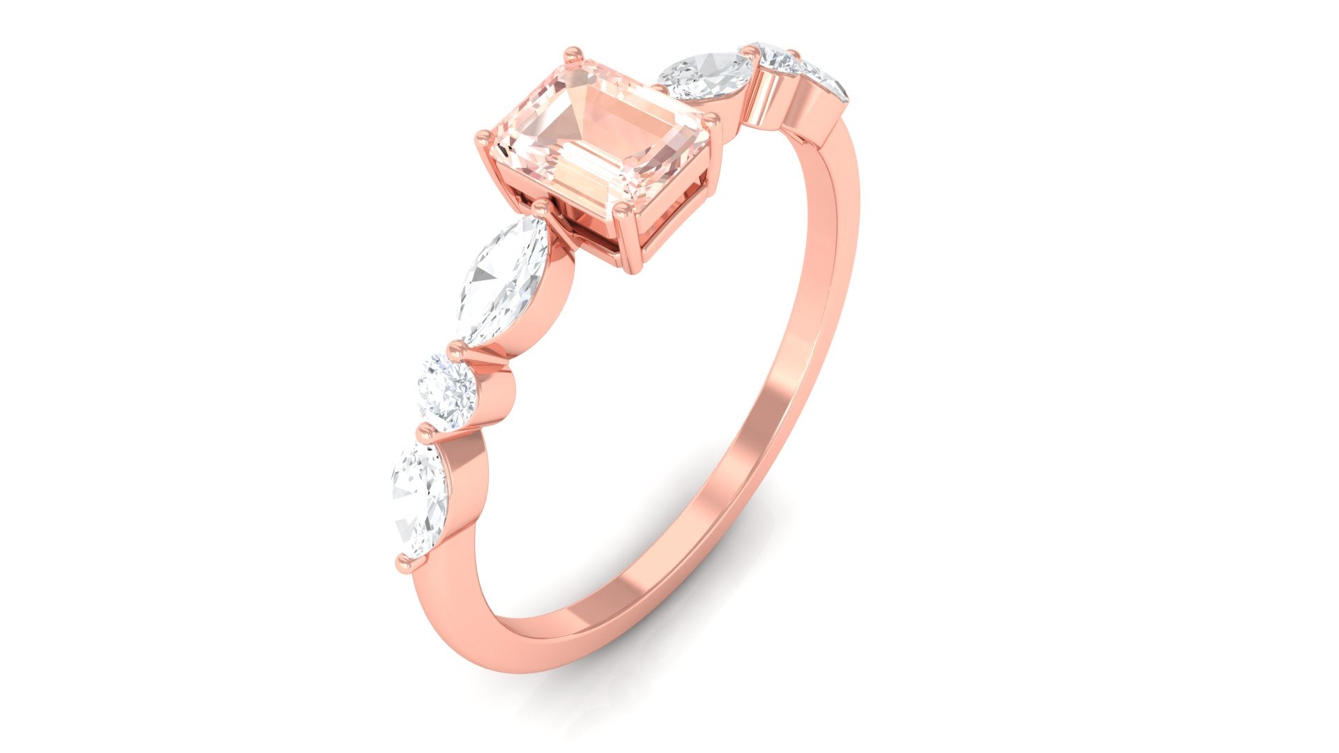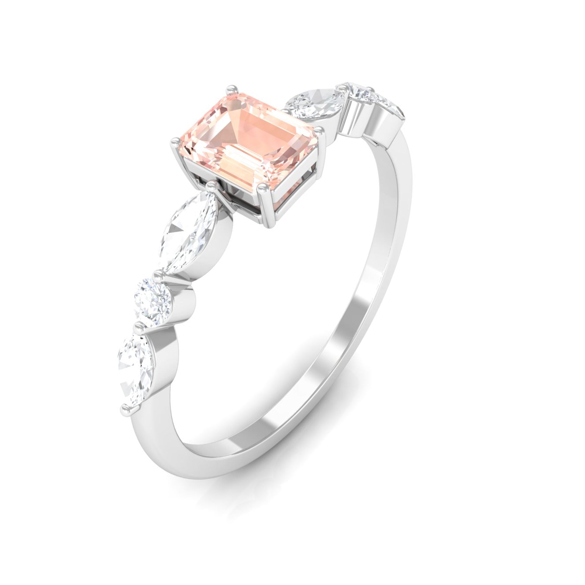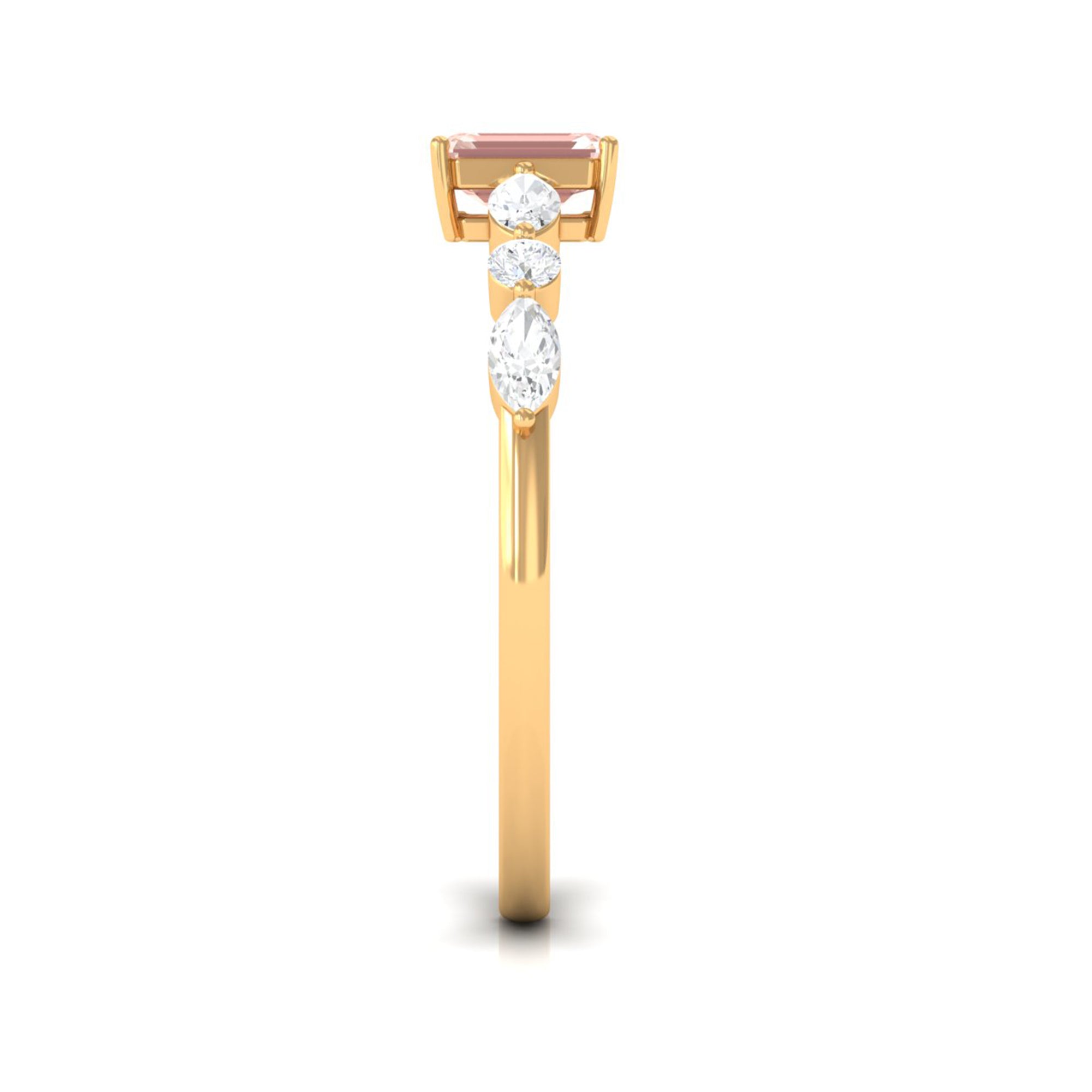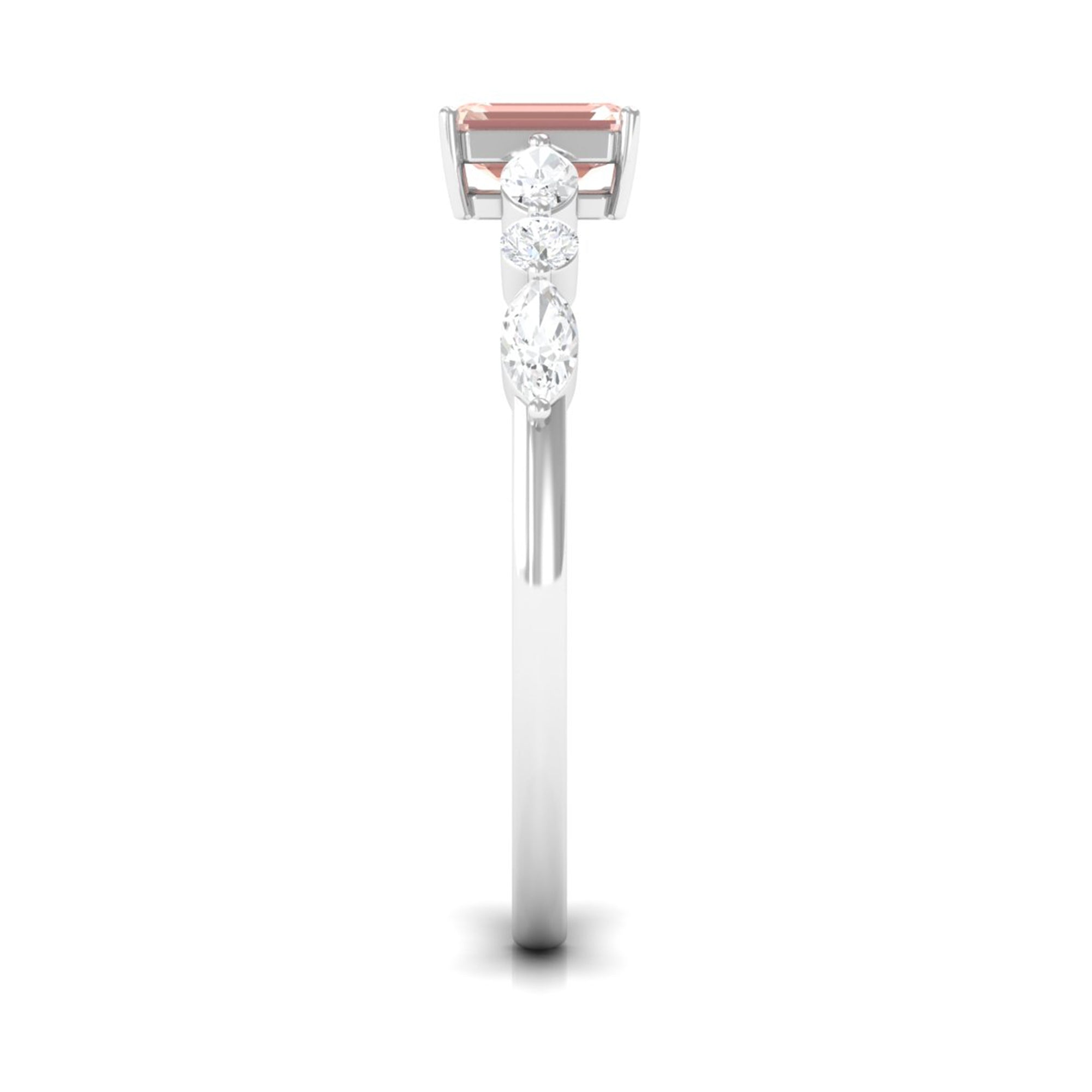 Emerald Cut Morganite Solitaire Ring with Diamond Side Stones
