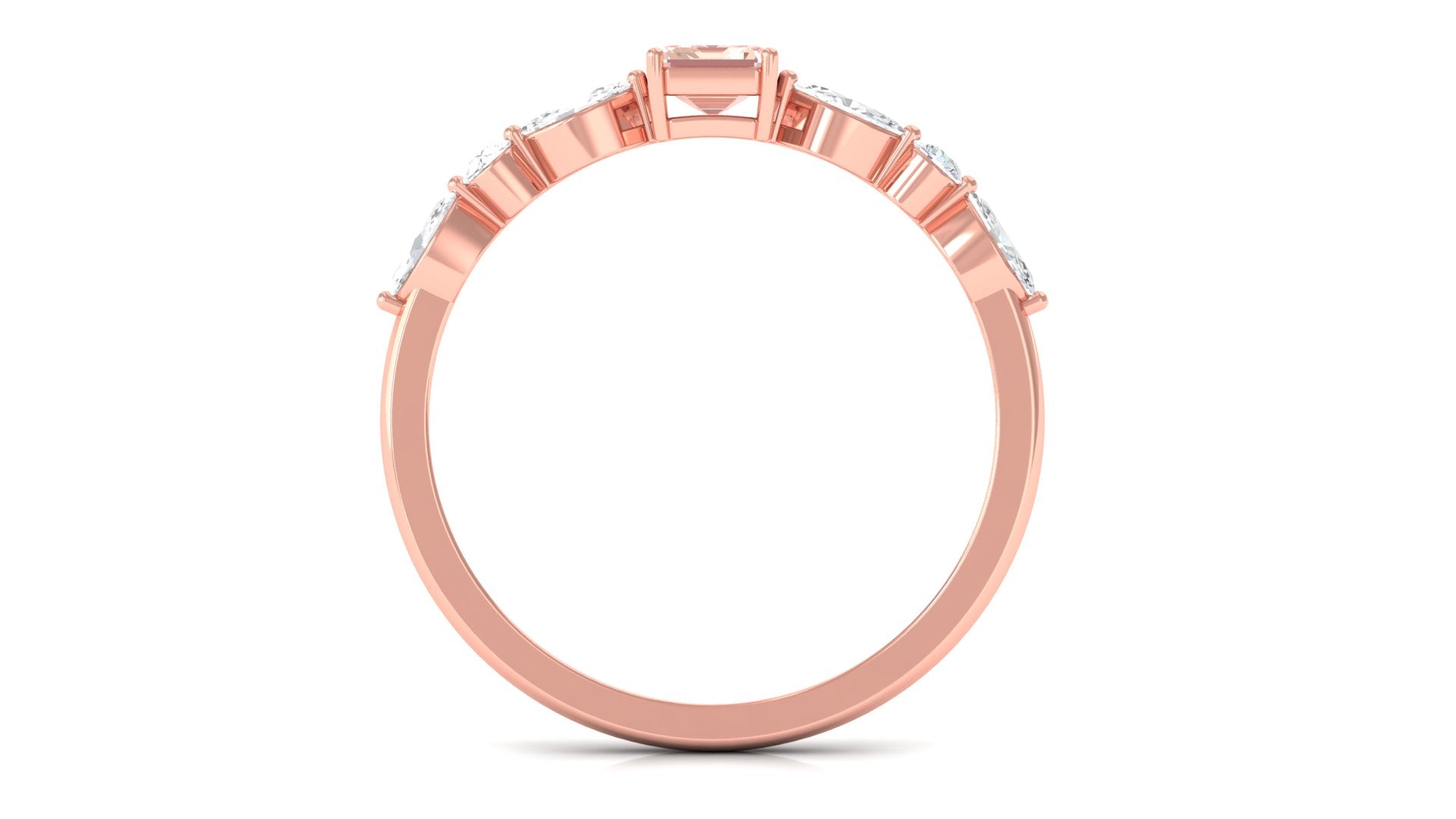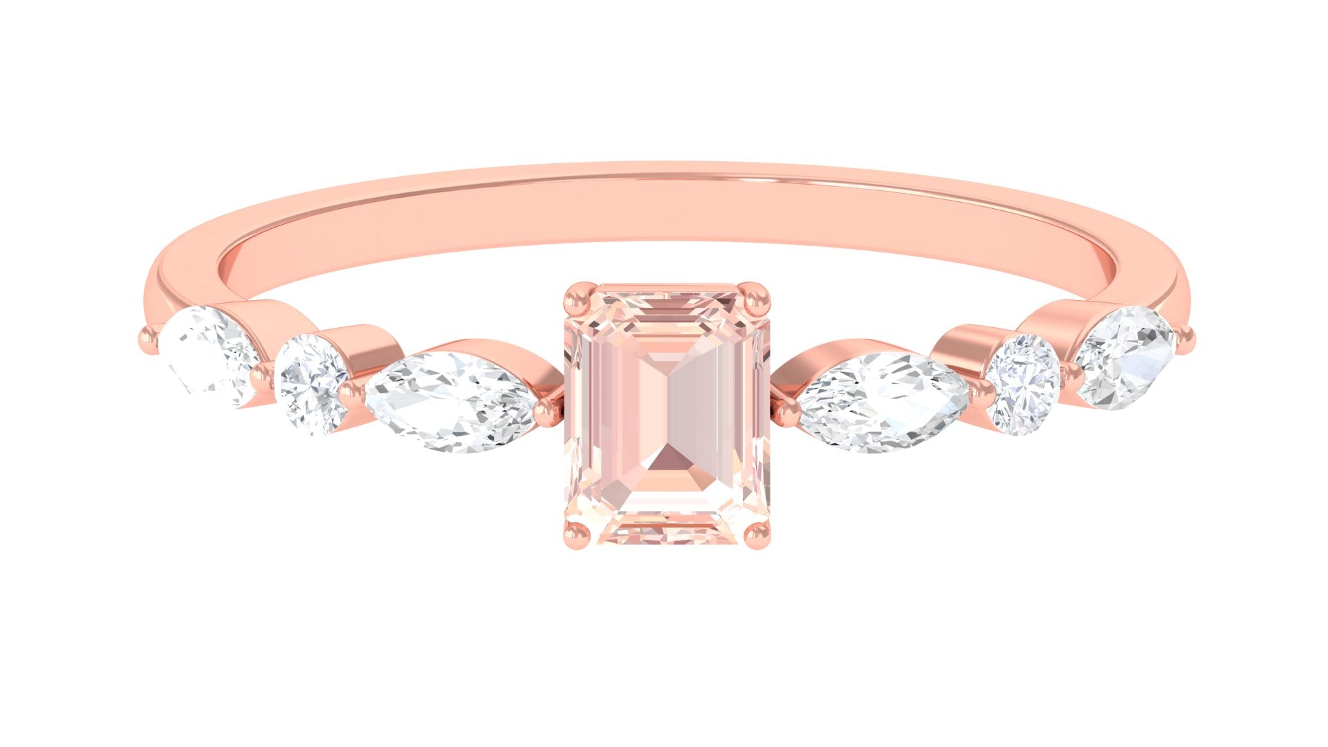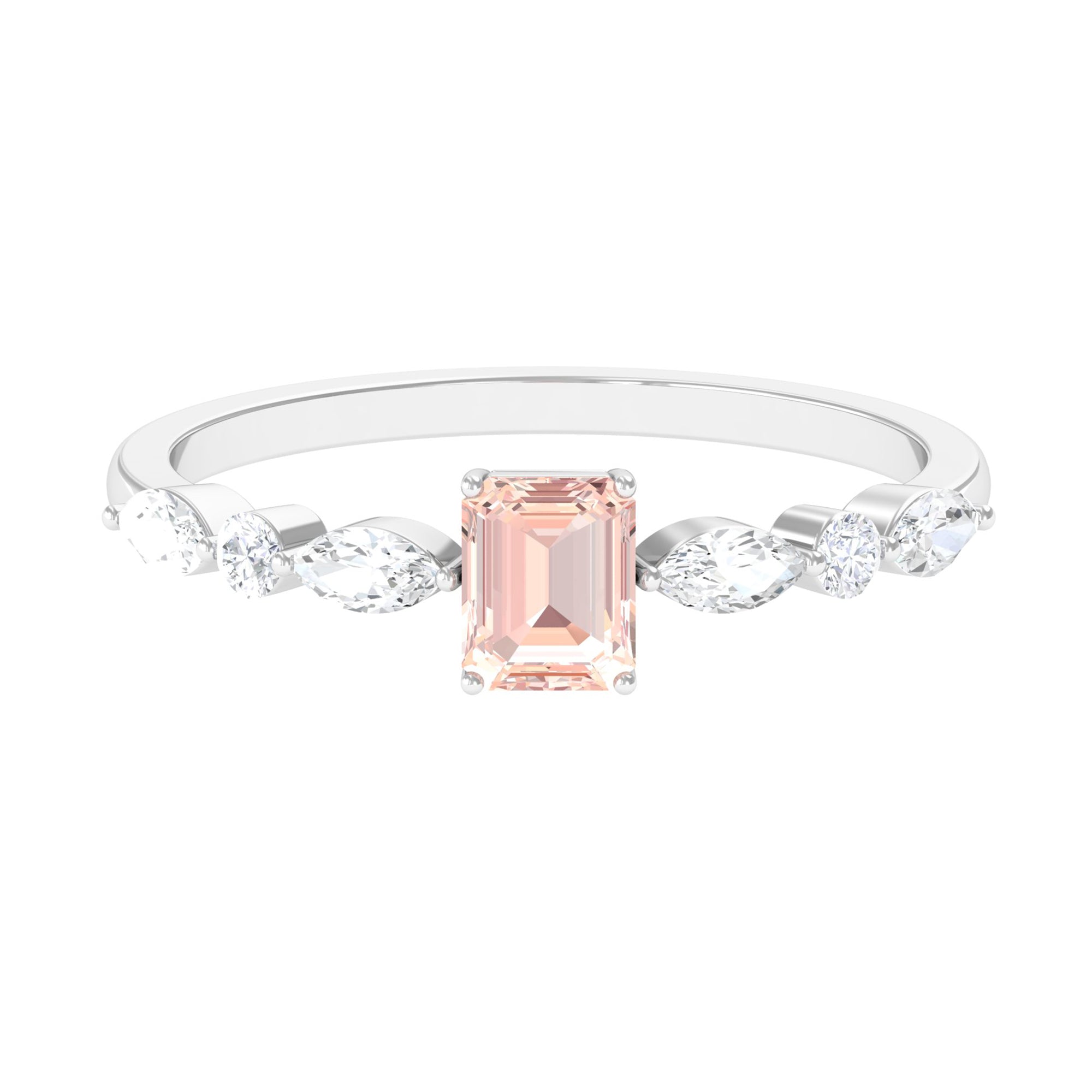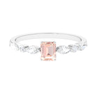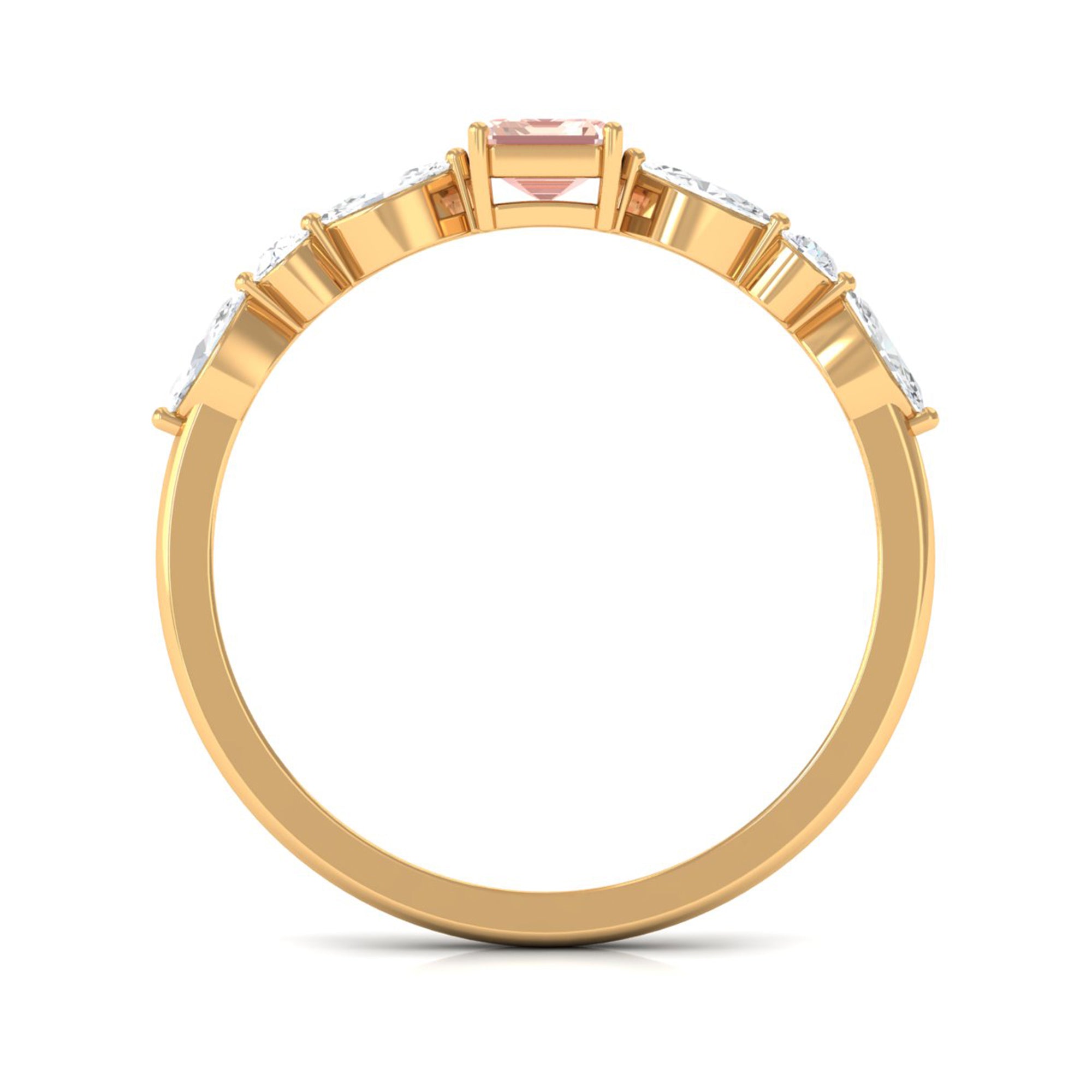 Emerald Cut Morganite Solitaire Ring with Diamond Side Stones