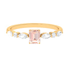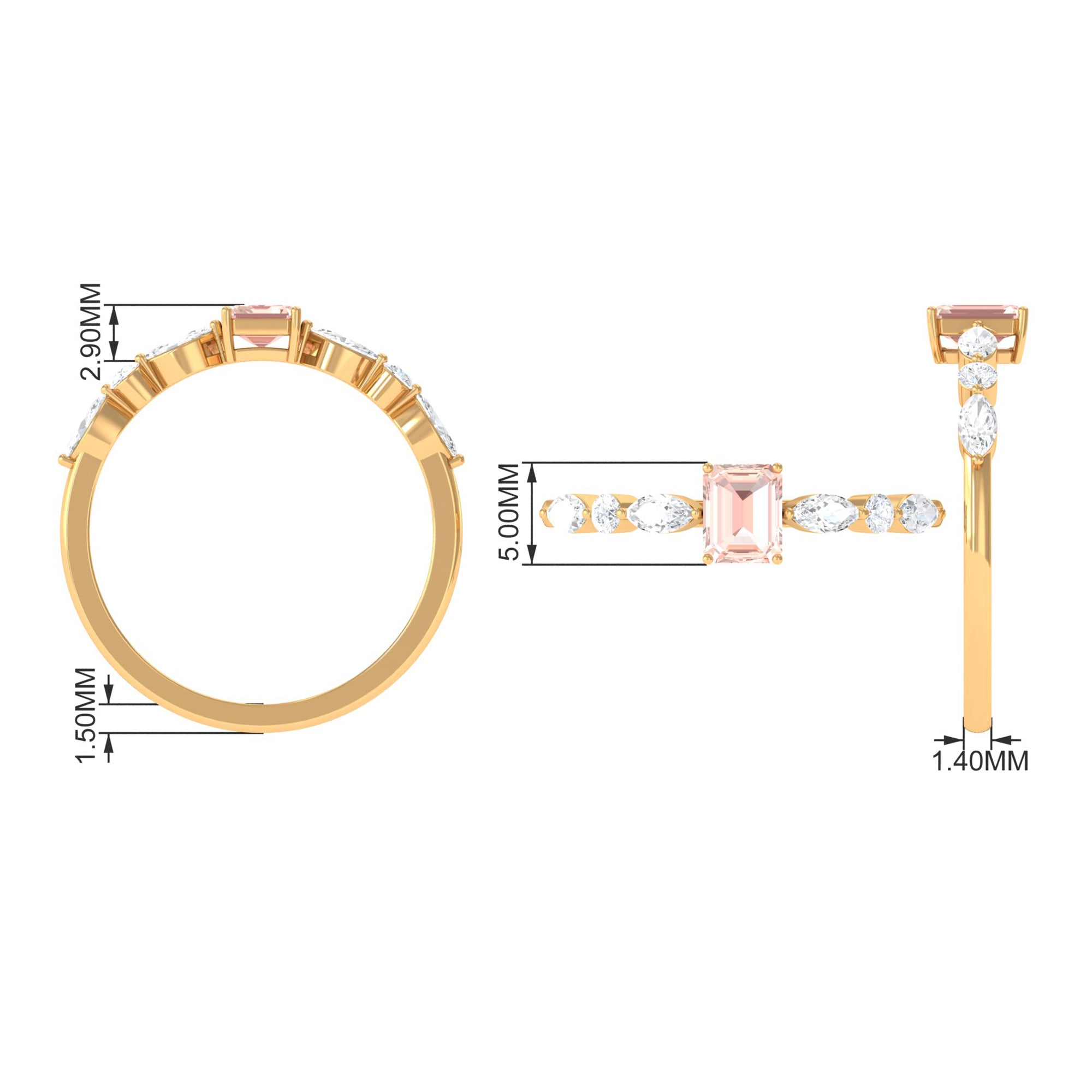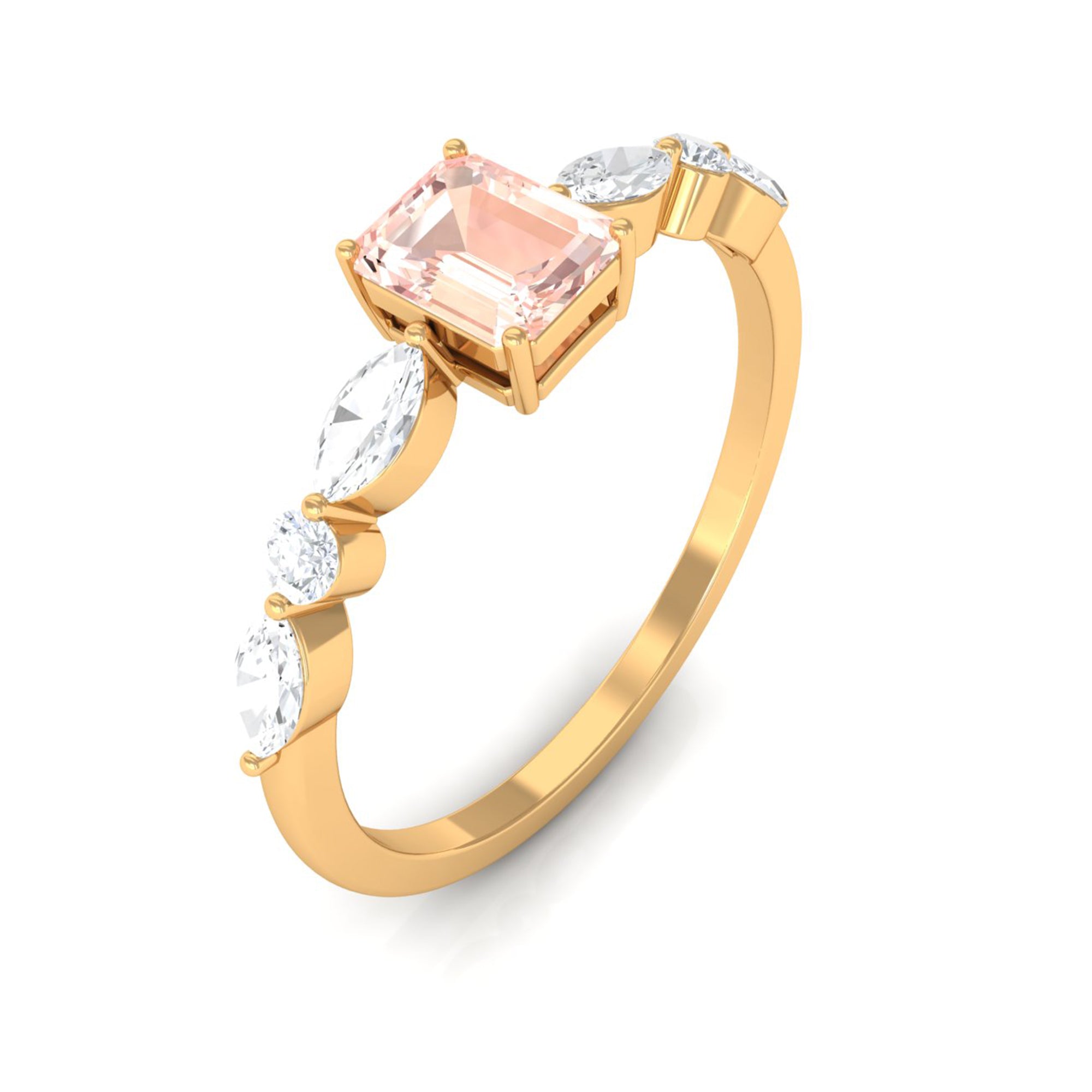 Confess your love with this Solitaire Engagement Ring for Her. It is embellished with Emerald Cut Morganite as a solitaire in a prong setting with a Round and Marquise Diamond as a side stone. This October Birthstone Ring is composed of Gold Metal. This Morganite Engagement Ring will be a unique present for women that they will wear on any occasion.