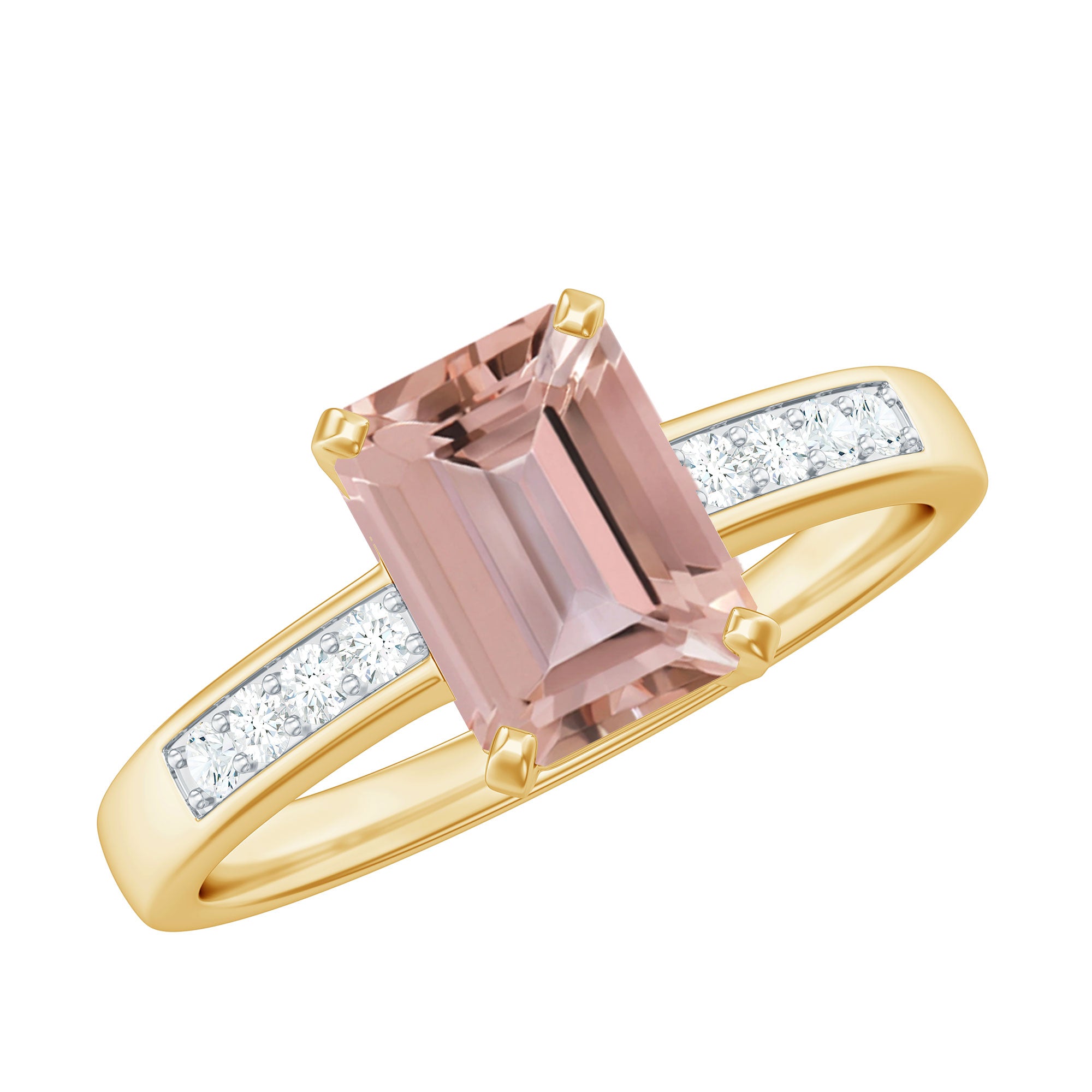 Emerald Cut Morganite Solitaire Ring with Diamond