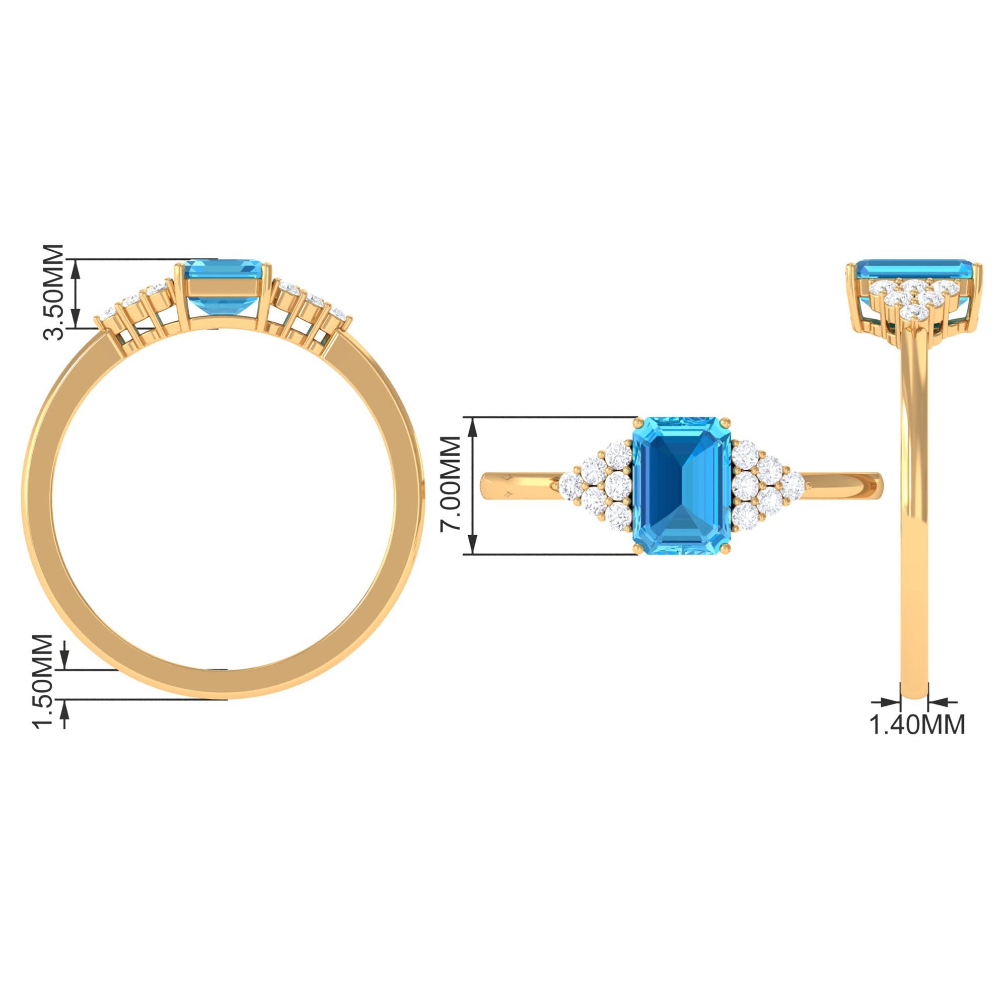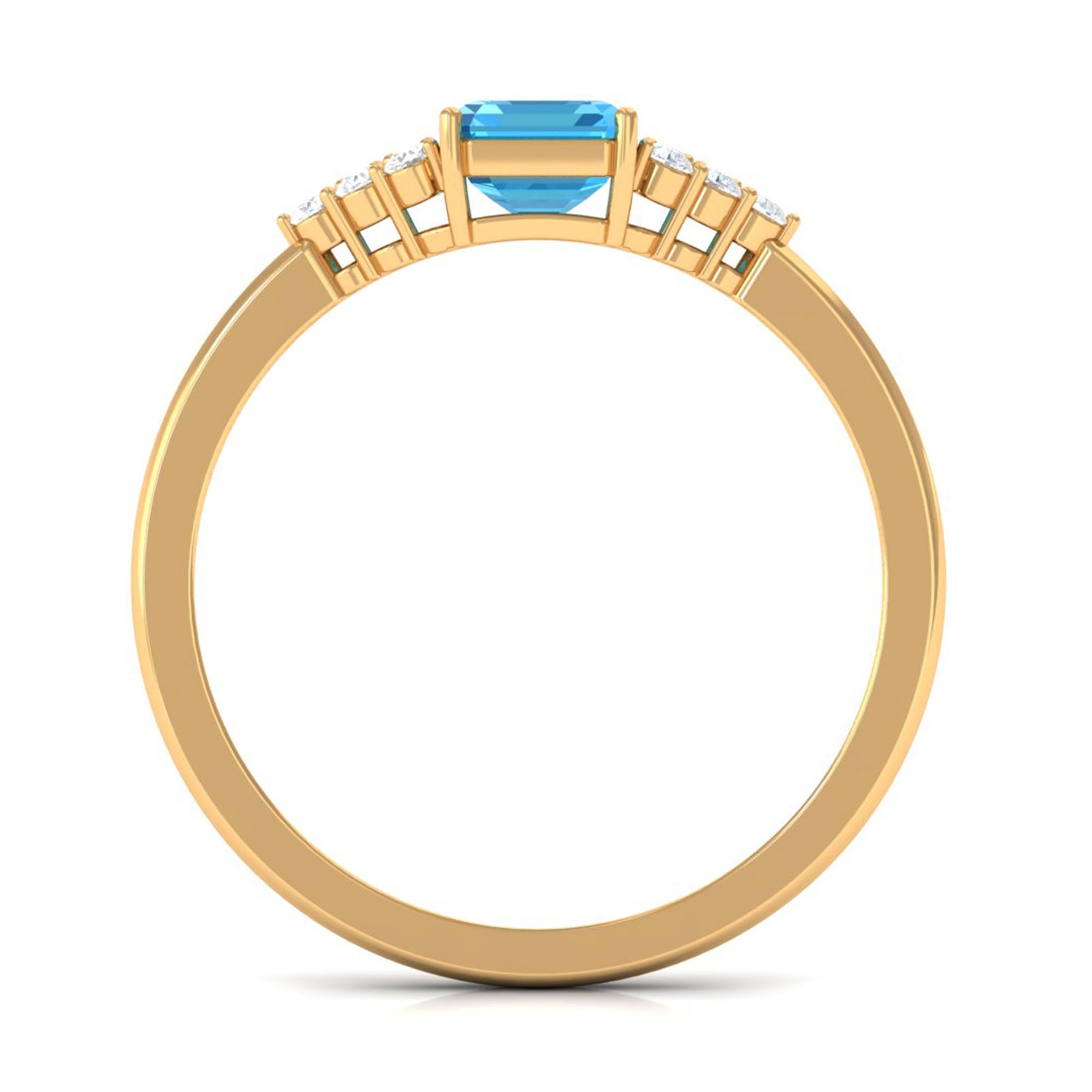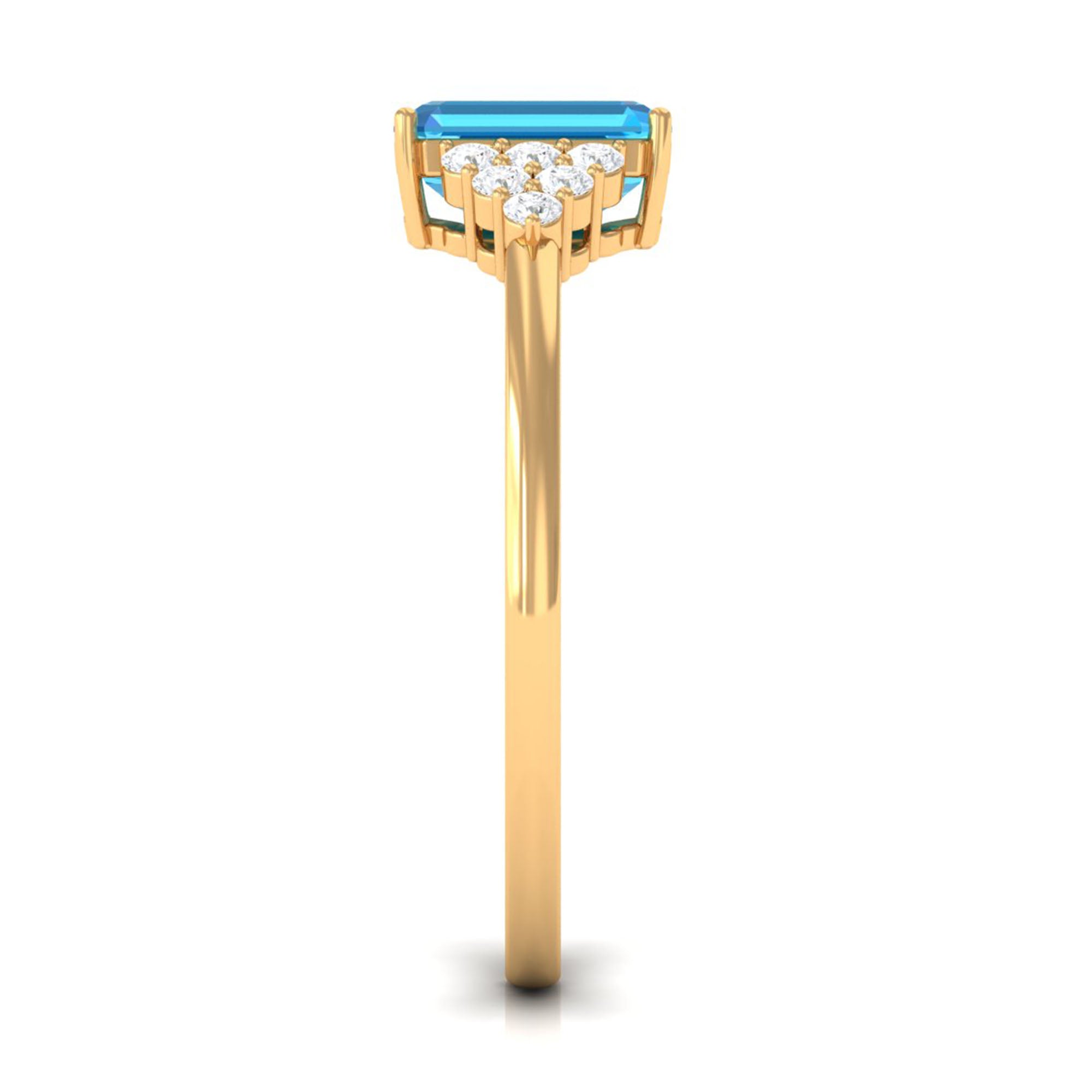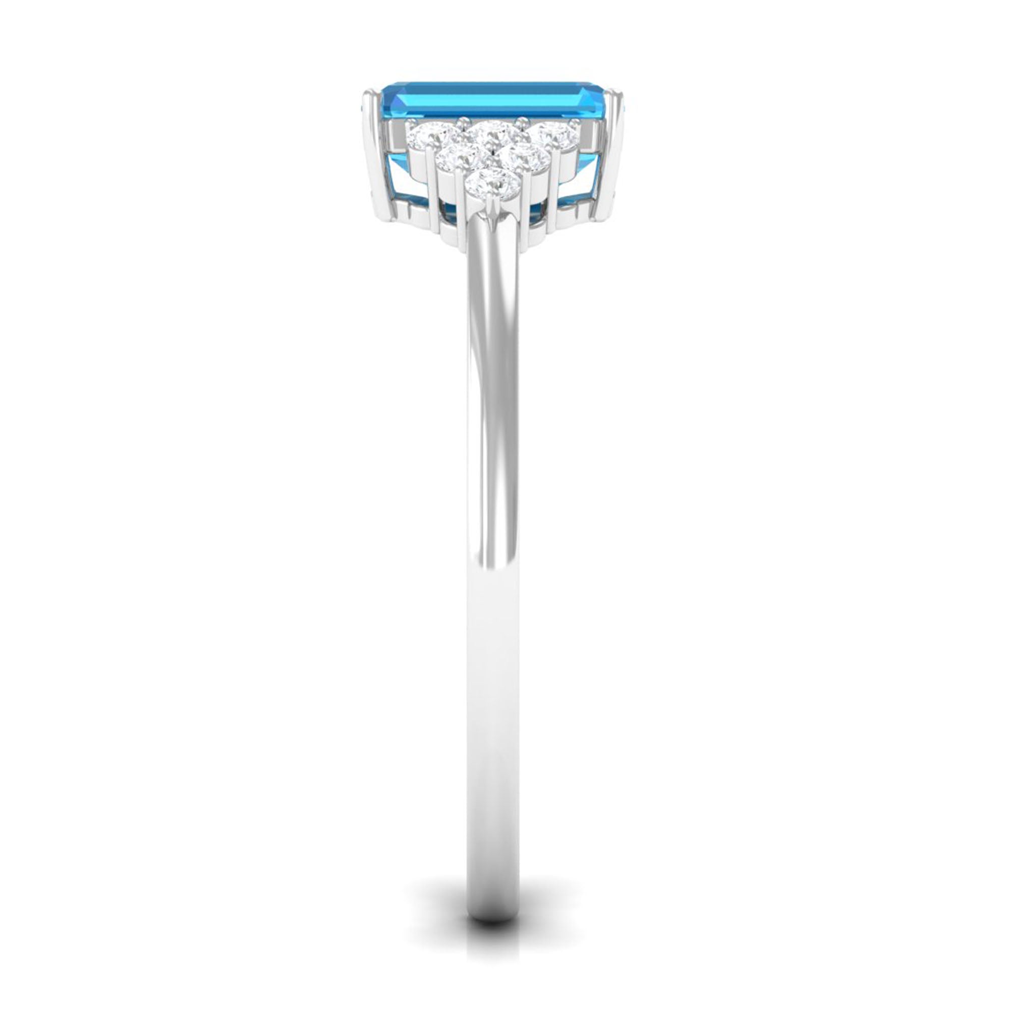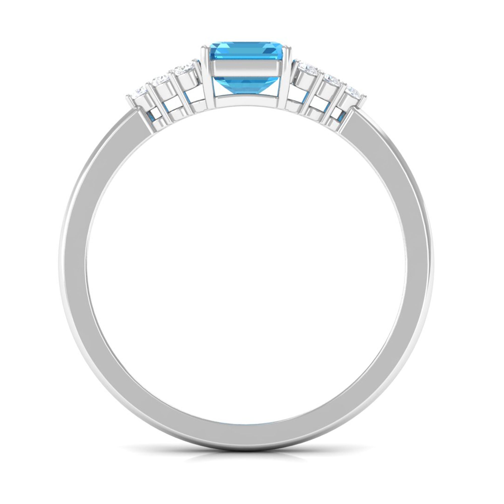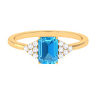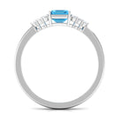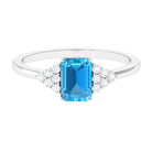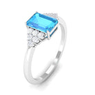 Emerald Cut Swiss Blue Topaz Solitaire Engagement Ring with Diamond