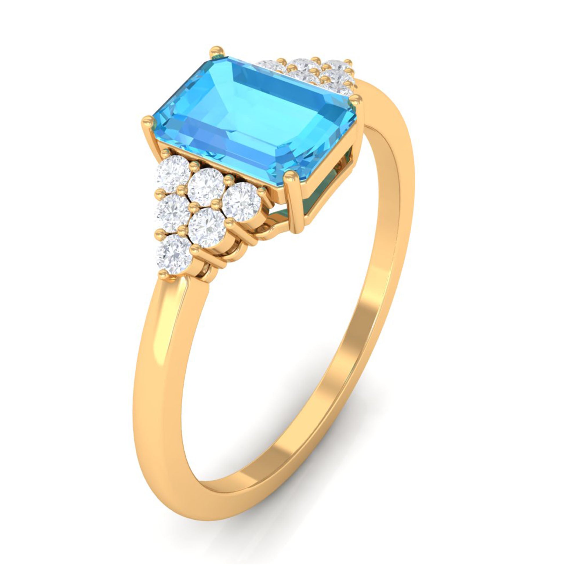 Embrace elegance with this Emerald Cut Swiss Blue Topaz Engagement Ring accompanied by Diamond gemstones, a captivating symbol of love.