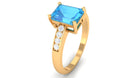 Emerald Cut Swiss Blue Topaz Solitaire Engagement Ring with Diamond Side Stones