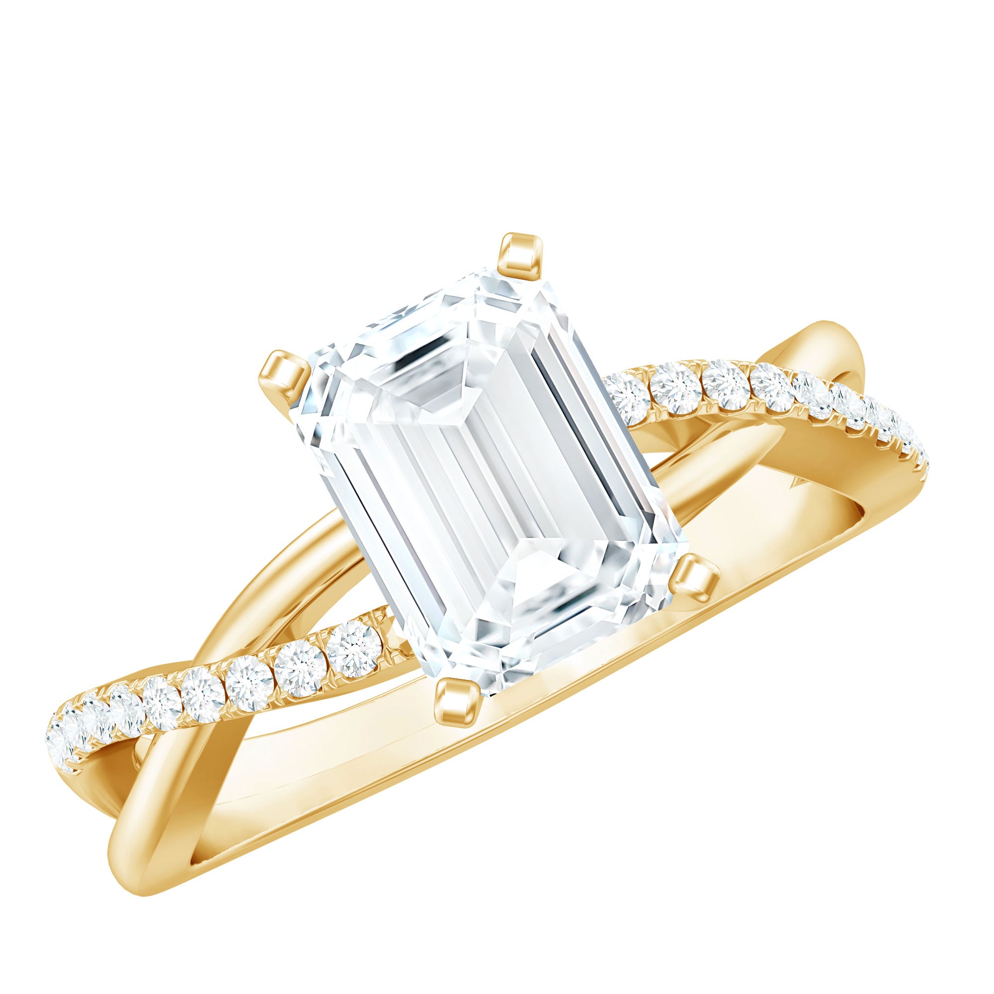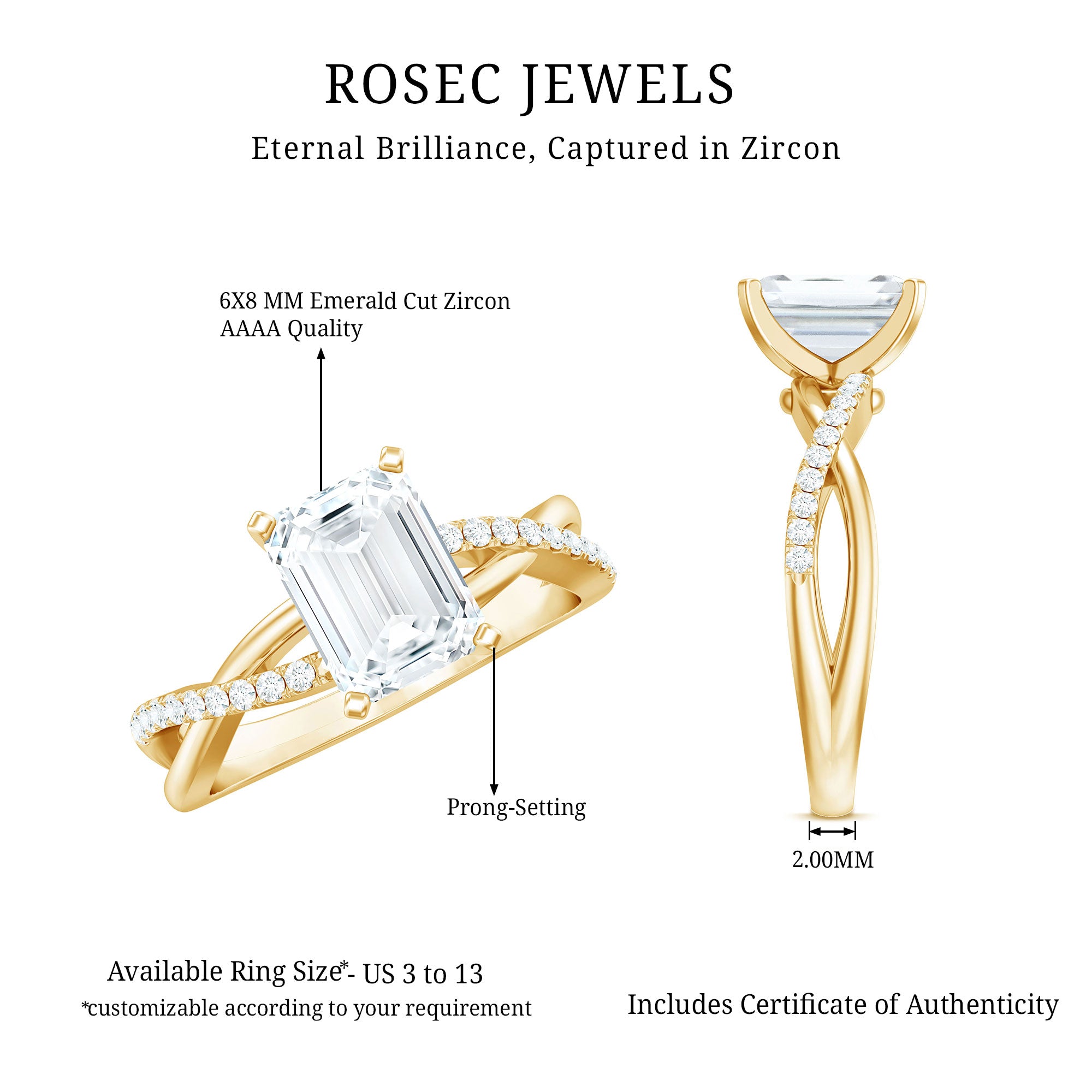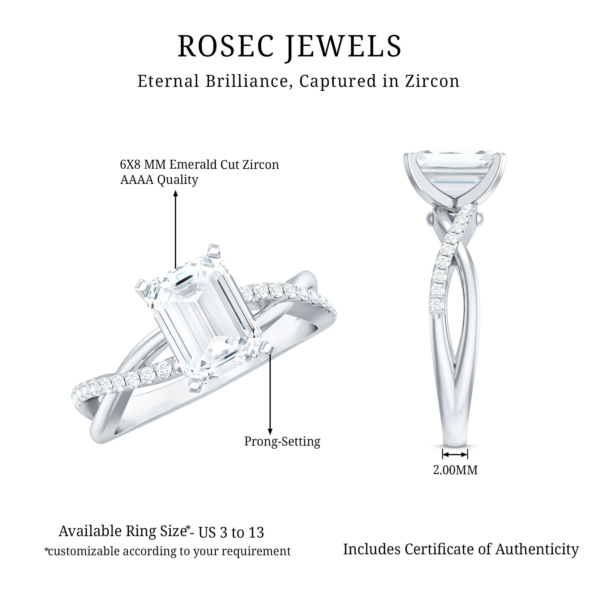 Emerald Cut Zircon Solitaire Ring in Infinity Shank
