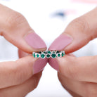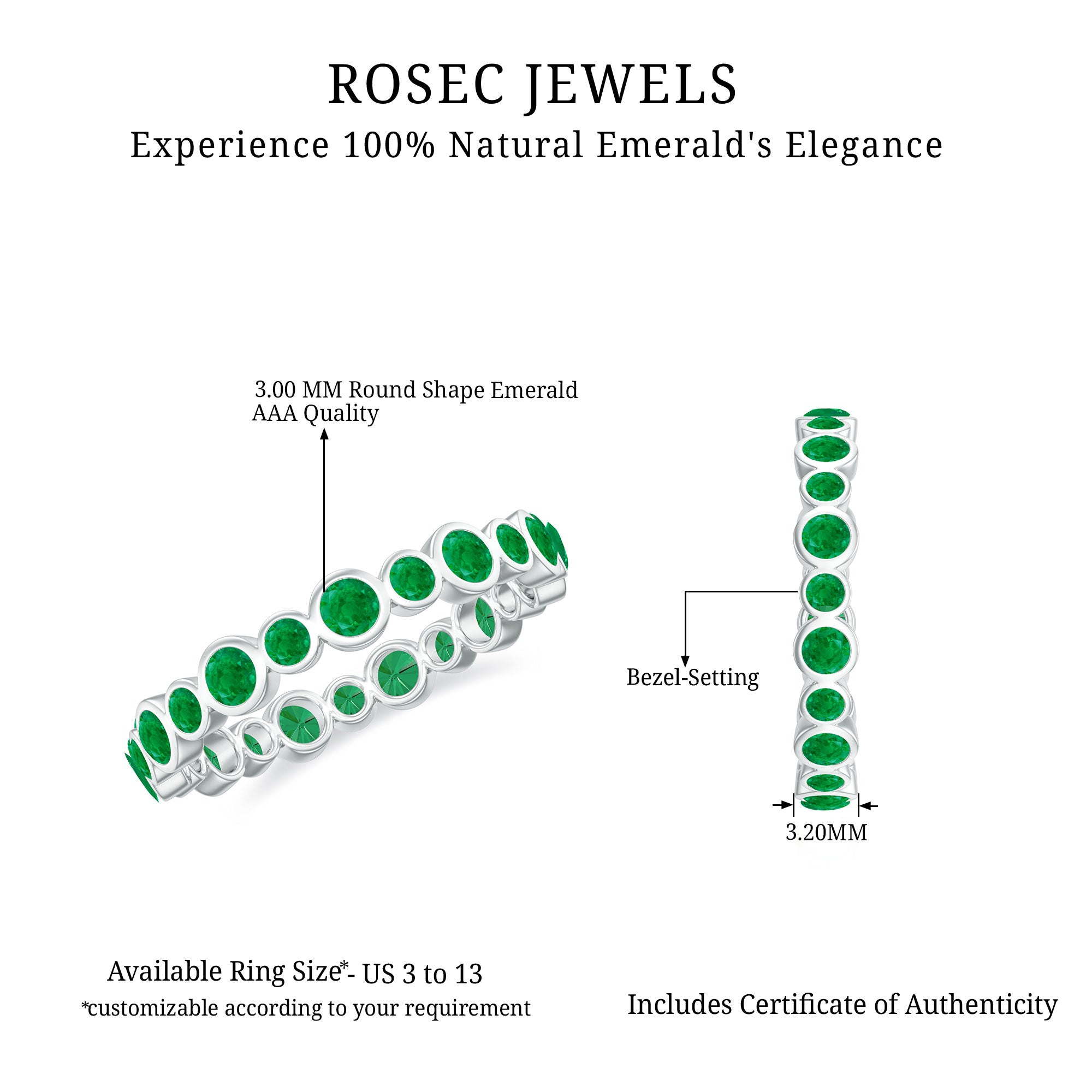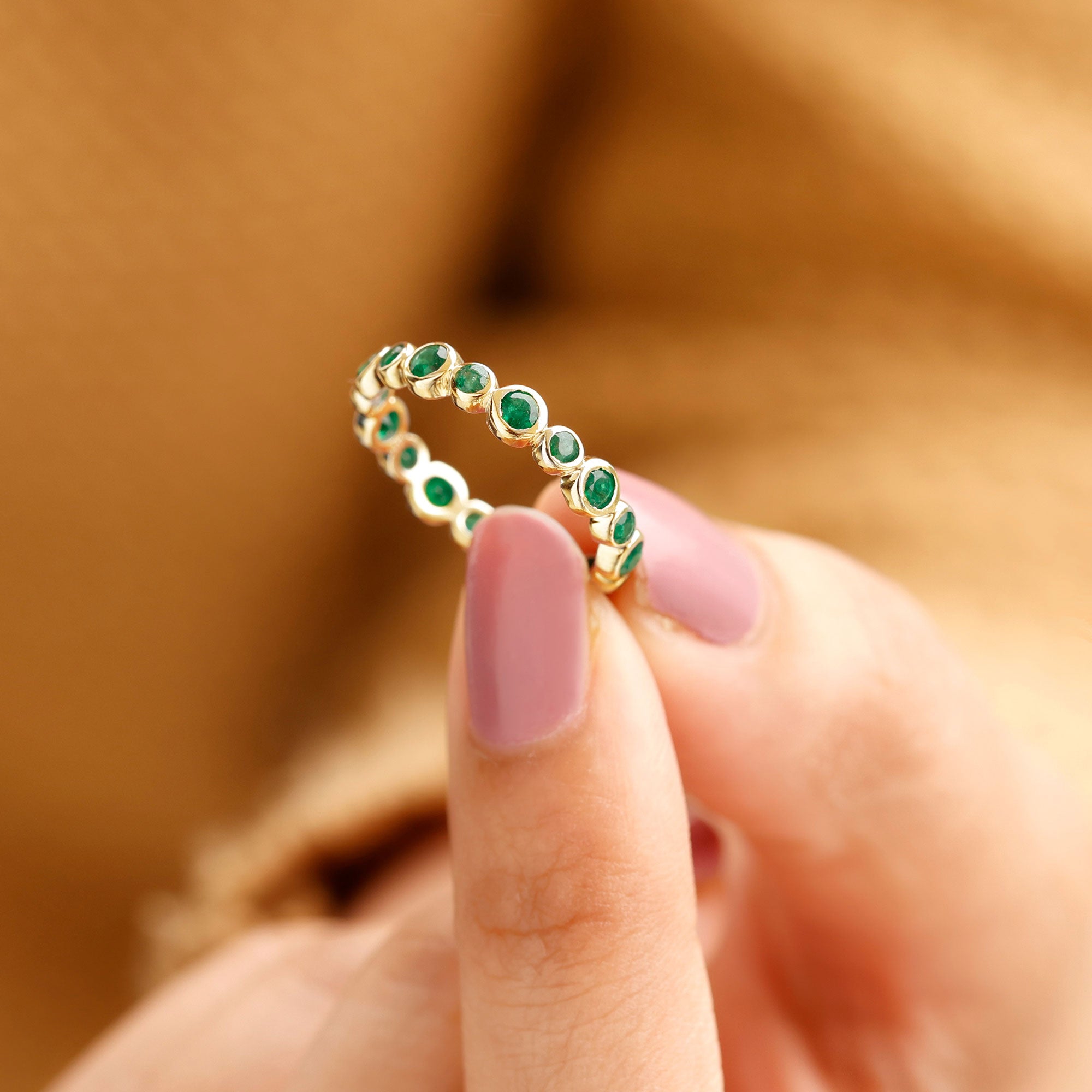 Celebrate every moment with this mesmerizing Eternity Wedding Band that tells your love story. Featuring 2mm and 3mm Round shape Emerald in a secure bezel setting in an uneven alternate pattern in the full band. Natural Emeralds embodies sophistication and refinement. It is an ideal addition to your jewelry collection, enhancing your personal style and revealing your inner brilliance as you desire. We utilize the AAA Quality emeralds with an exquisite green hue that will elevate the allure of your jewelry. With its timeless elegance and eternal charm, this Full Eternity Ring is the perfect way to add a touch of glamour and sophistication to any outfit. This Stackable Band Ring serves as a breathtaking standalone item - perfect for weddings, anniversaries, or as a distinctive accessory for any significant occasion. Whether you are walking down the aisle or participating in an evening gala, this Emerald Eternity Ring is sure to be the focal point of your appearance. It is a ring that not only adorns your hand but also conveys elegance, confidence, and an unforgettable sense of style.