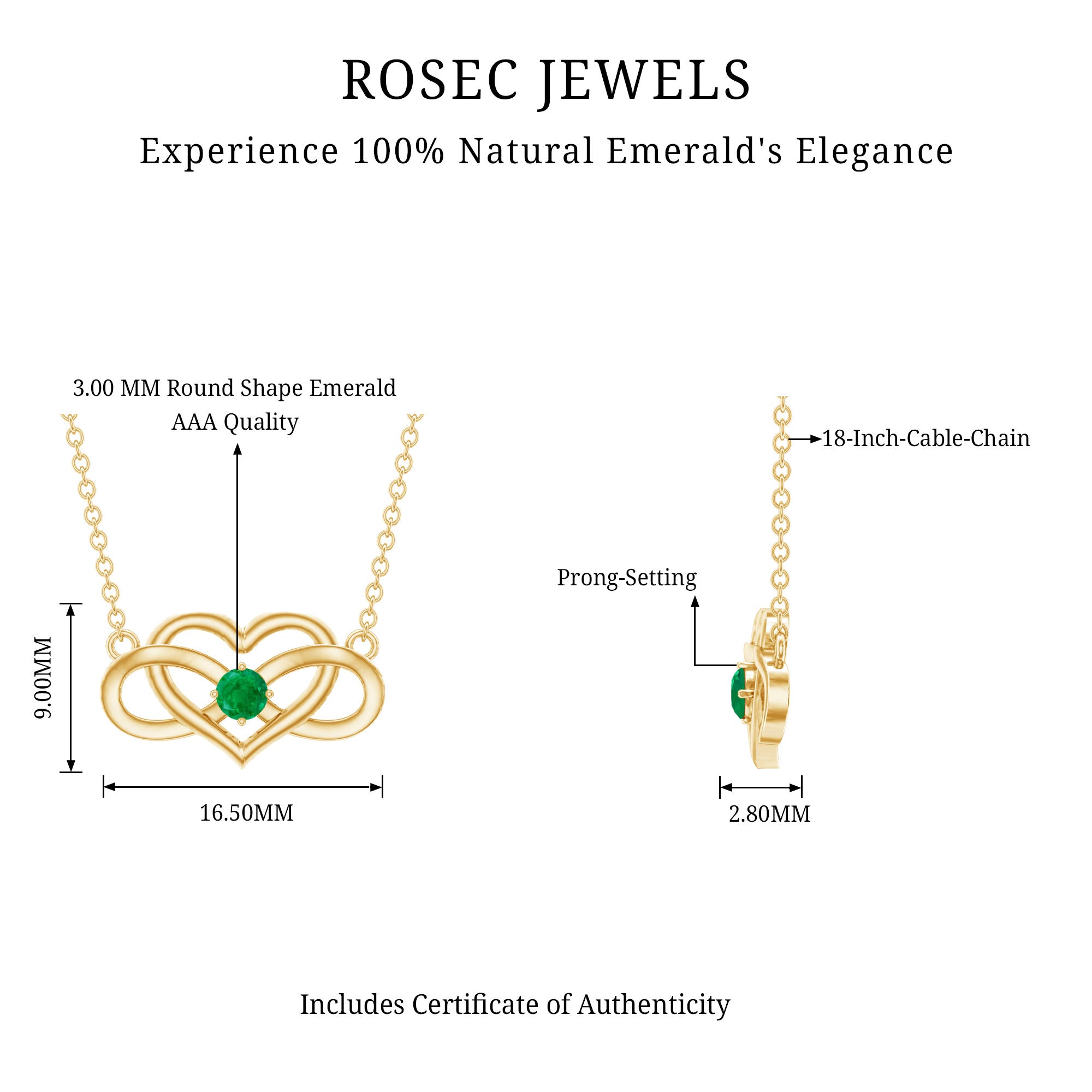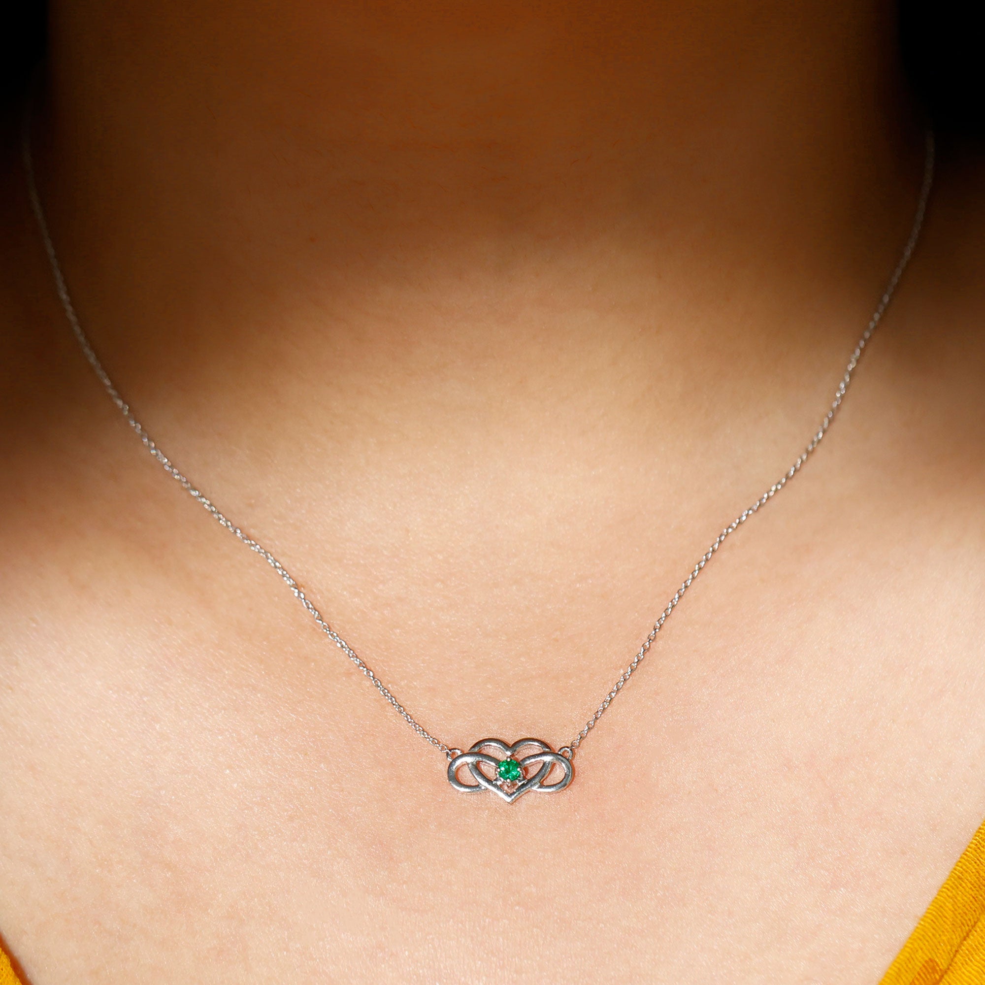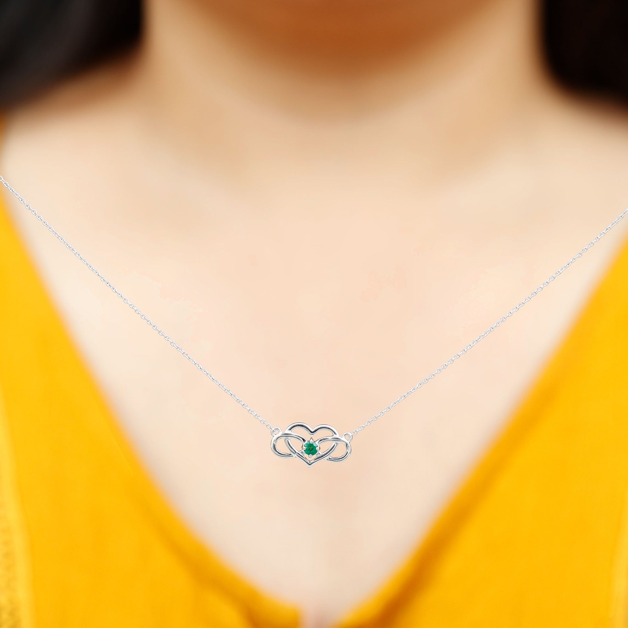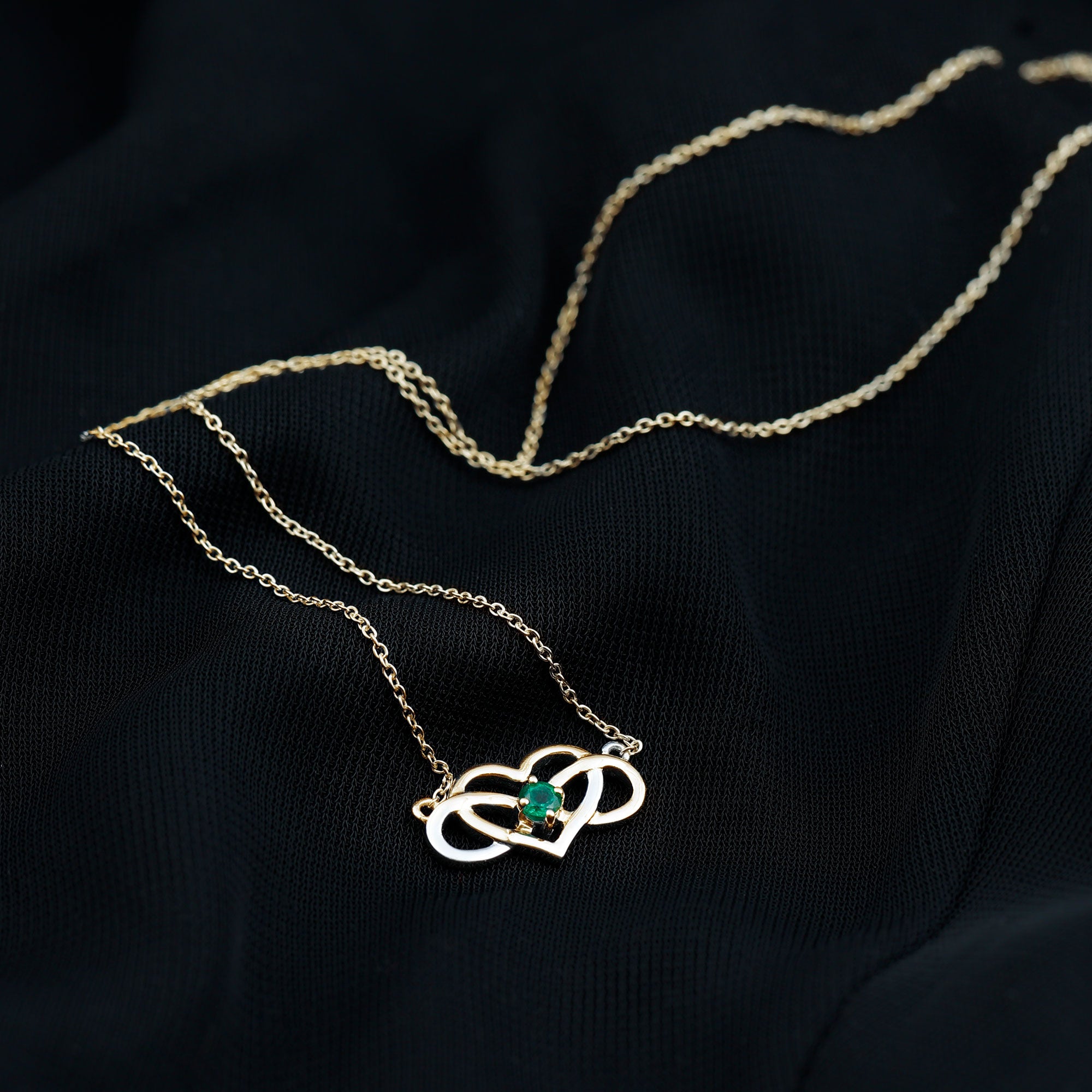 Known as a Heart Infinity Pendant Necklace, it is adorned in Solid Gold for Women consisting of Round Cut Emerald embellished in Prong Setting for you to feel the best version of yourself.