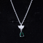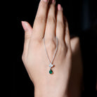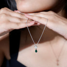 Dive into the classic beauty of the Lab Grown Emerald Necklace, which brings a modern twist to your look. Made from White Gold Plated Silver, this Lotus Flower Necklace enhances your style and fits perfectly for any event. What sets it apart? The timeless 5X7 MM pear cut lab grown emerald, beautifully set in prong setting, gives it a classic teardrop look. The stunning lotus flower design bail on top, adorned with Round brilliant cut Moissanite, embodies significance and beauty. With its unique mix of timeless elegance and nature-inspired design, this Teardrop Pendant Necklace adds a touch of grace to your outfit while making a bold statement. Celebrate your unique style with this Pear Shaped Necklace, which also symbolizes love or marks any special occasion. This Silver Emerald Pendant is a fantastic addition to your jewelry collection, sure to capture hearts and leave a lasting impression.