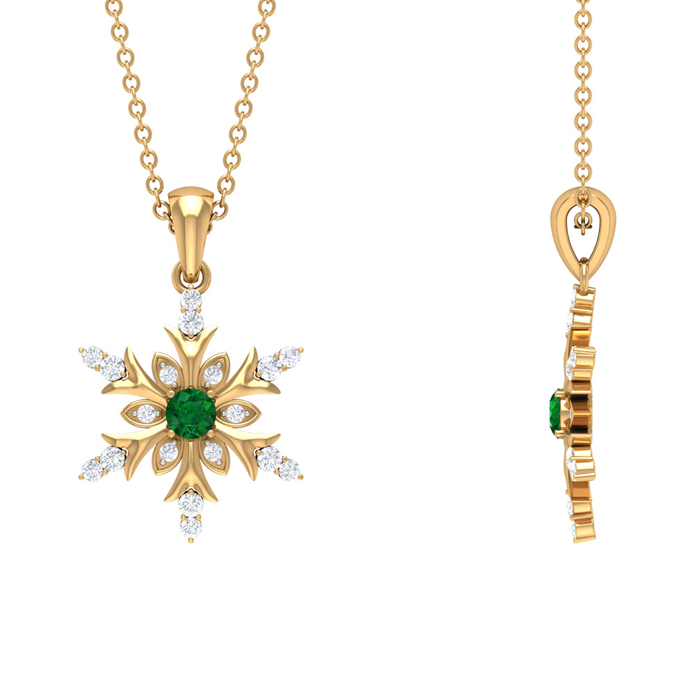 Emerald Snowflake Pendant Necklace with Diamond
