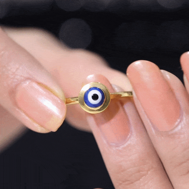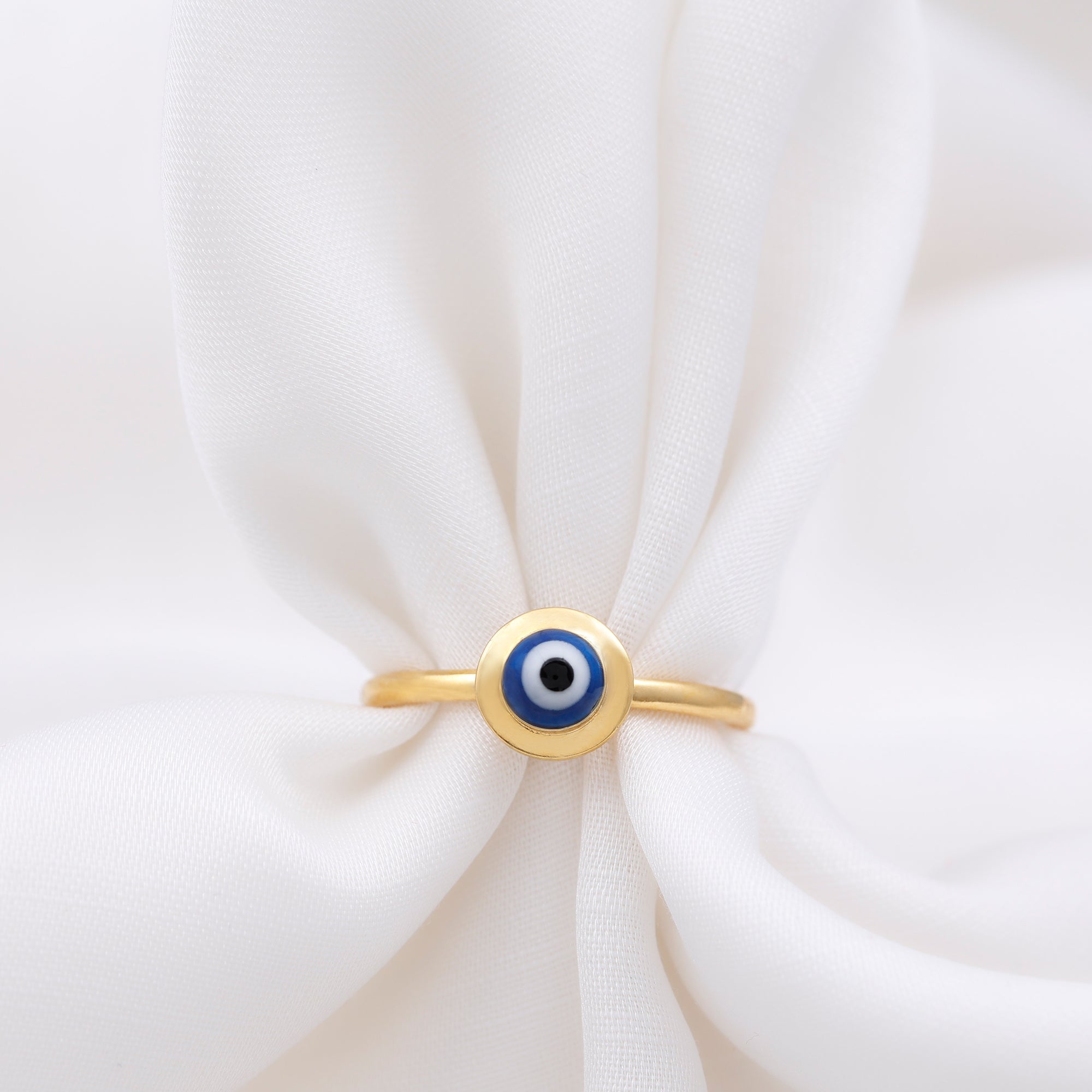 Turn the blind eye with our Evil Eye Enamel Coated Ring adorned in Solid Gold.