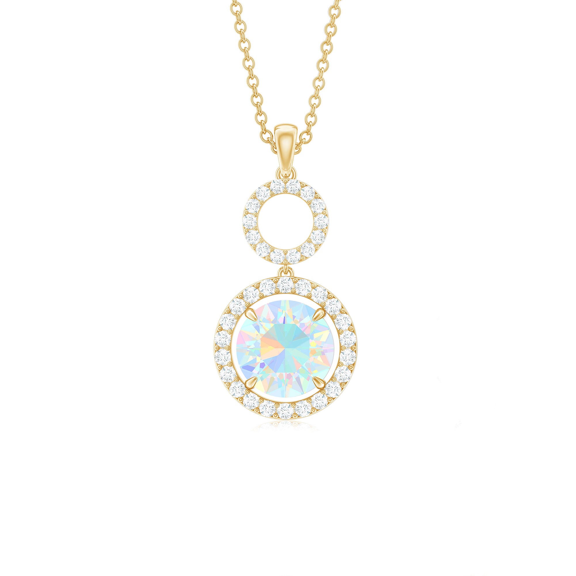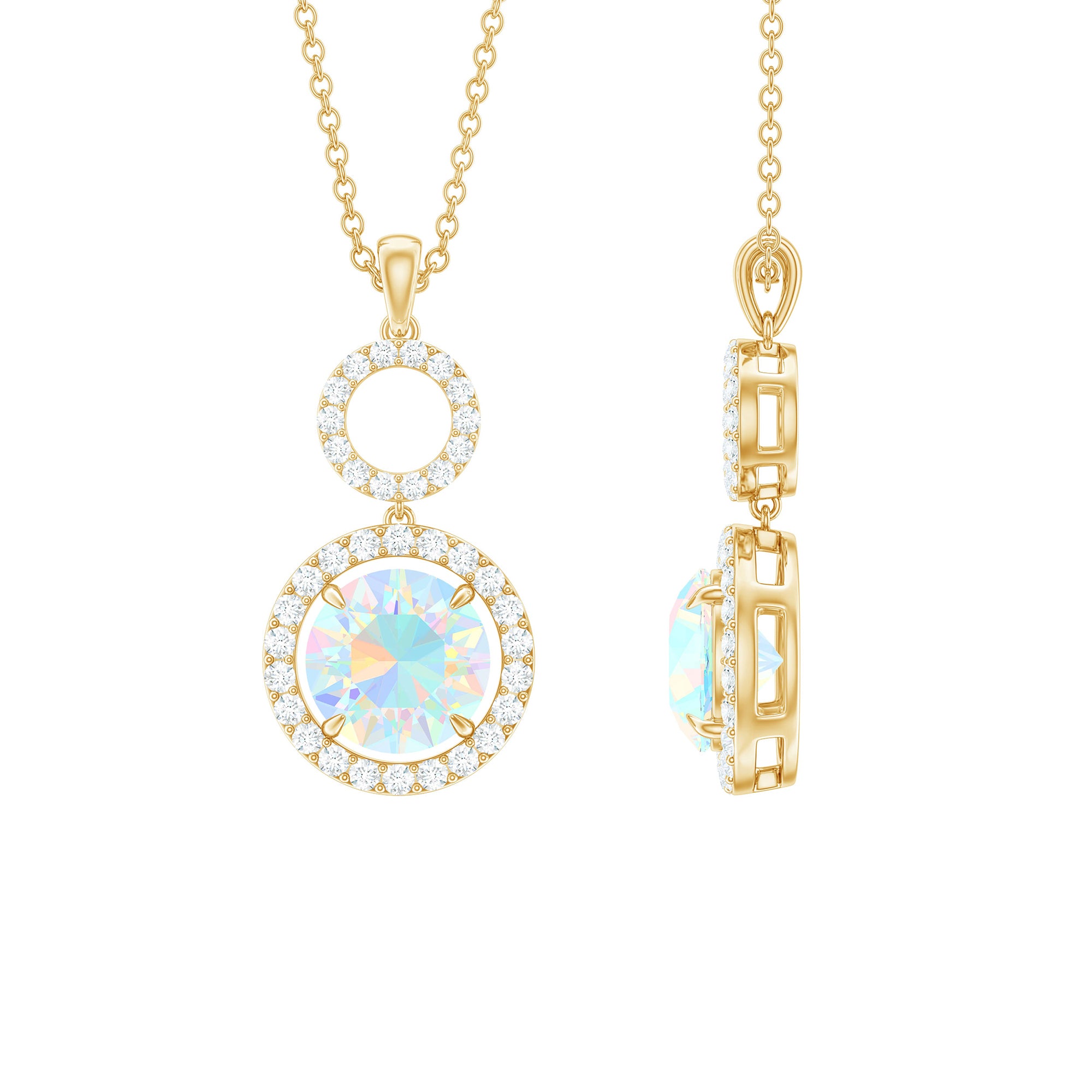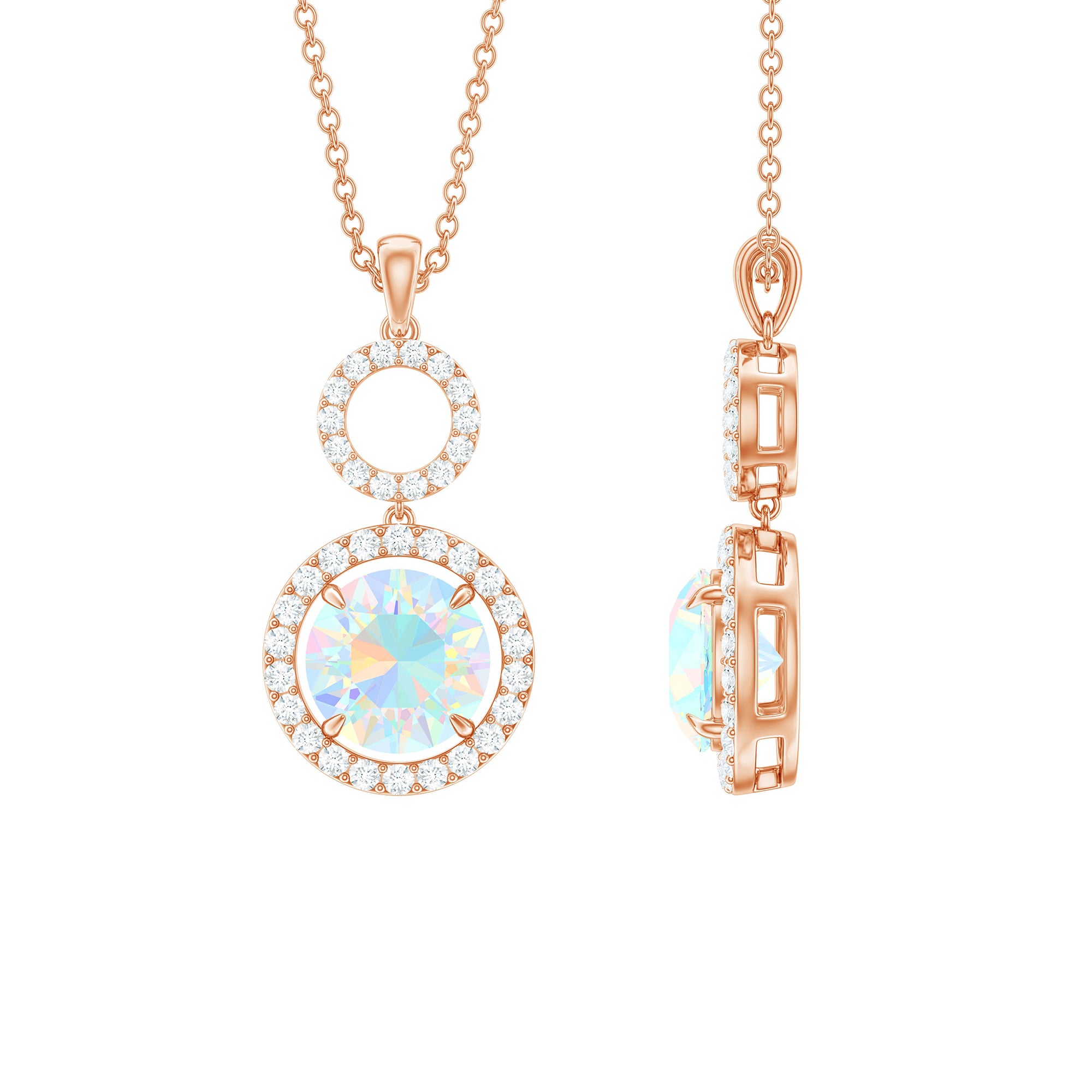 Bring a smile to her face by presenting this beautiful Dangle Pendant Necklace. It is embellished with Round Shape Ethiopian Opal in Claw Setting and more Round Diamonds add a touch of sparkle. This Dangle Pendant will make a pleasant addition to her jewelry collection, something she would always keep close to her heart.