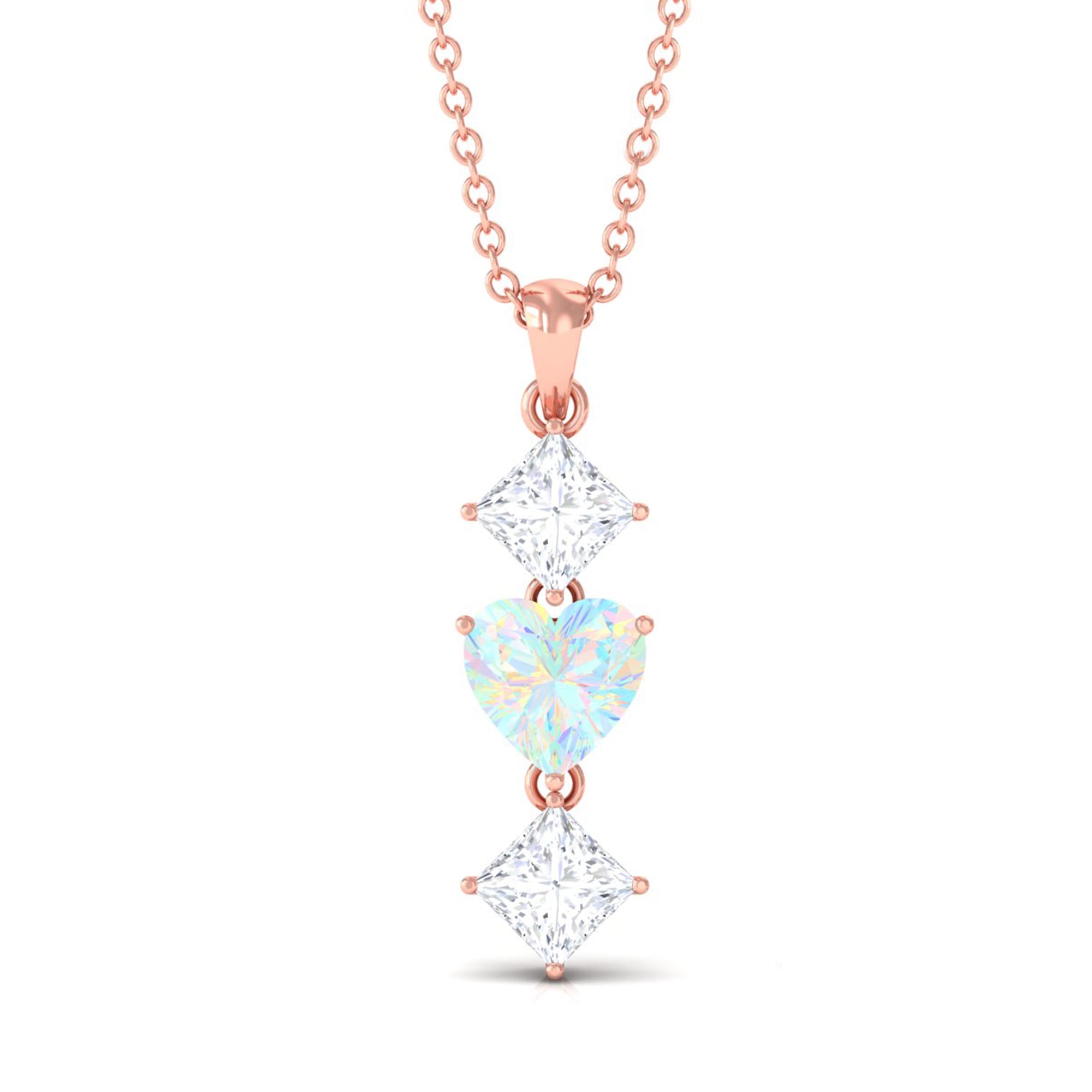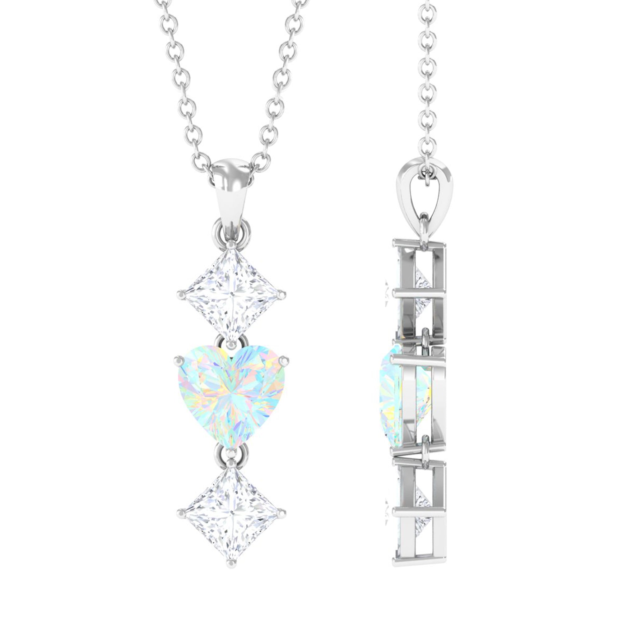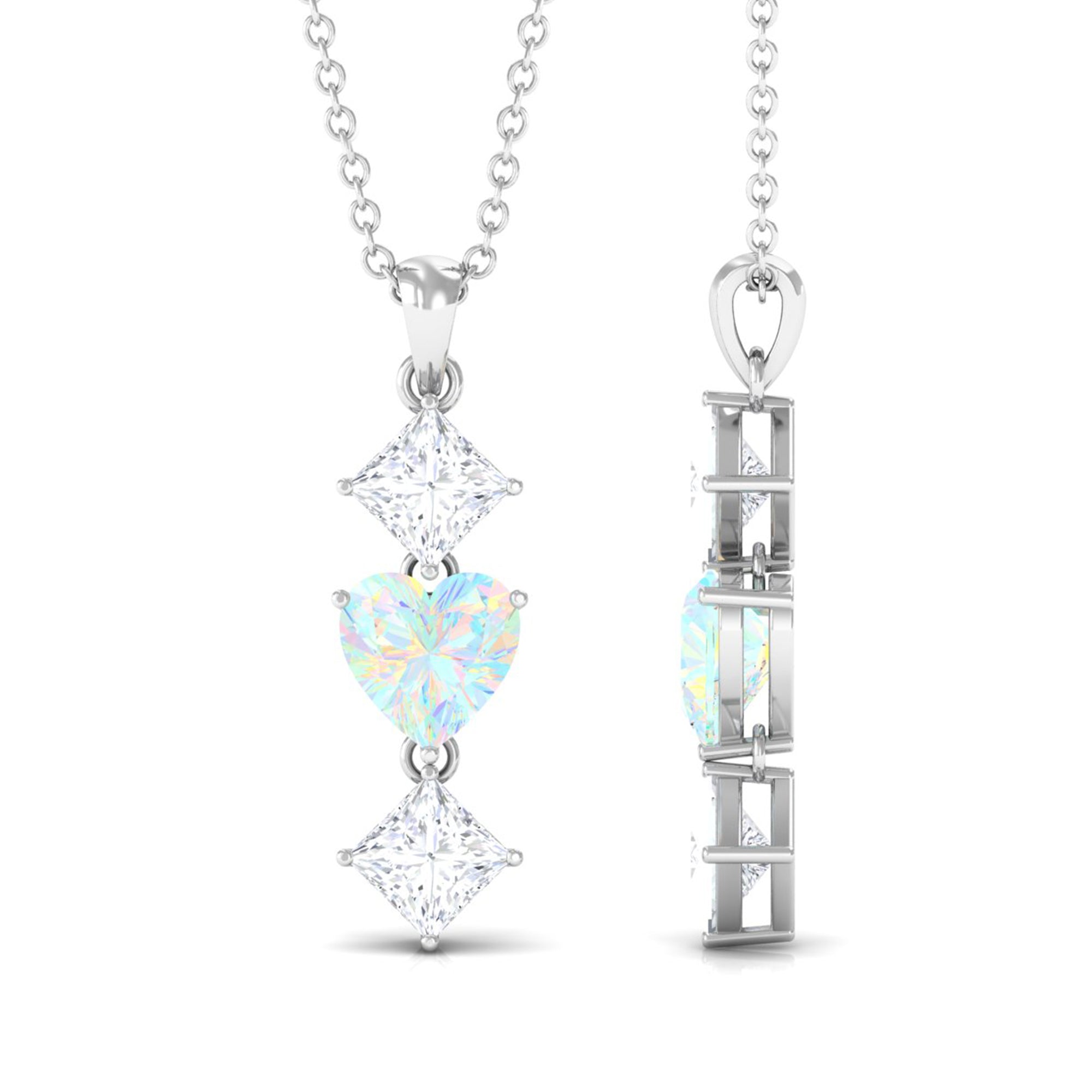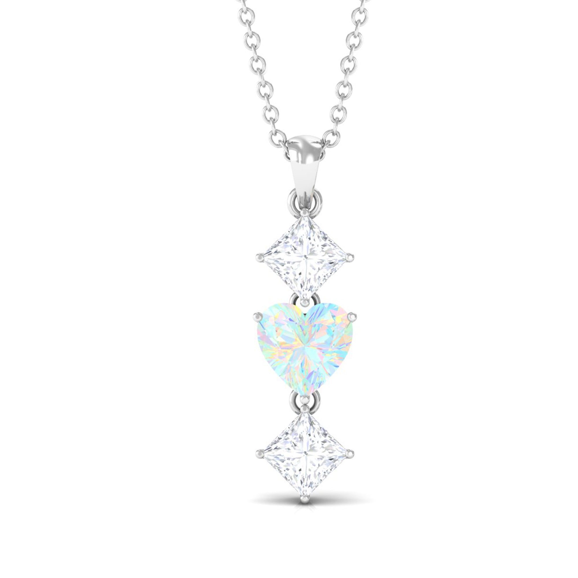 Ethiopian Opal and Moissanite Drop Heart Pendant Necklace
