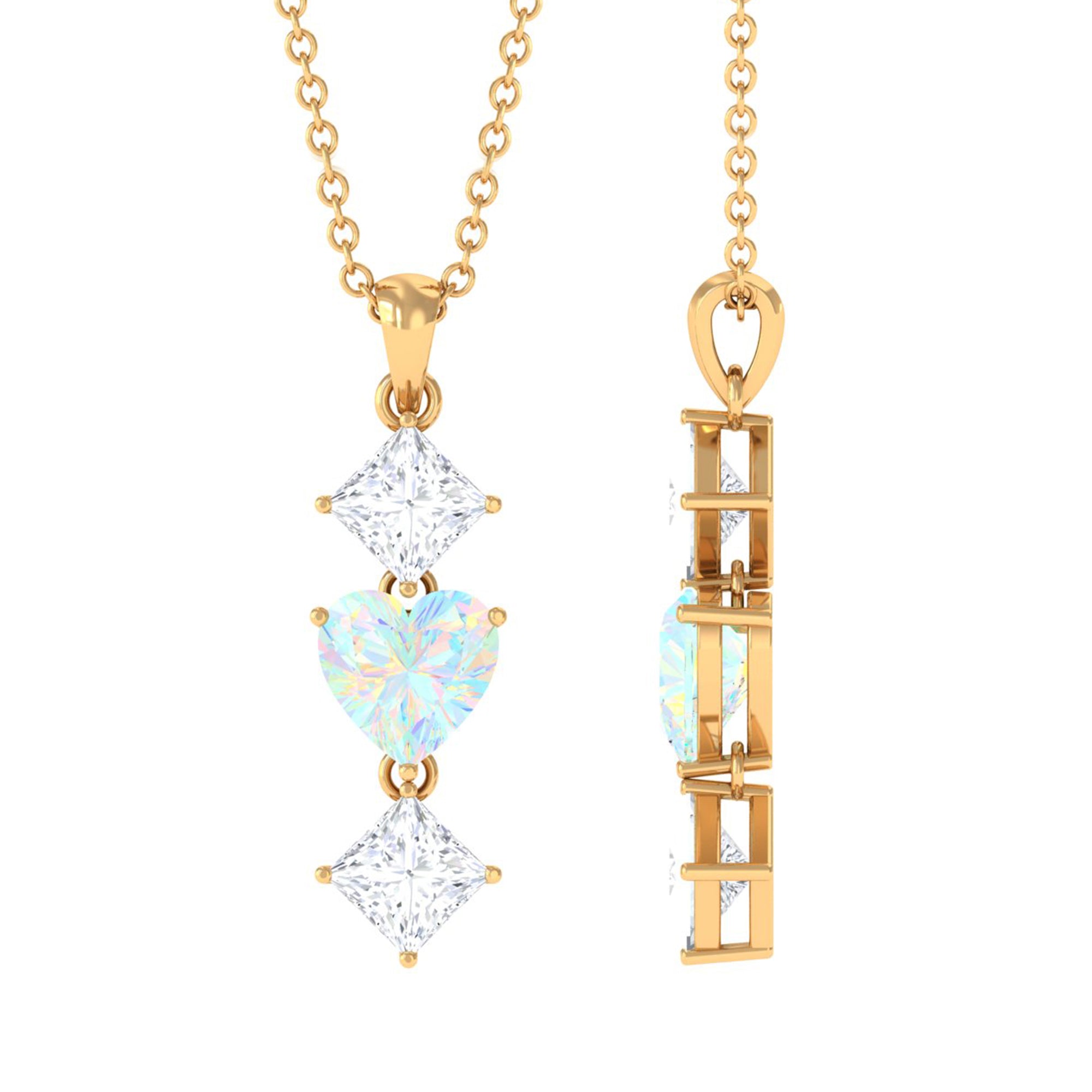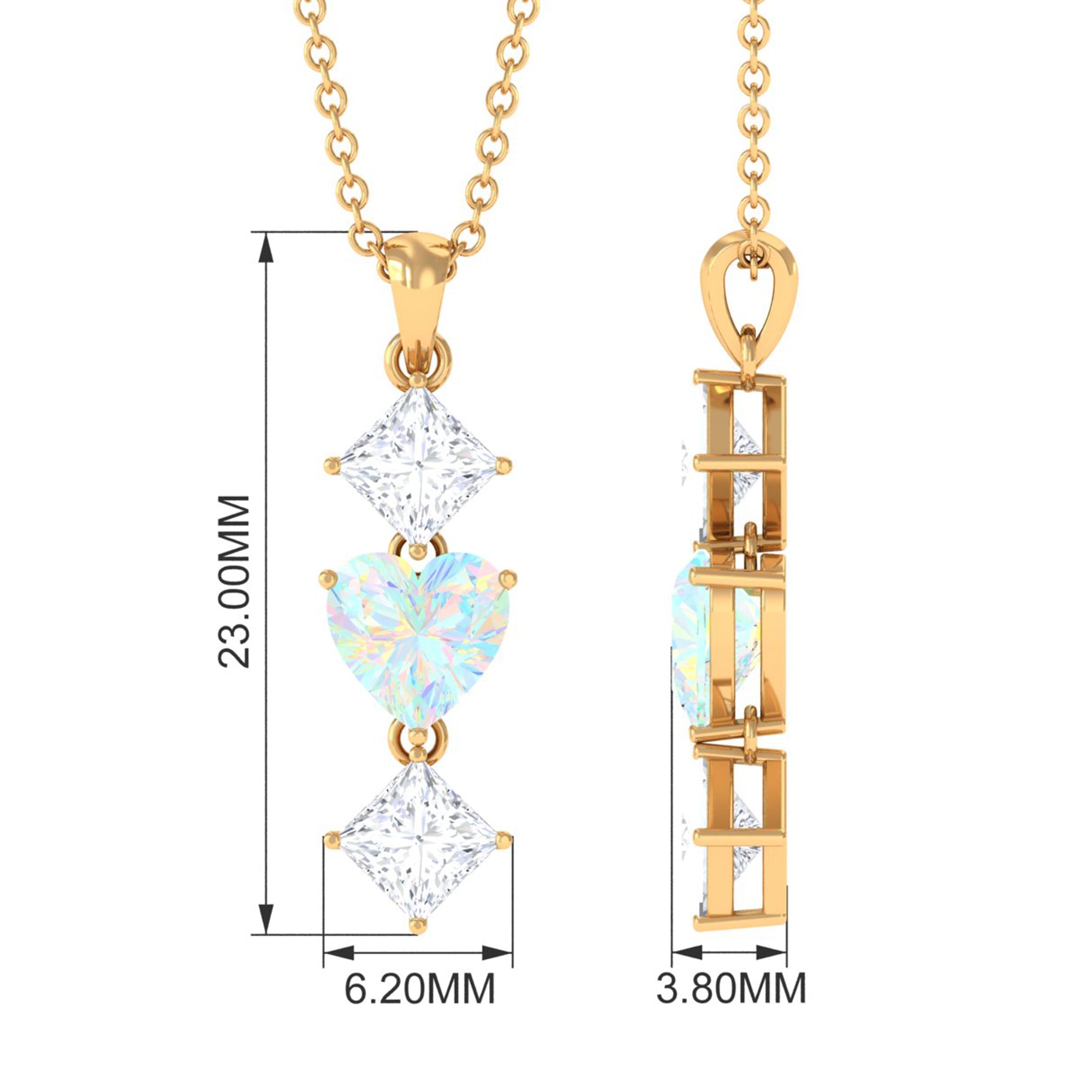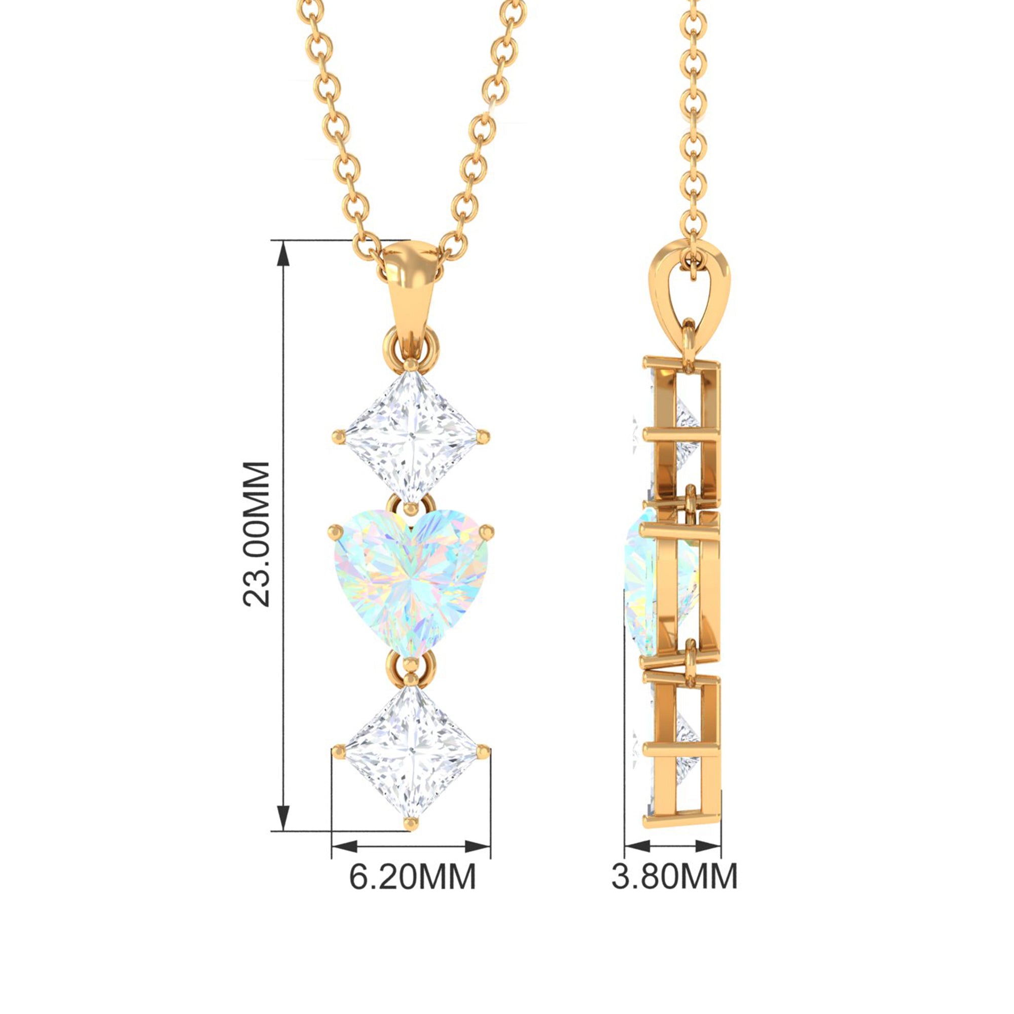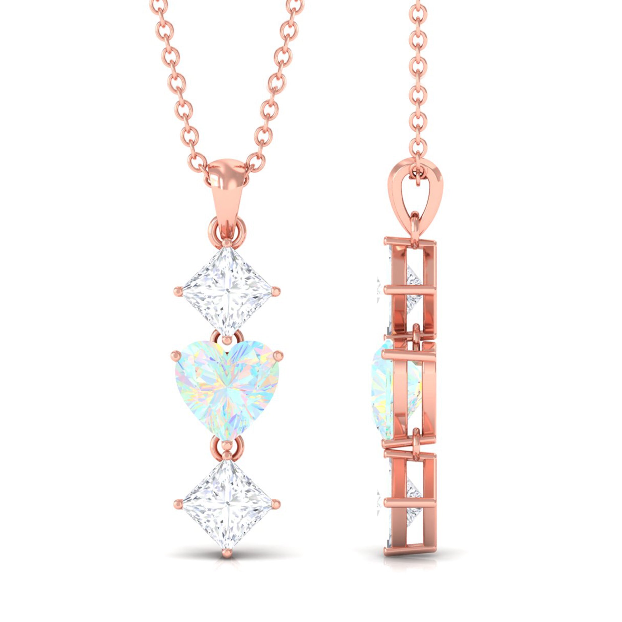 Ethiopian Opal and Moissanite Drop Heart Pendant Necklace